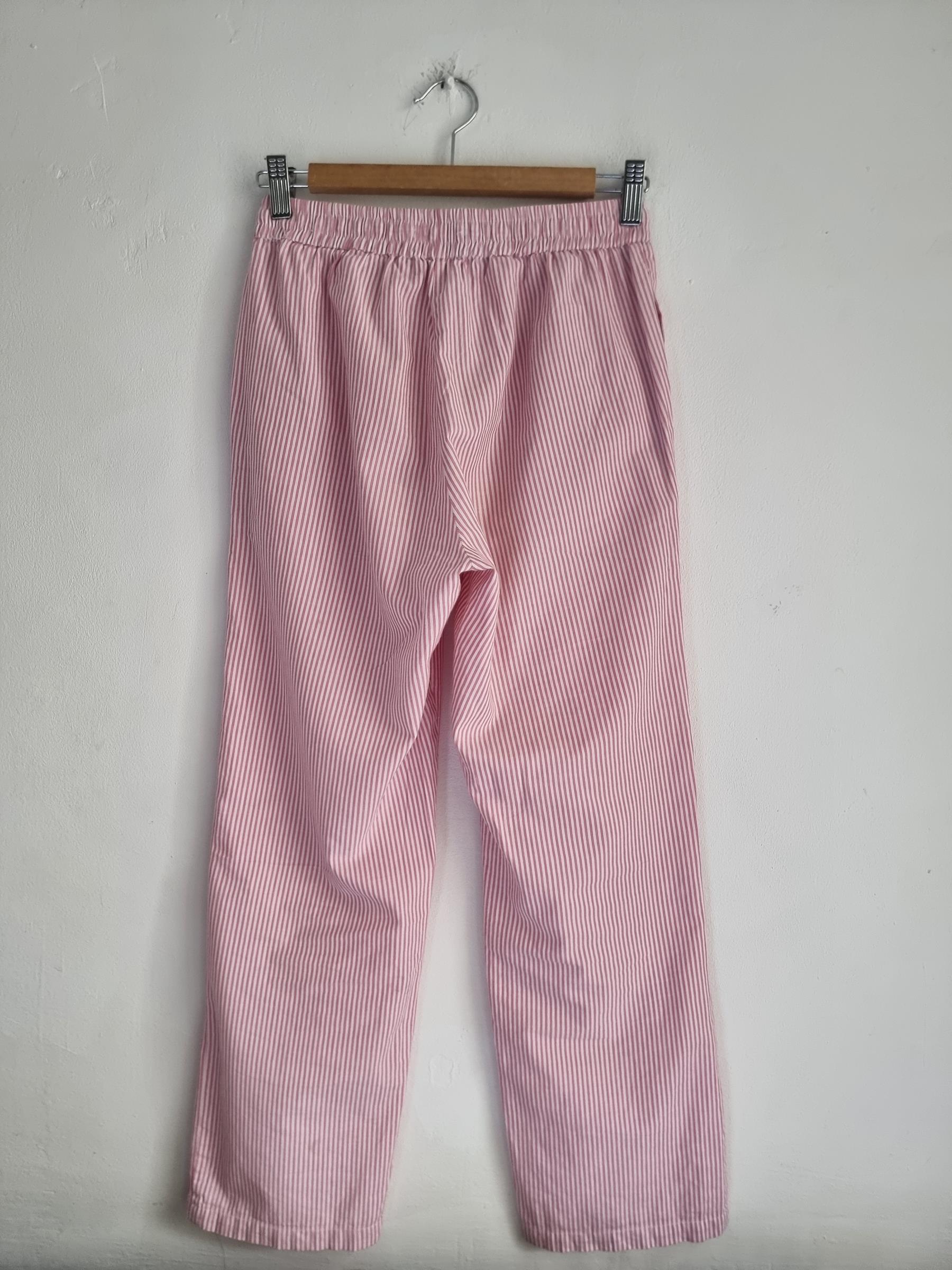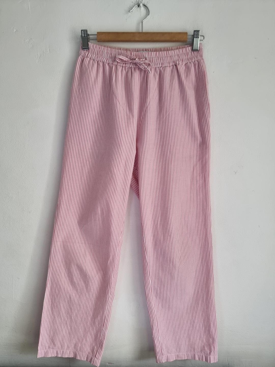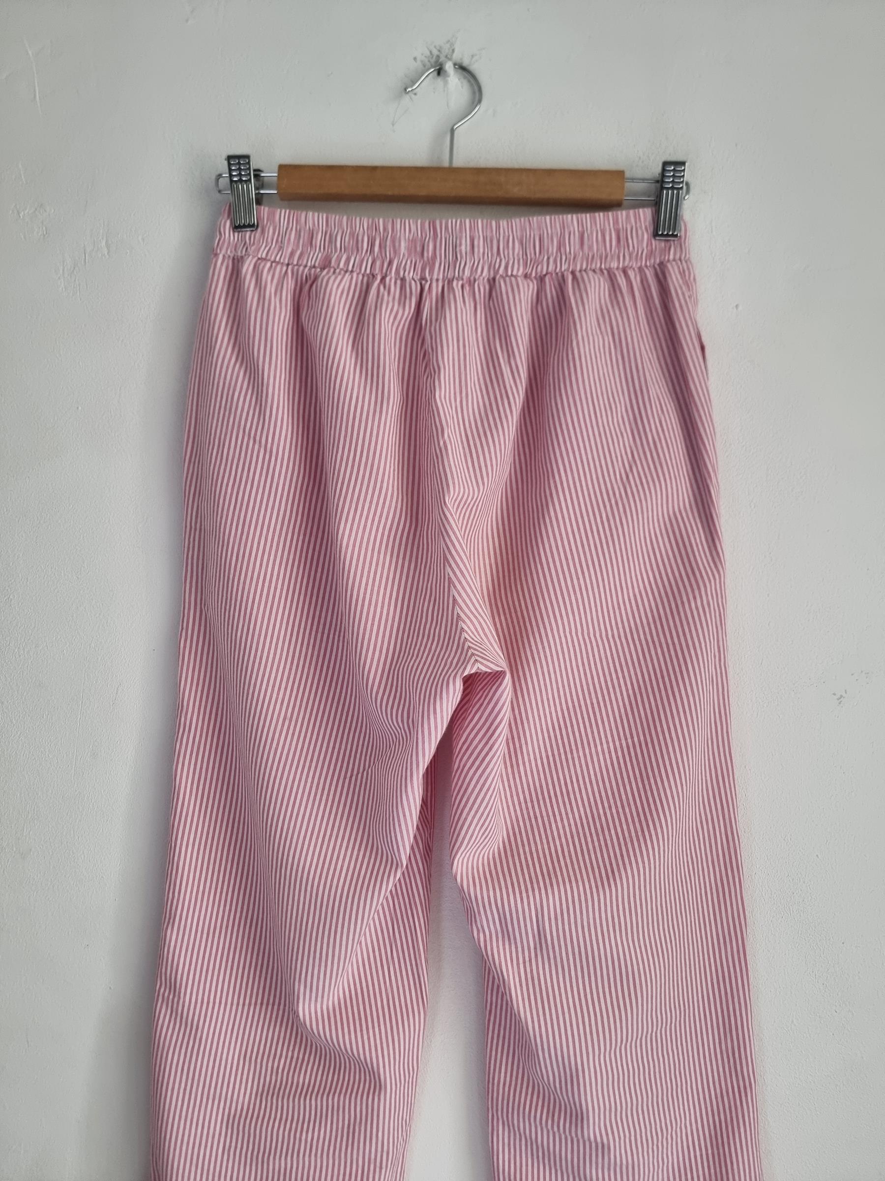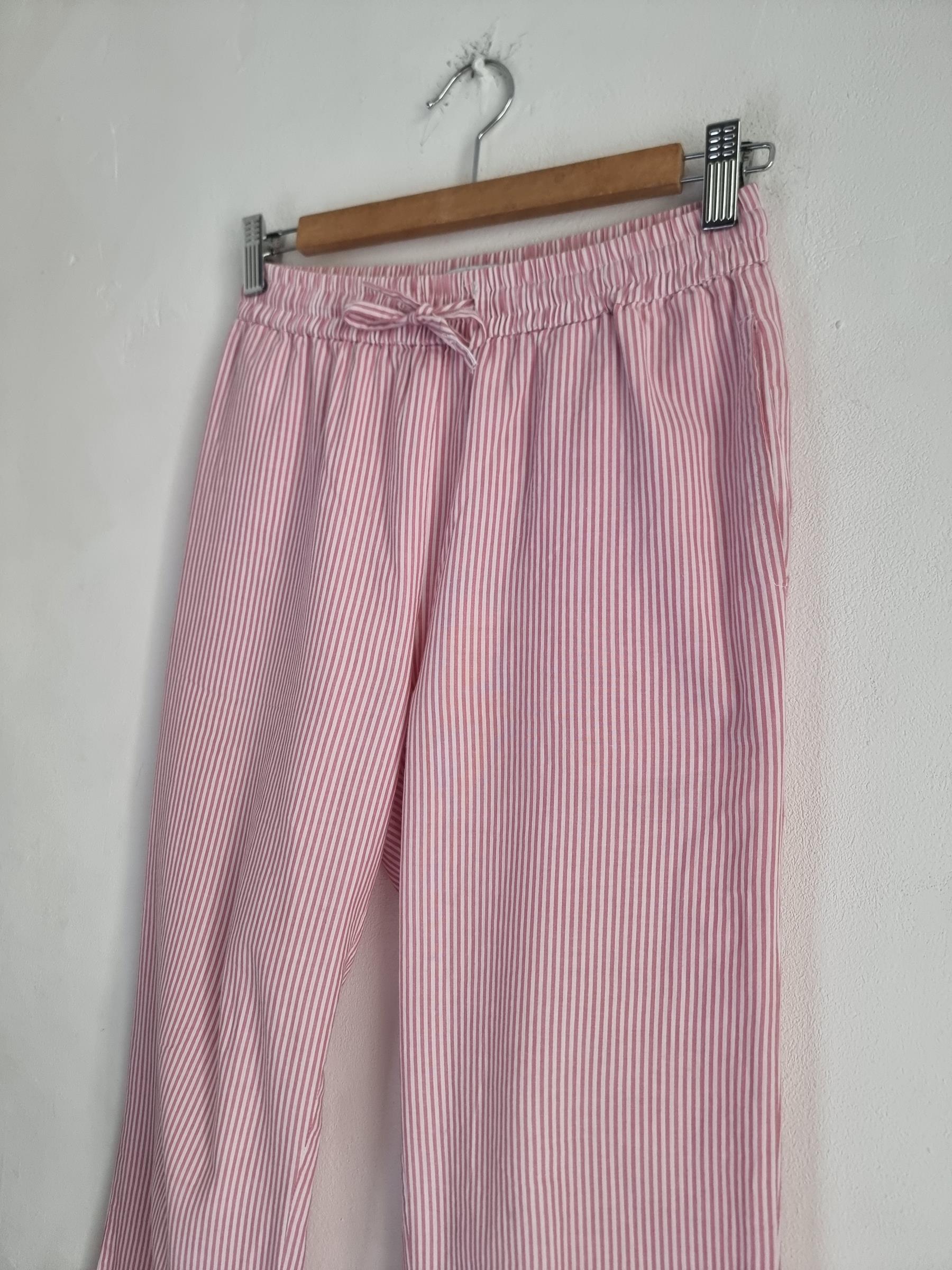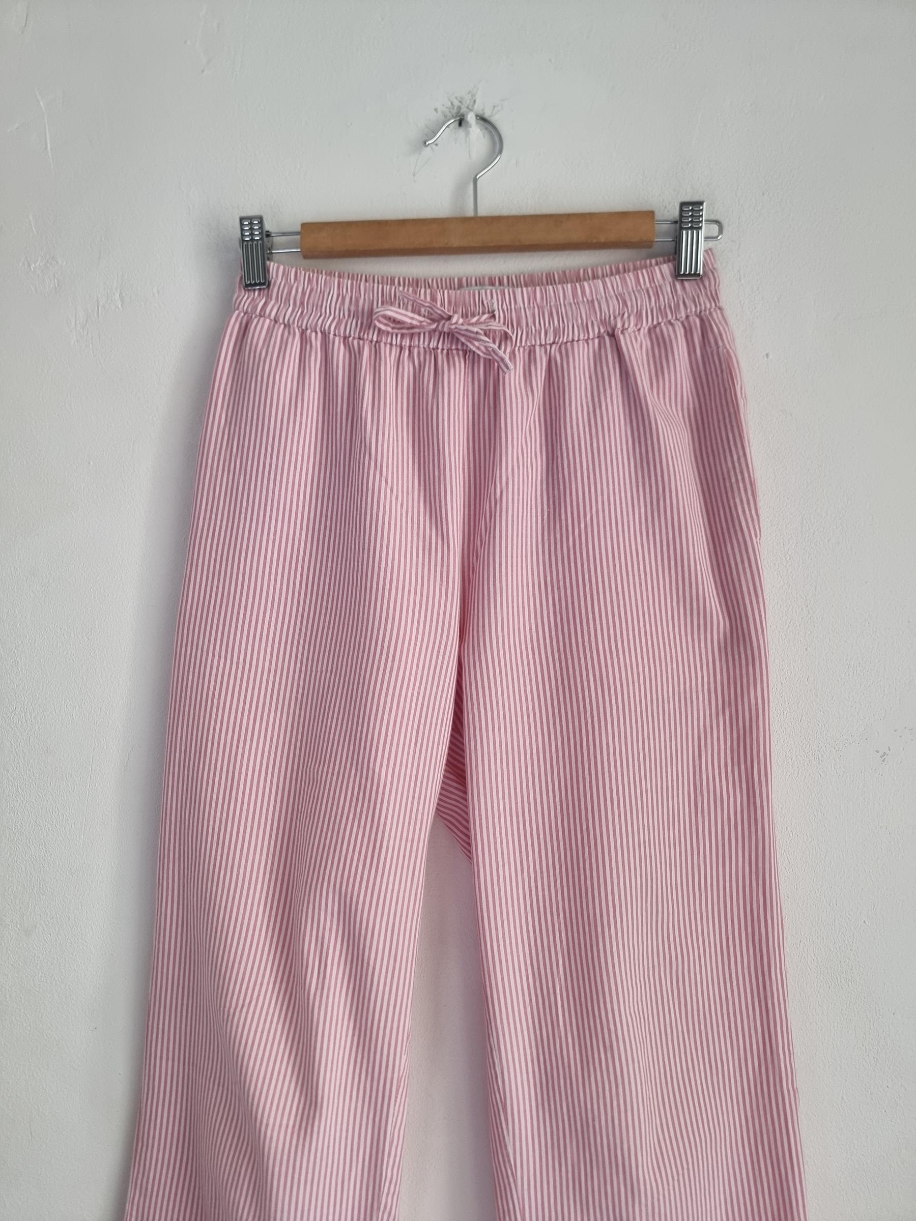 157 spodnie piżamowe 160 XS S biało różowe w paski