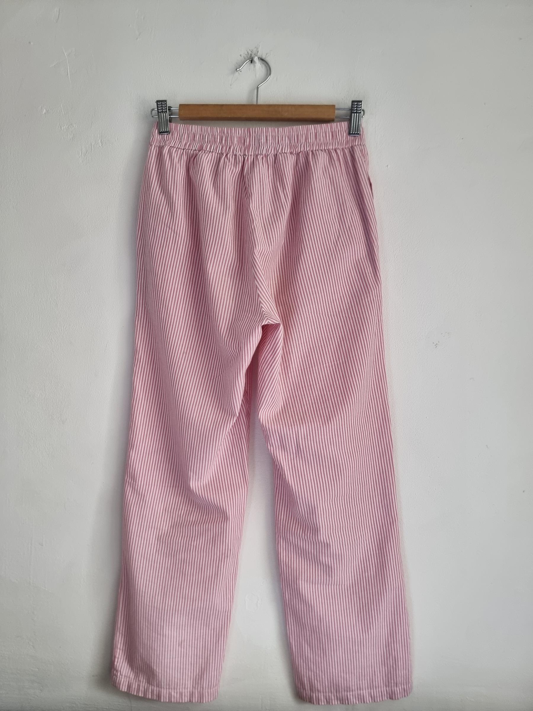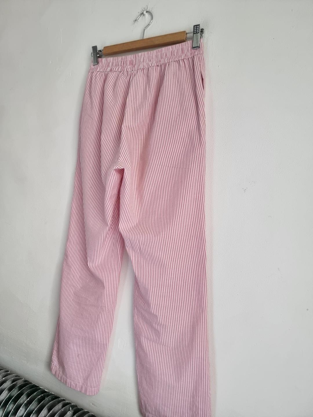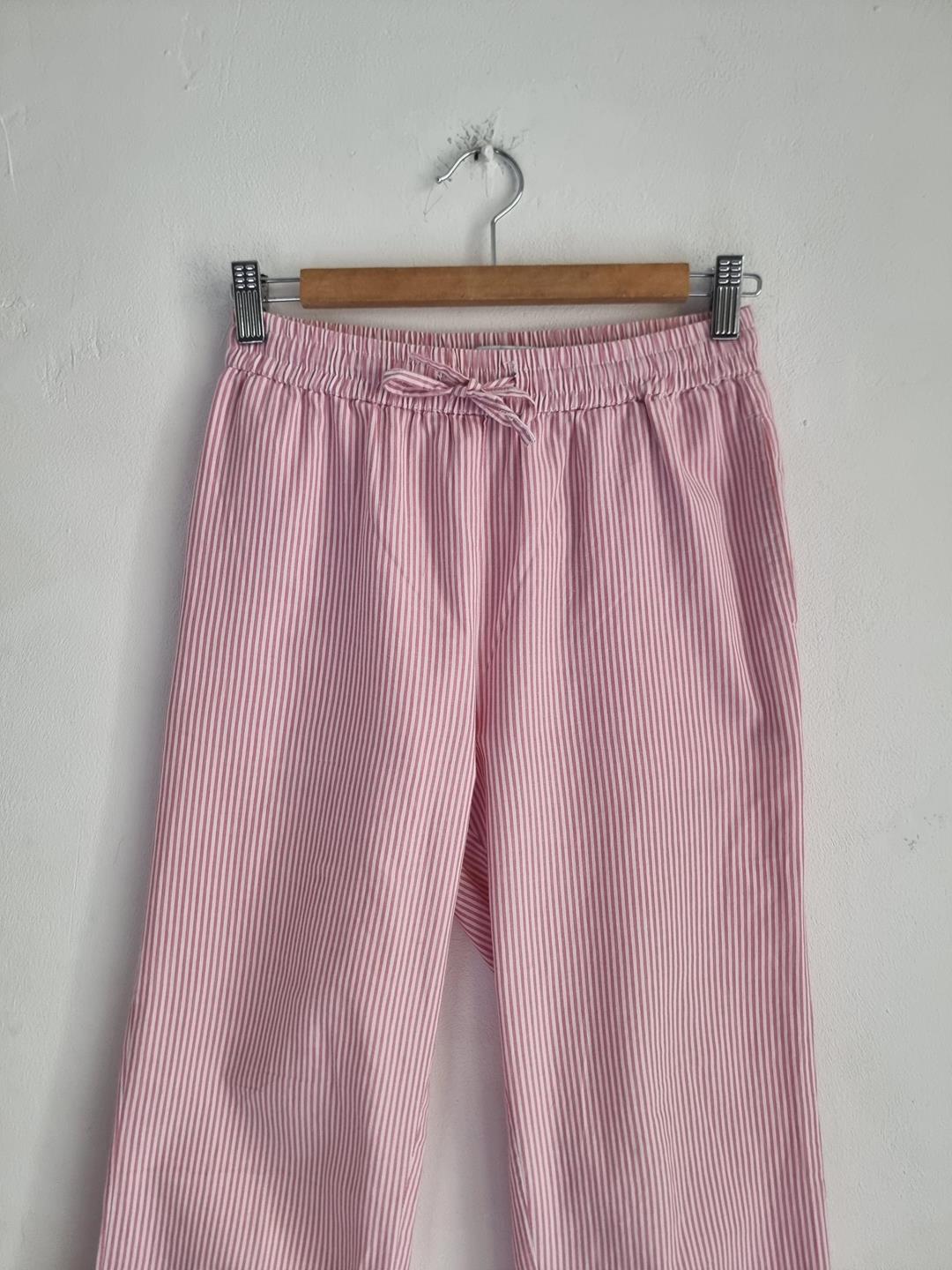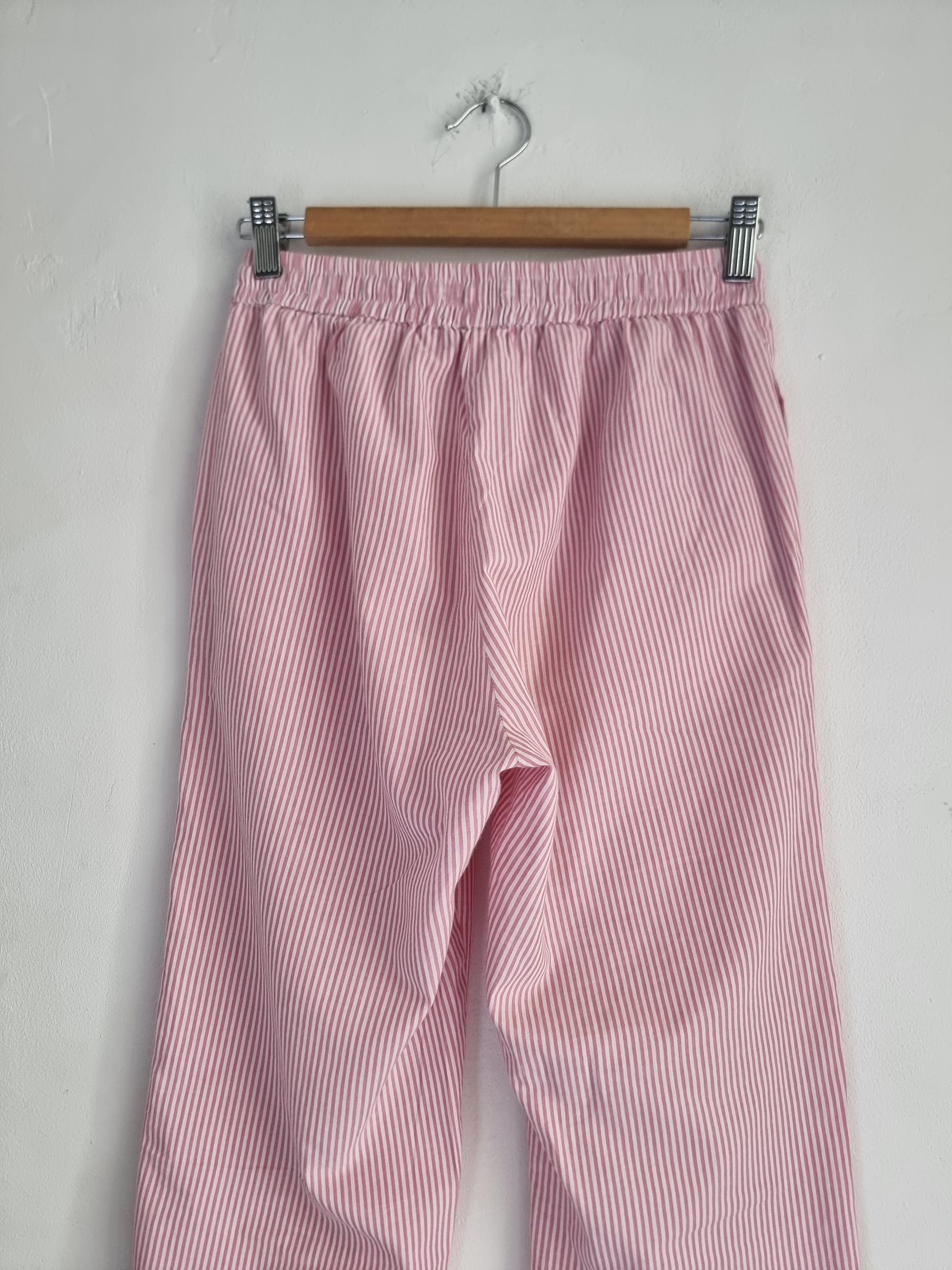 157 spodnie piżamowe 160 XS S biało różowe w paski