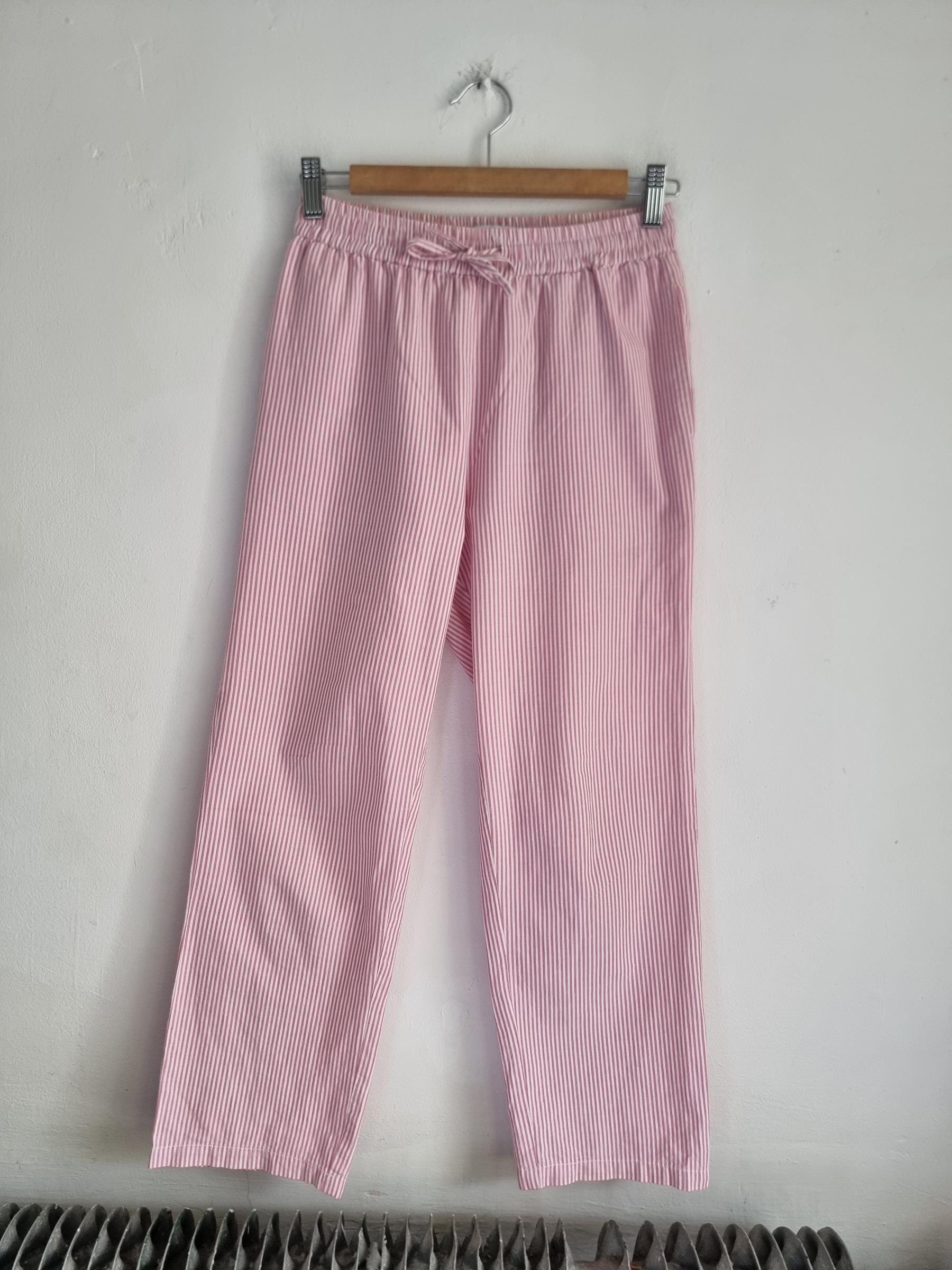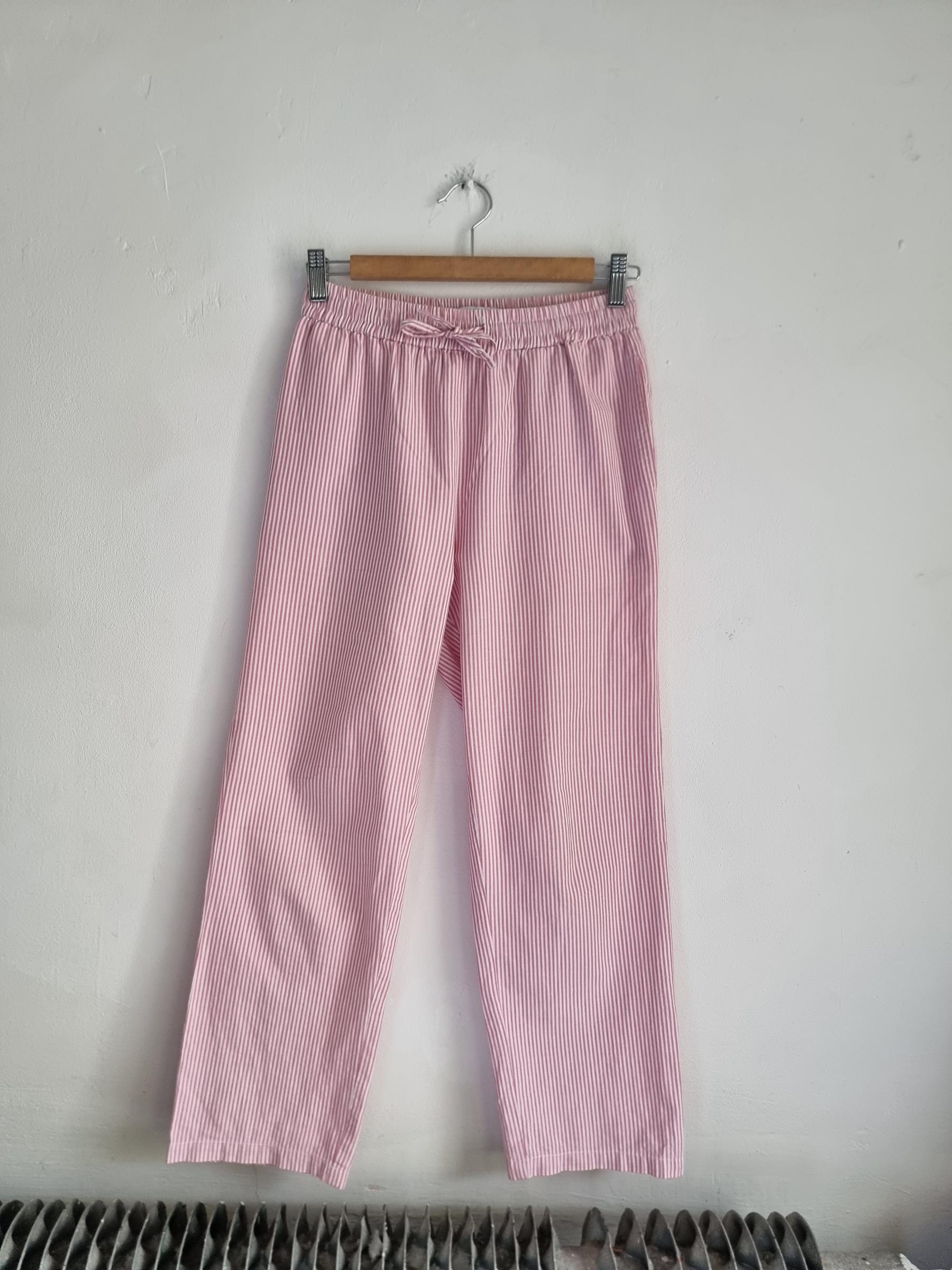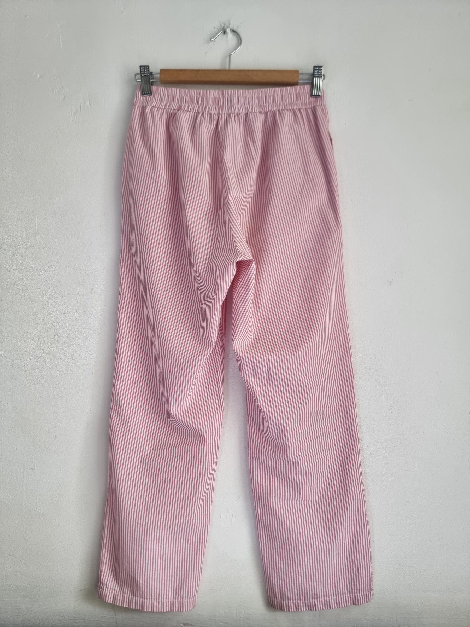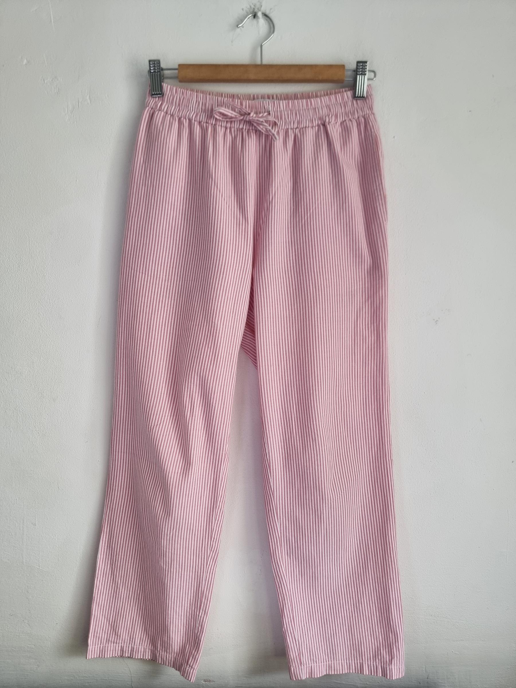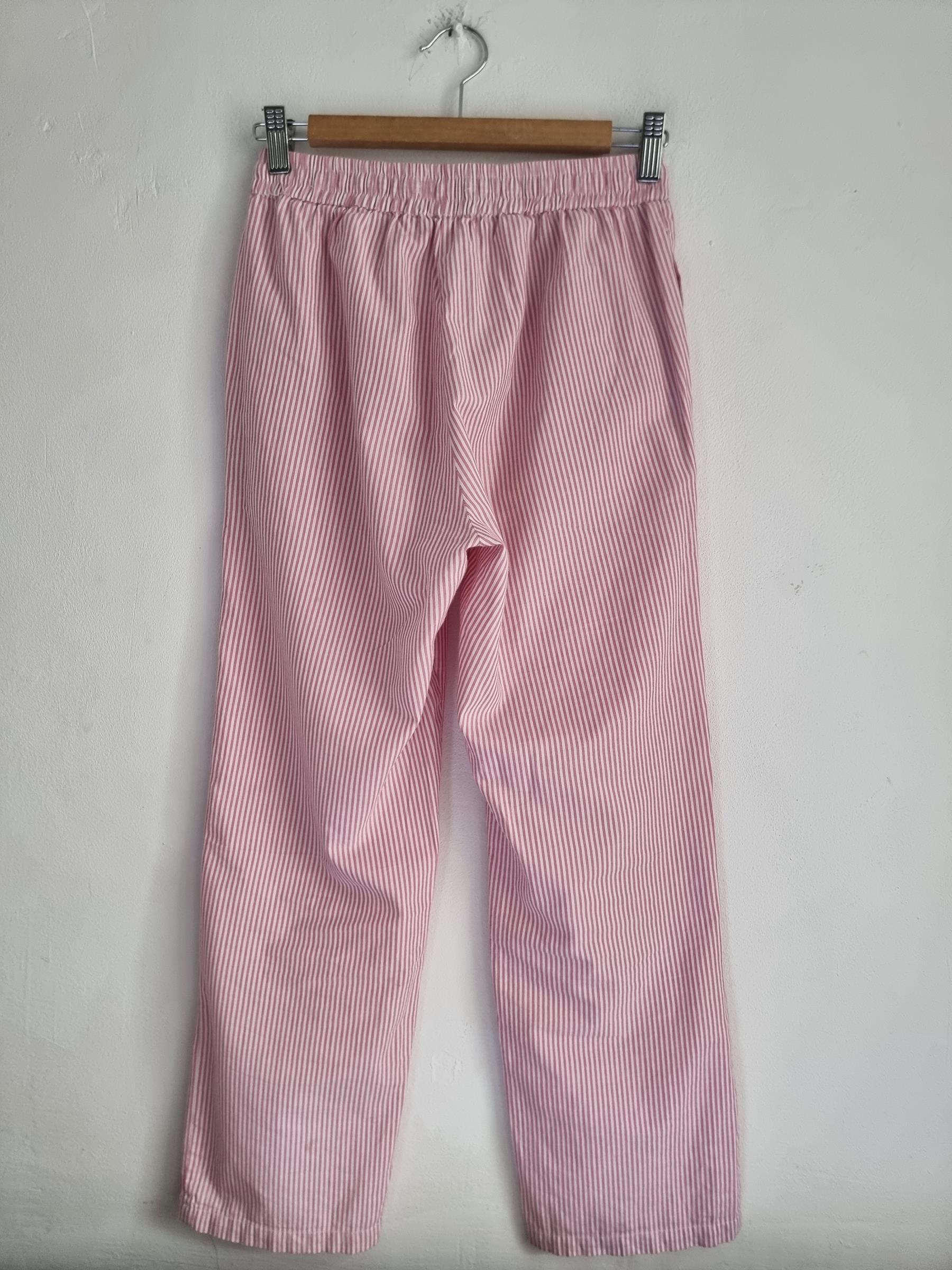 157 spodnie piżamowe 160 XS S biało różowe w paski