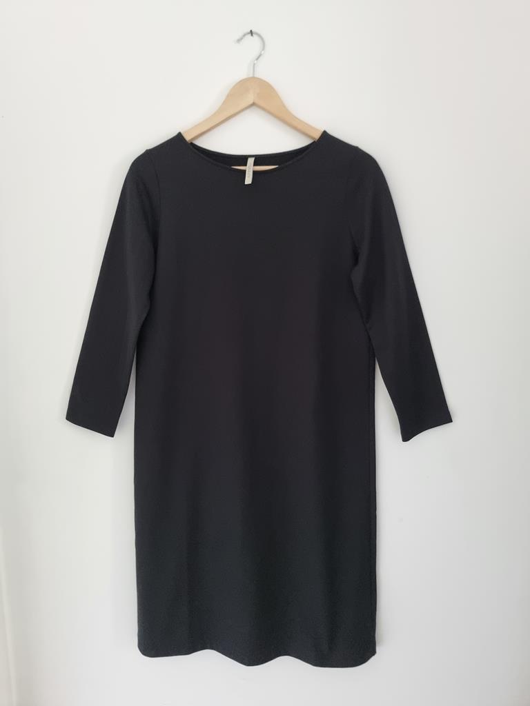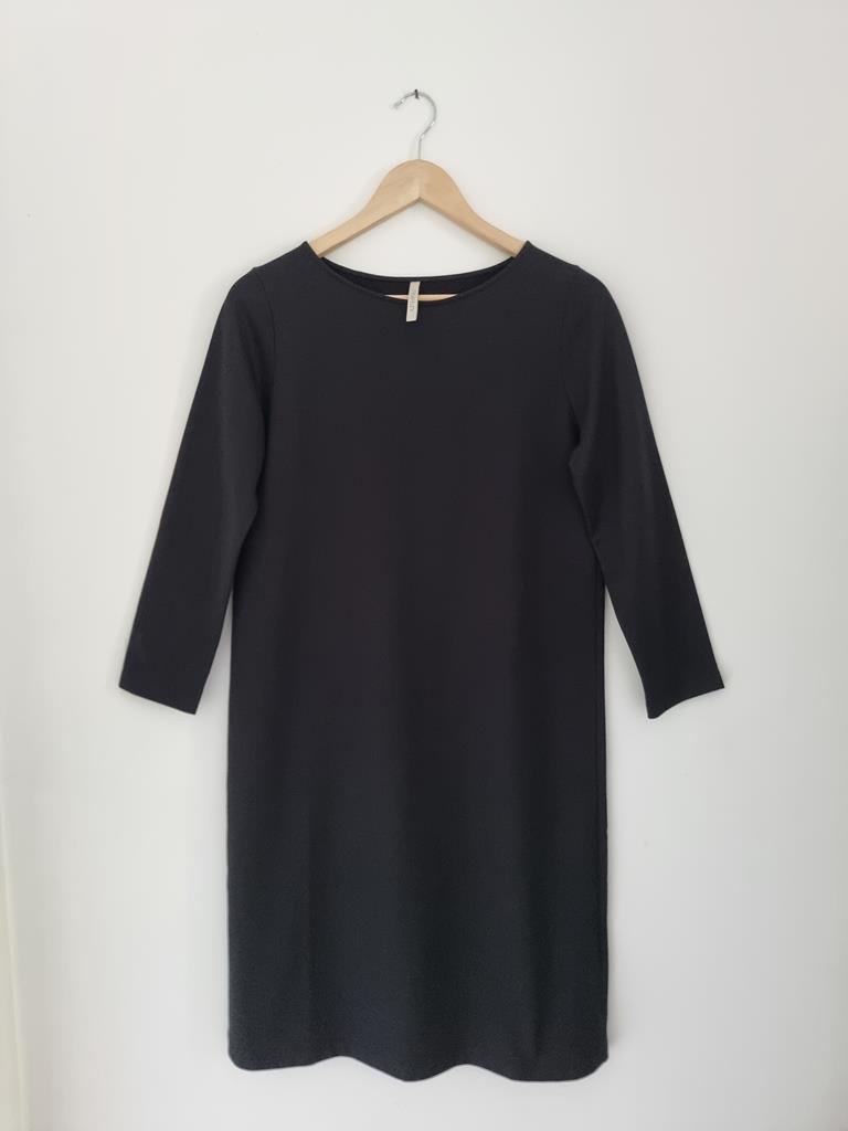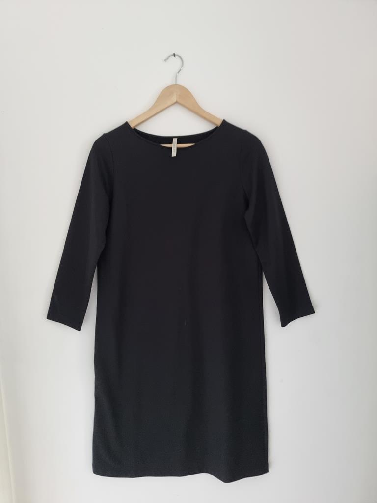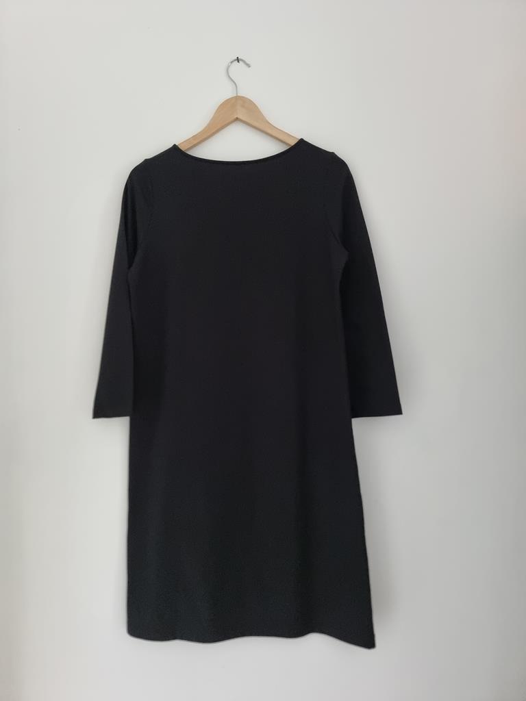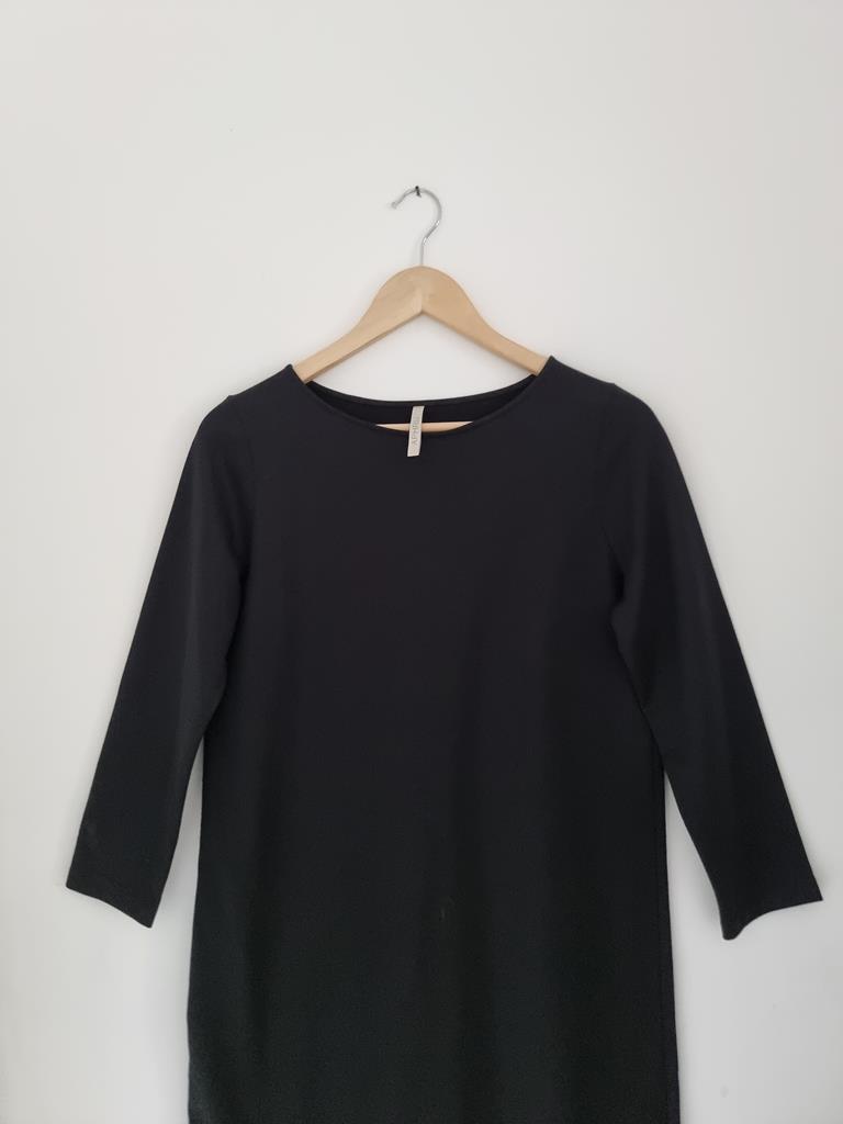 Czarna bawełniana prosta sukienka z długim rękawem. Dekolt łódka.
