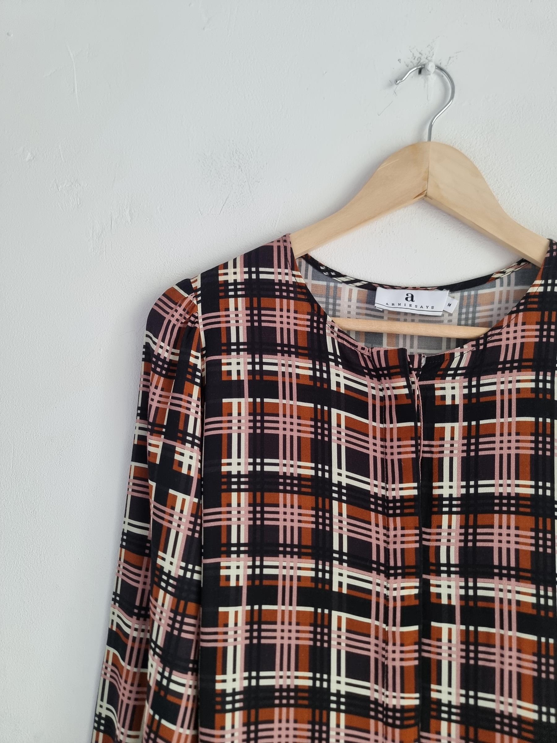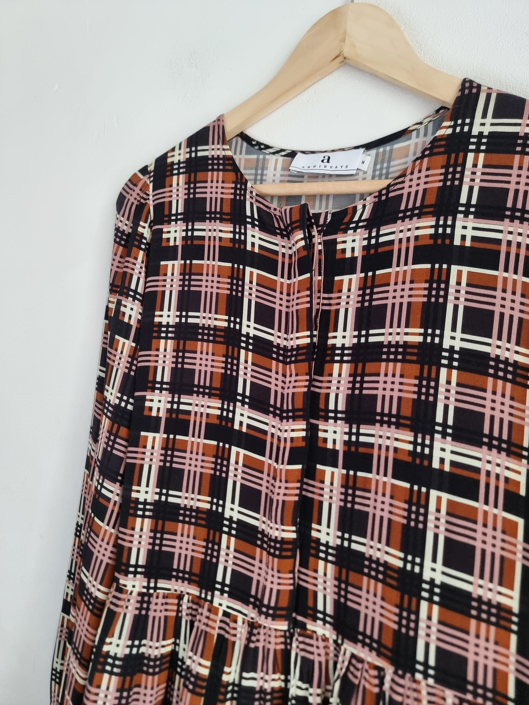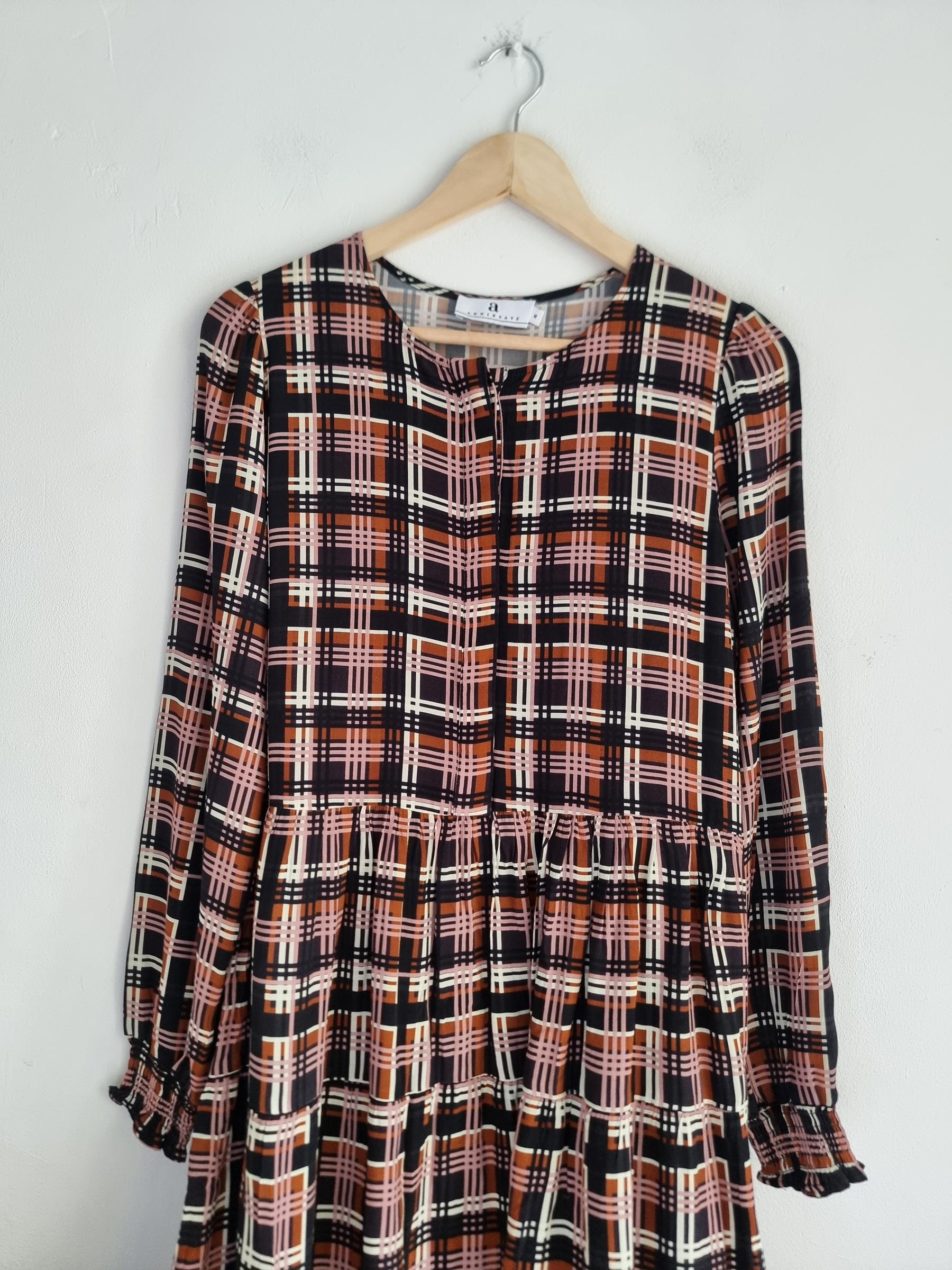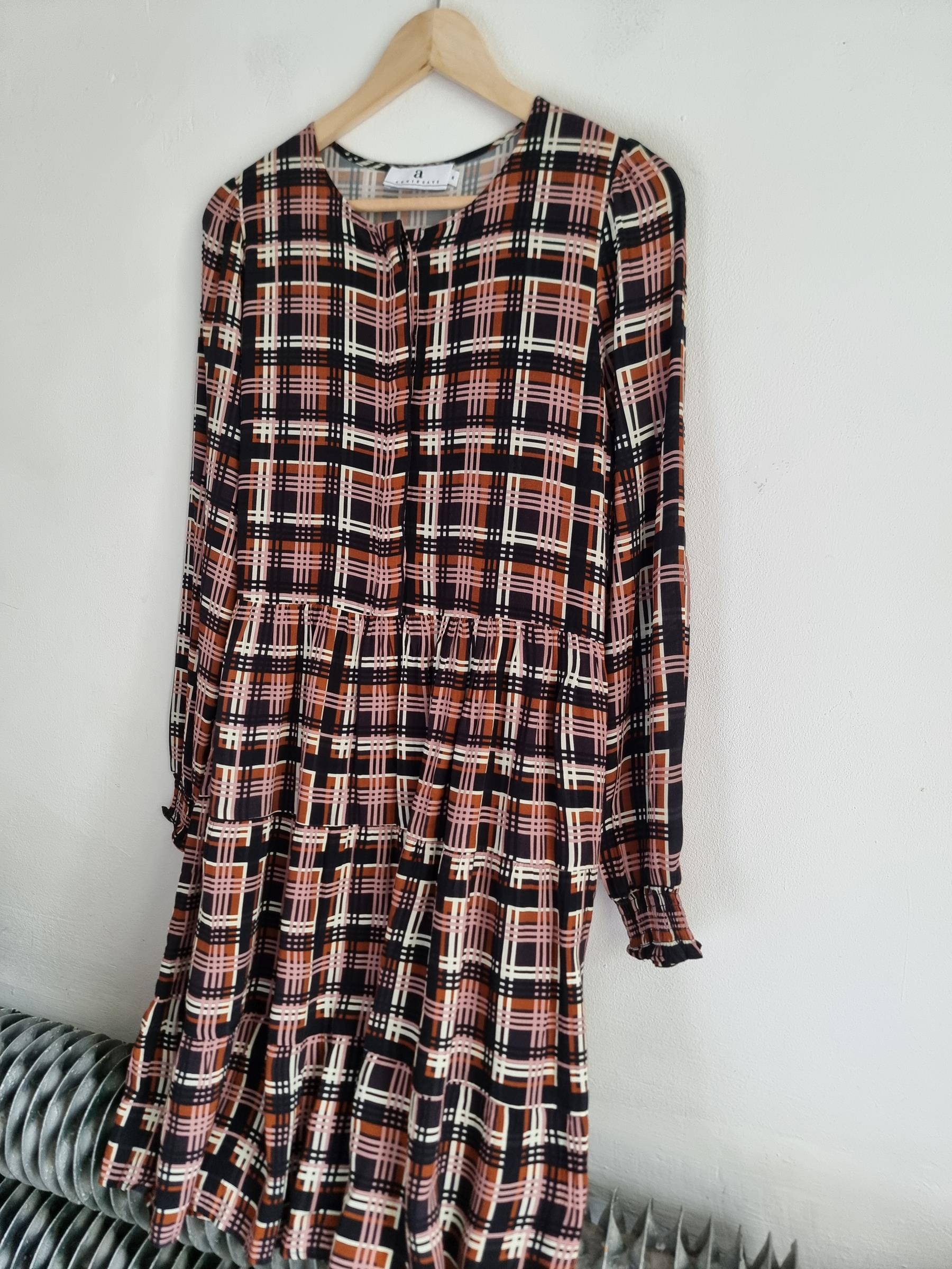 Codzienna sukienka ArnieSays Nadya w rozmiarze M. Sukienka ma wielokolorowy wzór w kratkę.
