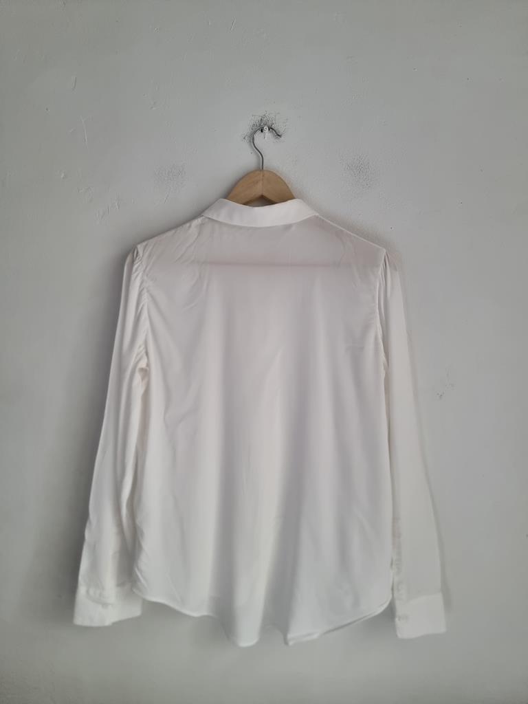 Wiskozowa biała koszula zapinana na guziki o prostym kroju.