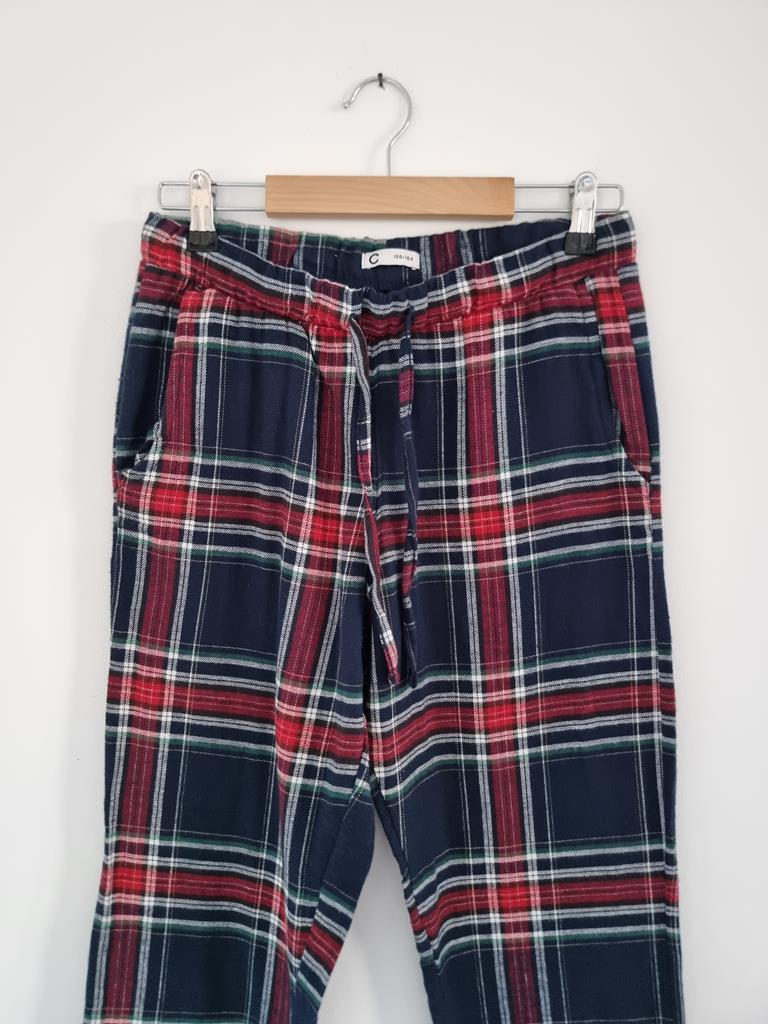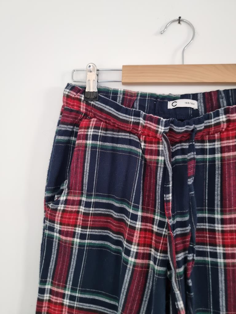 CUBUS XS/S bawełniane spodnie w kratkę pidżamowe 158/164