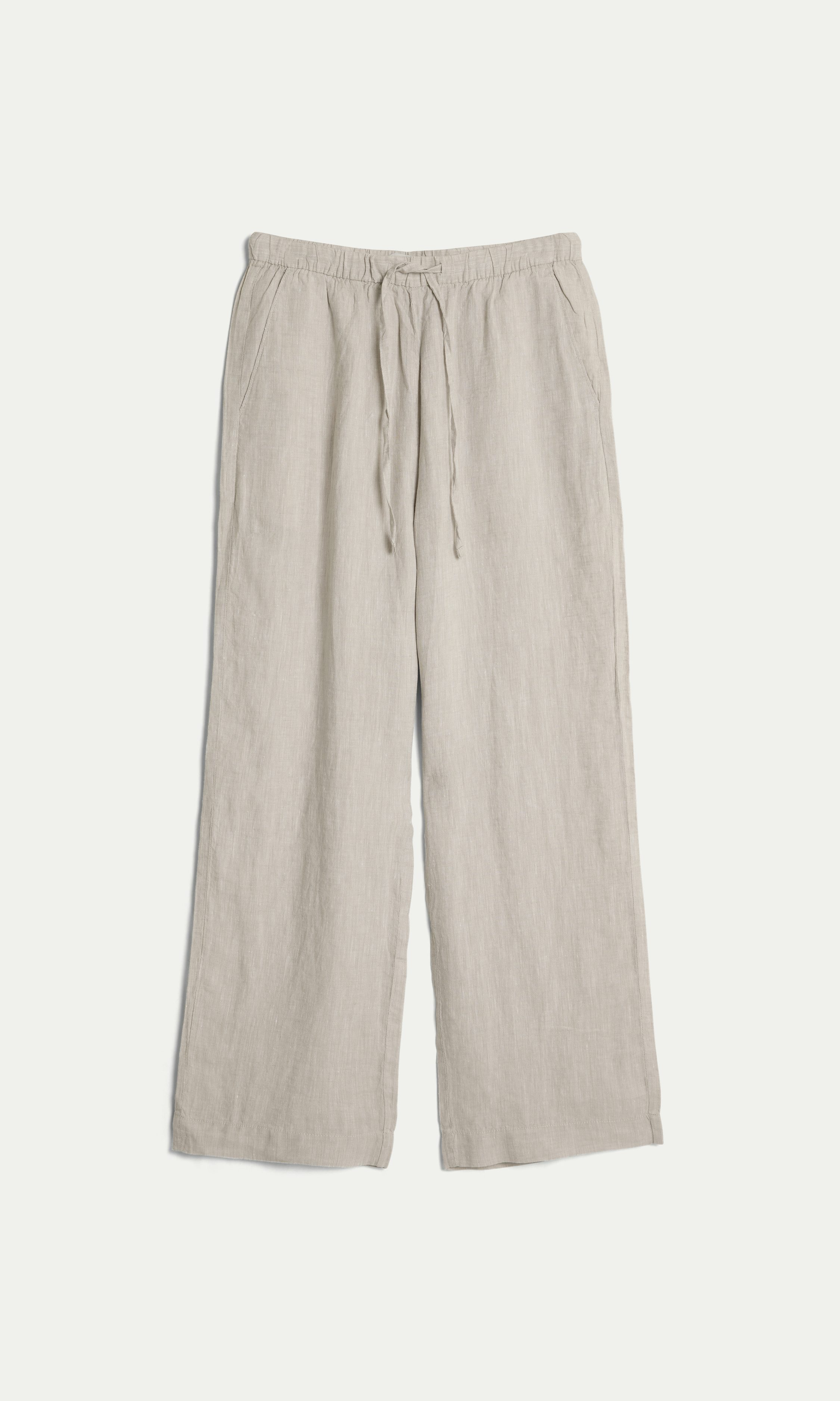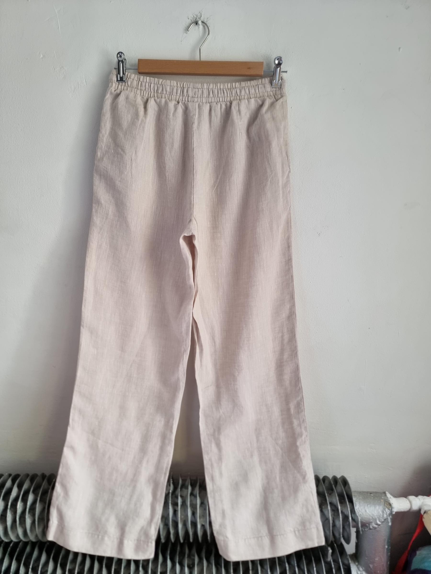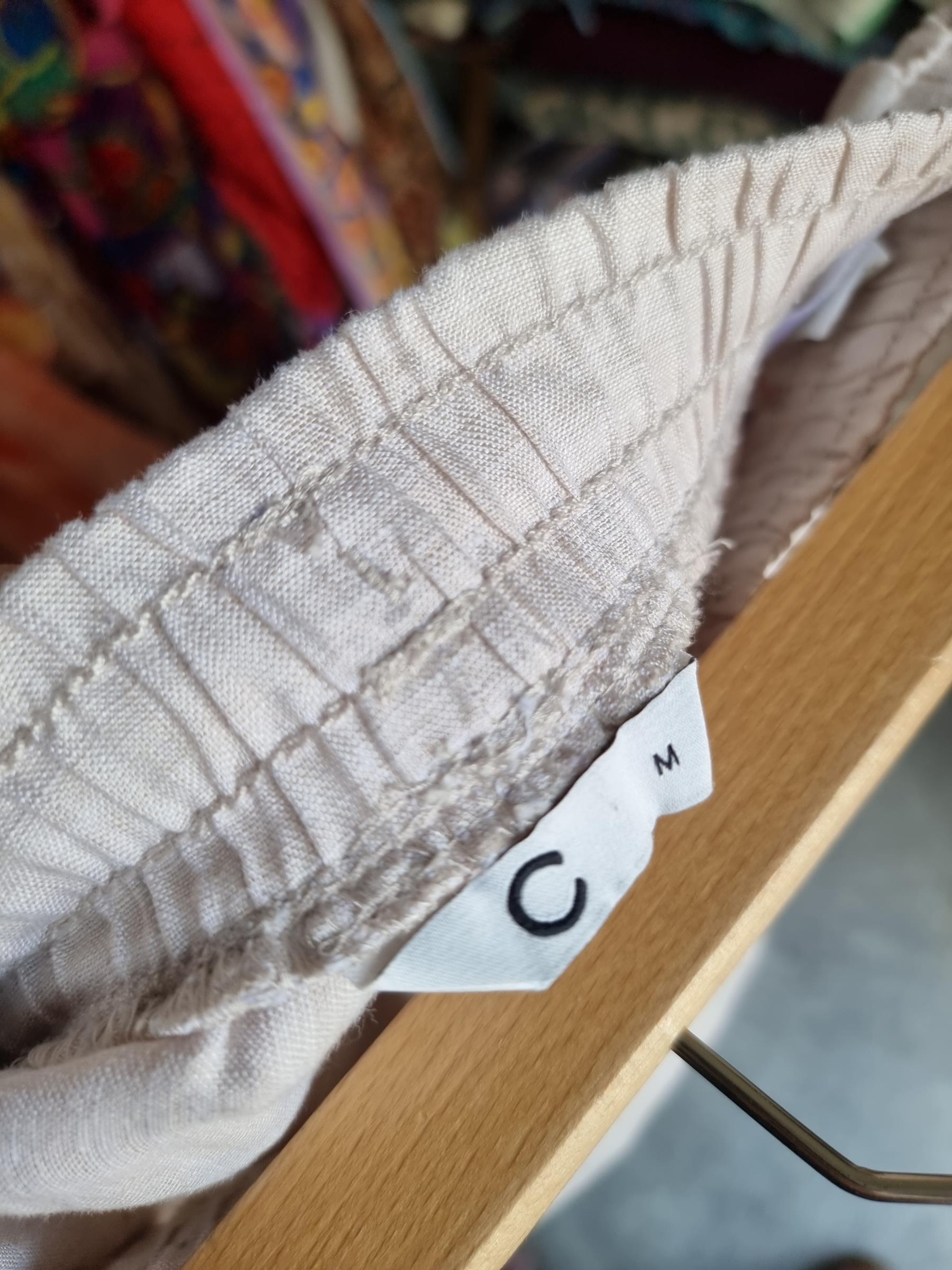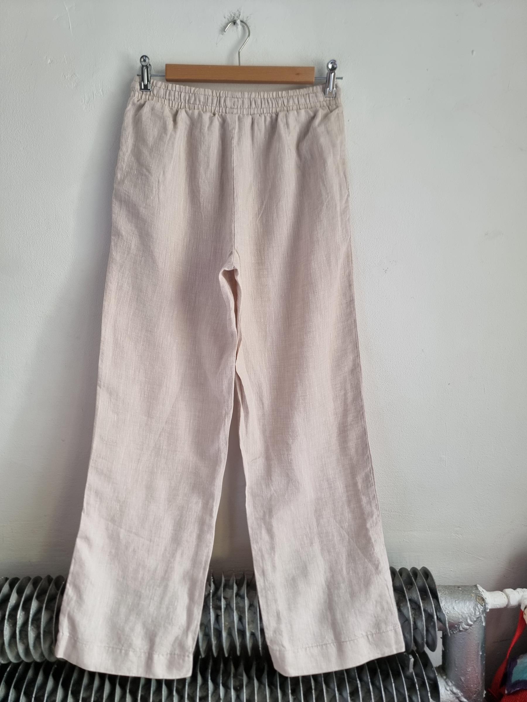 Beżowe lniane spodnie marki Cubus. Gumka w pasie i sznurek. Model: L Lena linen pant.