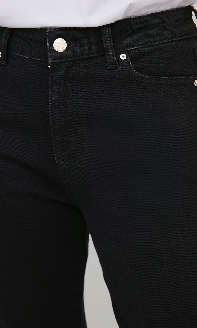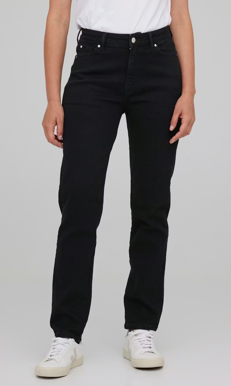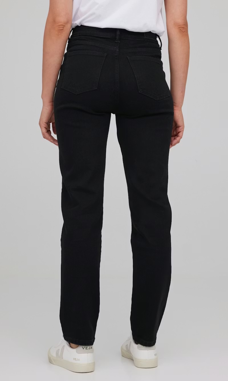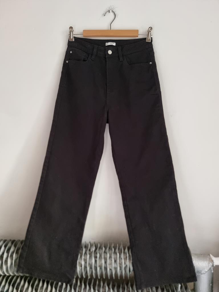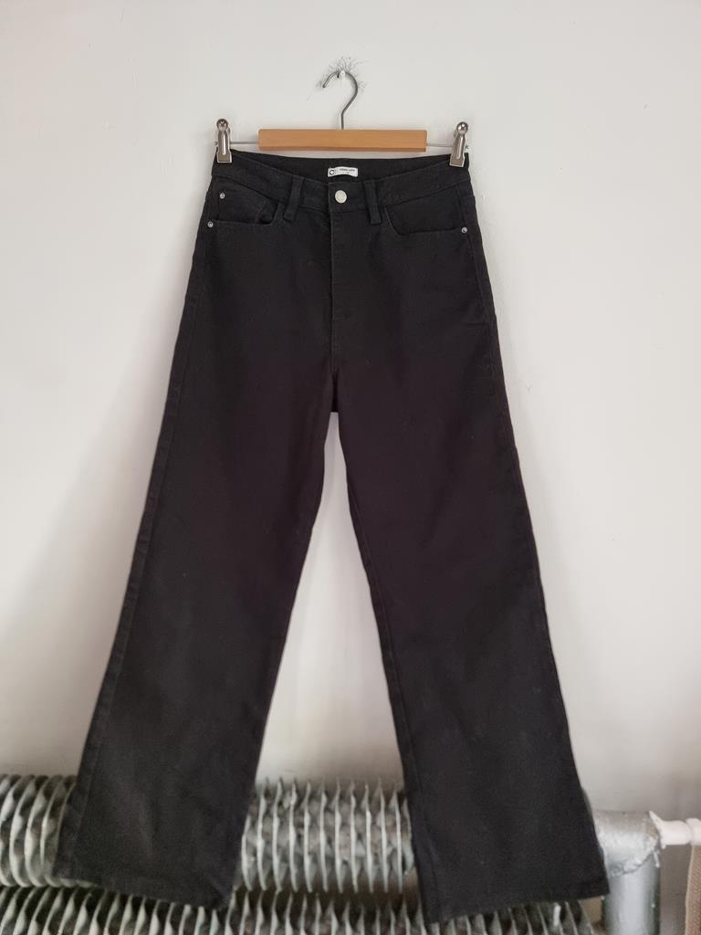 Czarne jeansowe spodnie z bawełny organicznej. Mom fit jeans. Czarne nieco szersze nogawki.