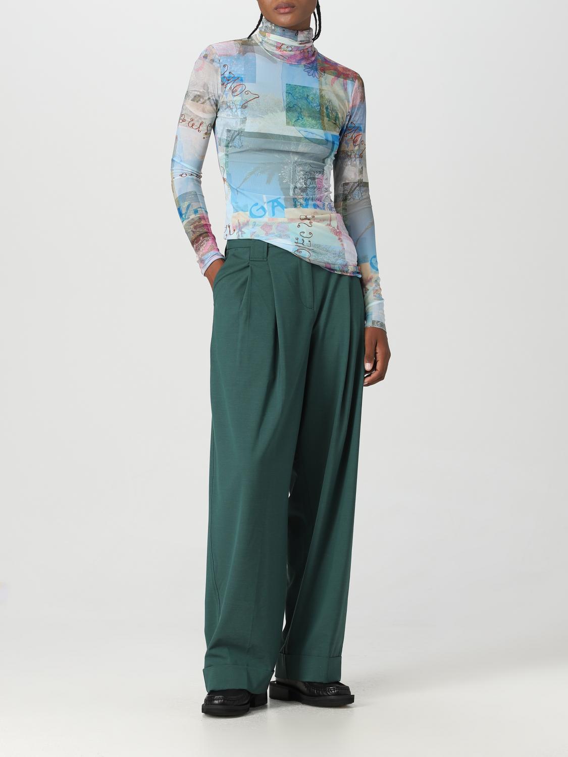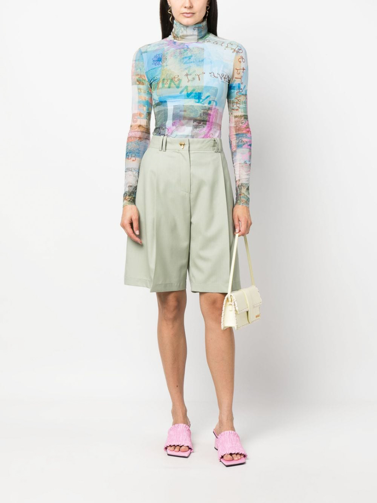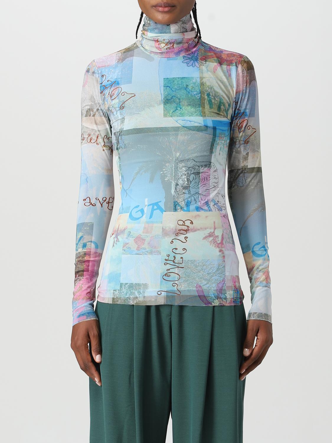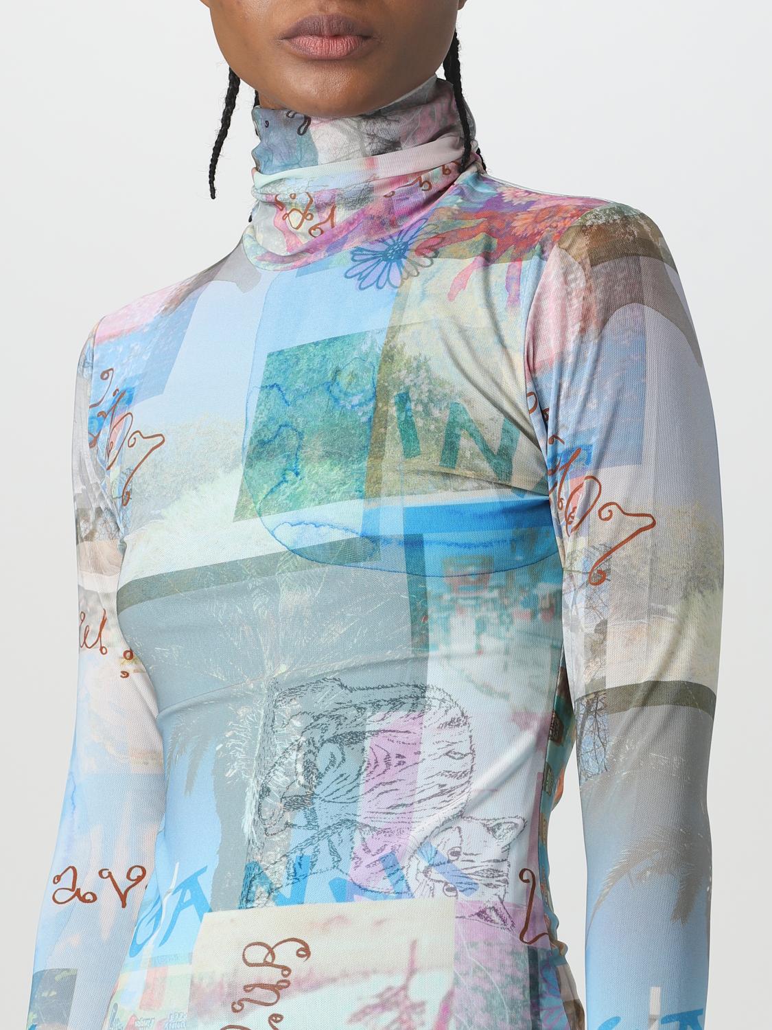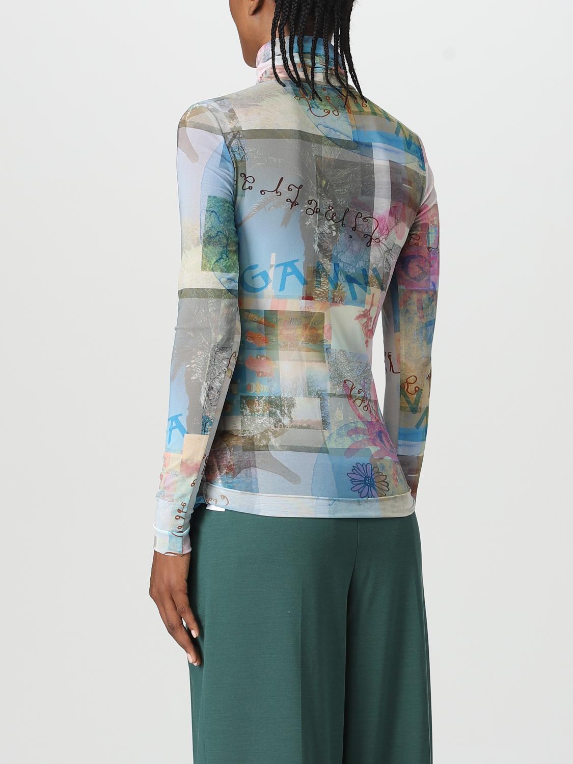 Koszulka z nadrukiem graficznym marki Ganni z jasnoniebieskim, wielokolorowym nadrukiem graficznym na całej powierzchni, golfem z długim rękawem i prostym dołem, rozmiar fry