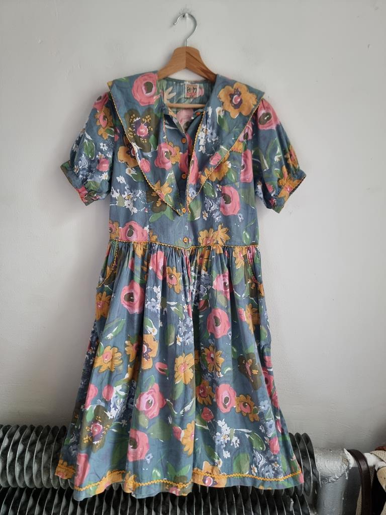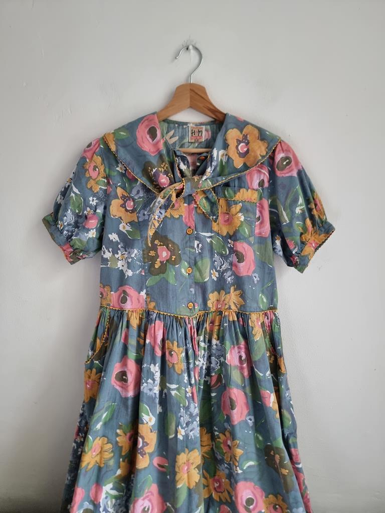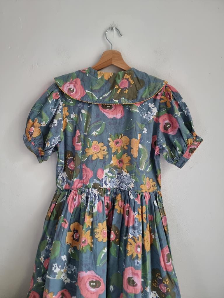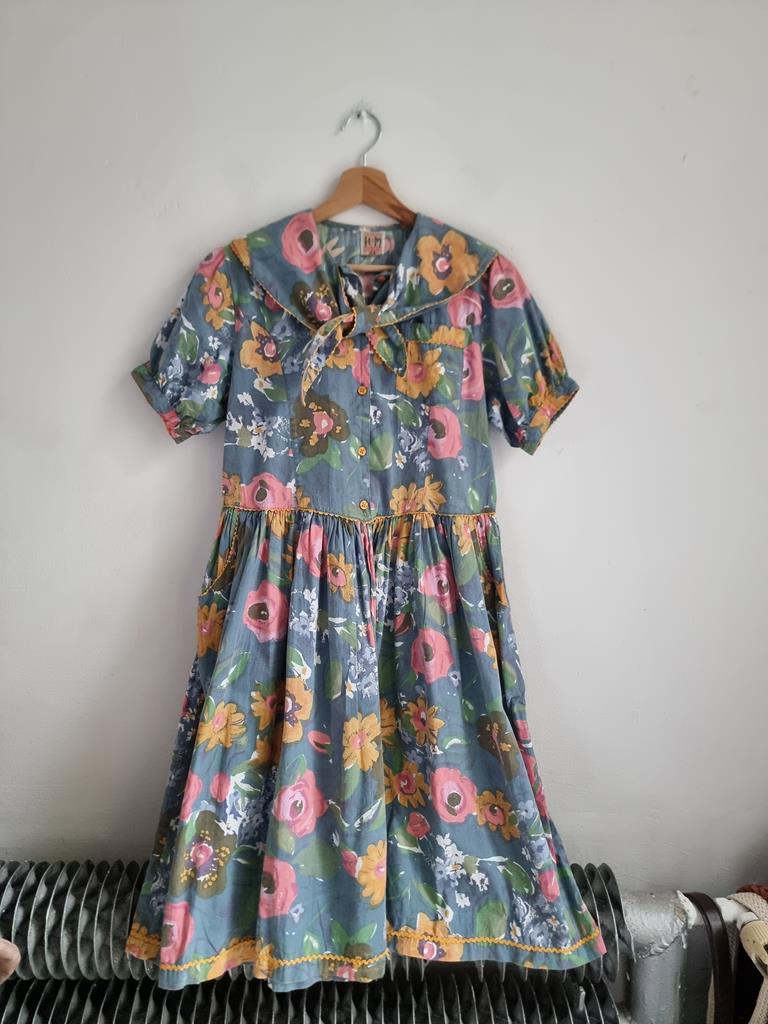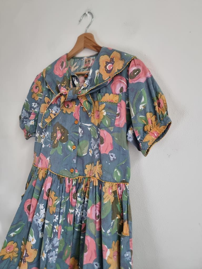 Vintage sukienka seria dziecięca na 158 cm, piękny długi kołnierz, który można związać.
