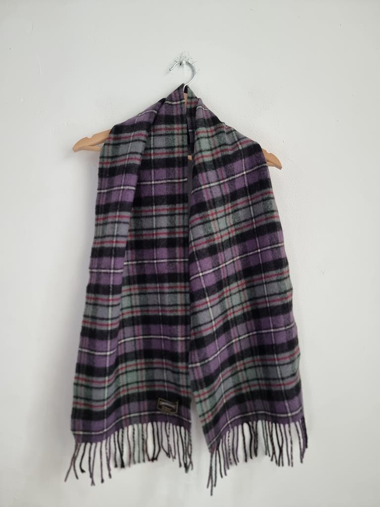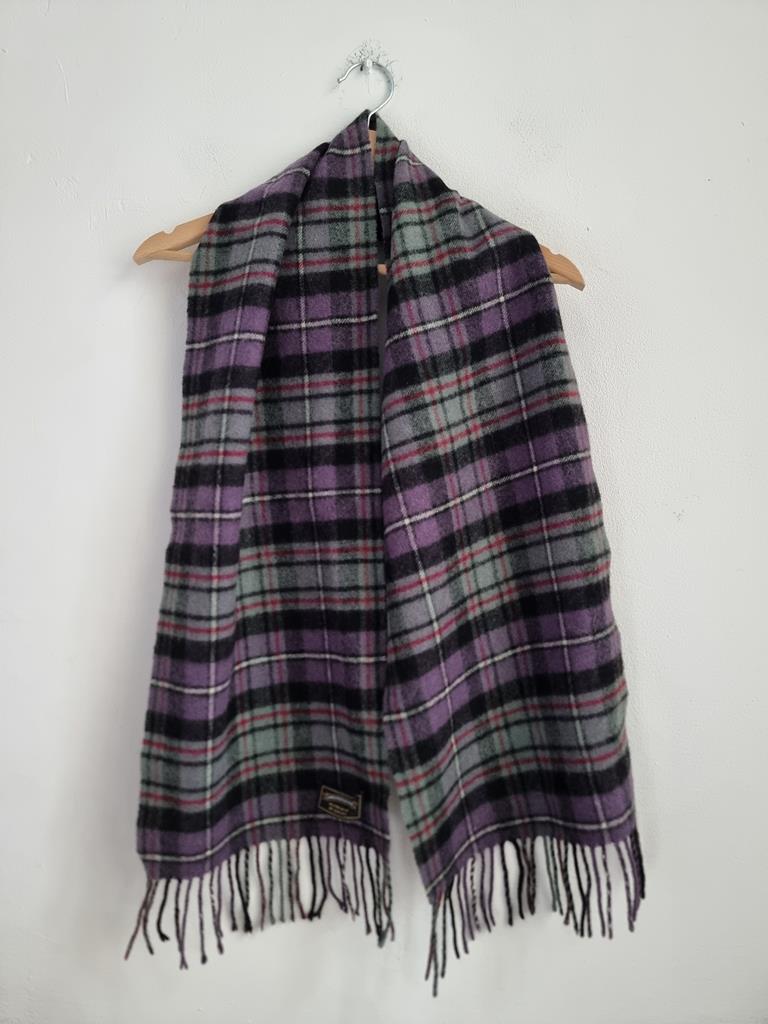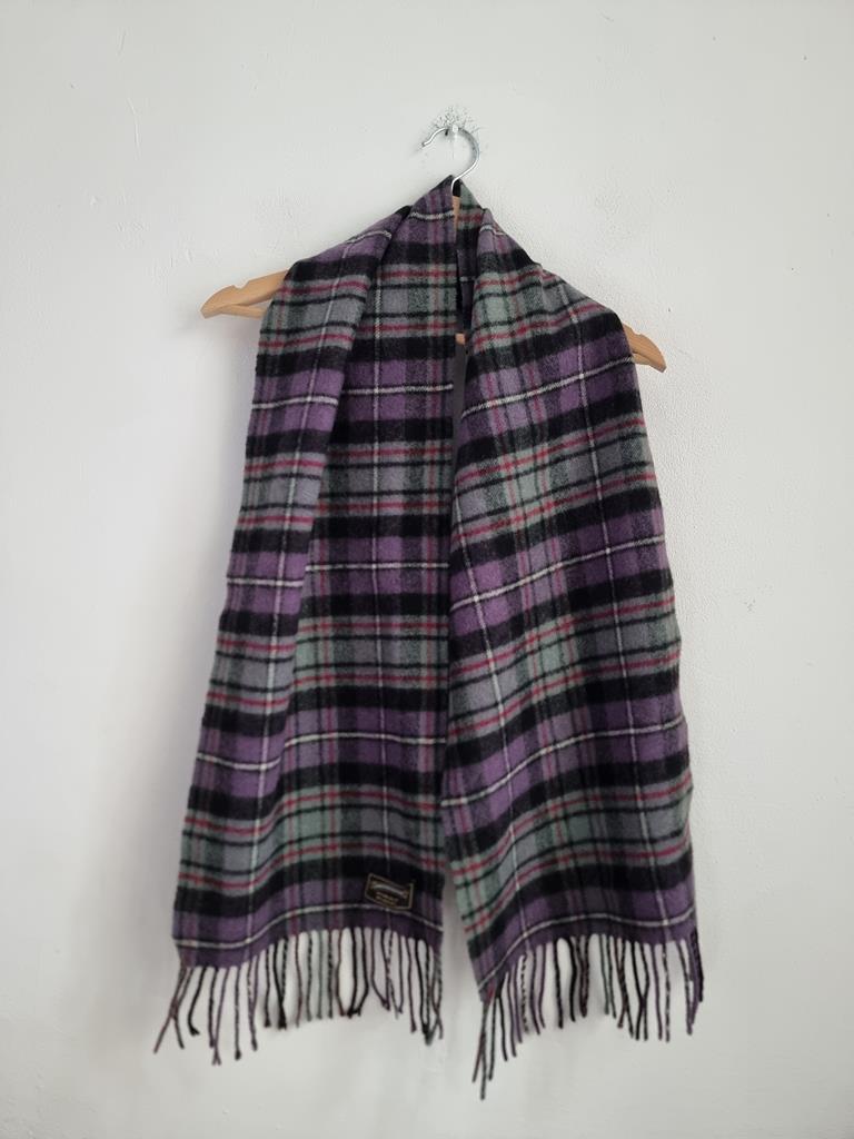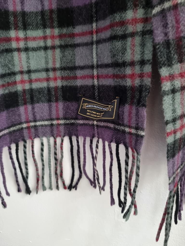 Piękny szal w krateczkę wykonany z wełny typu pure new wool.