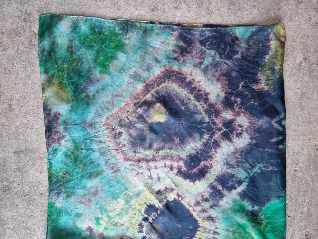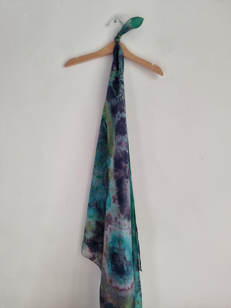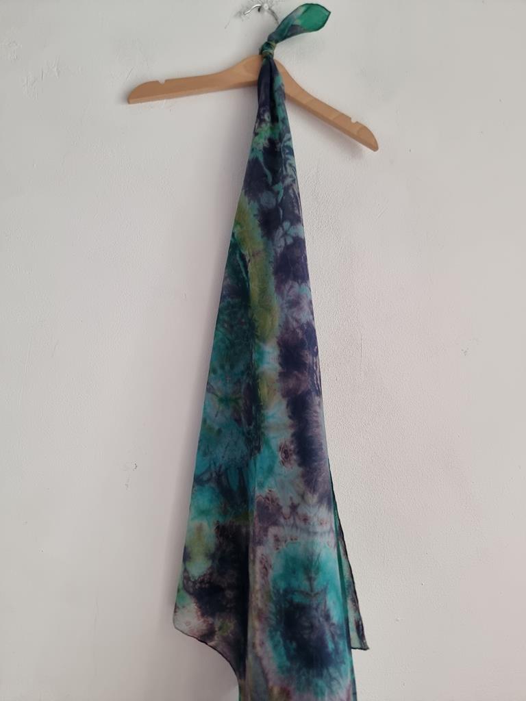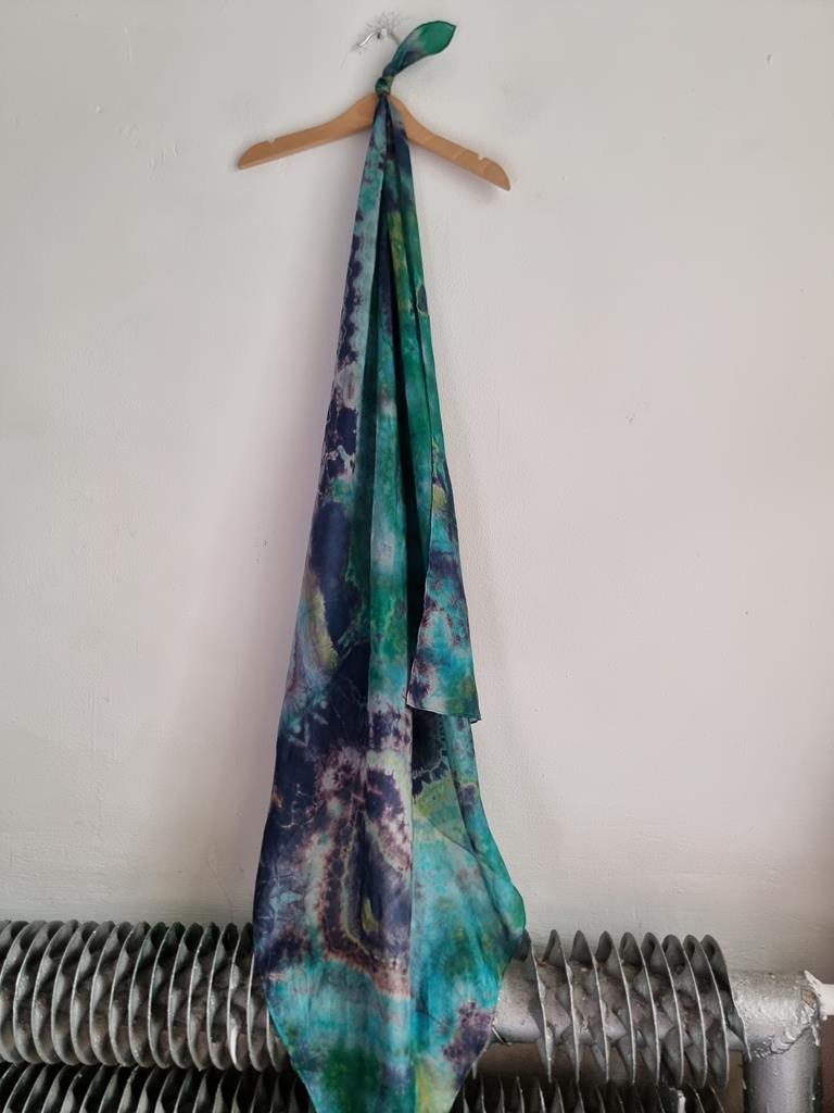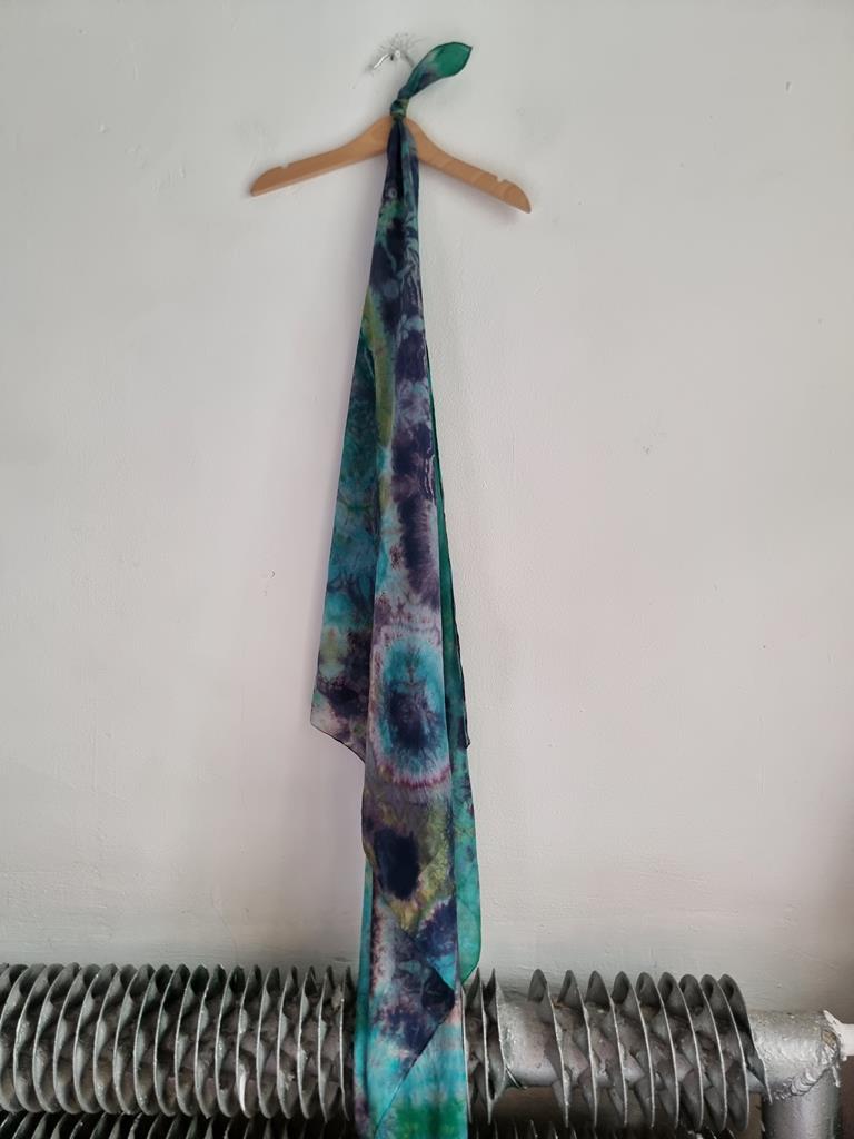 Jedwabna chusta niebiesko zielona hippie tie dye