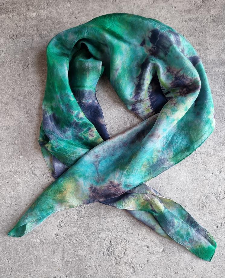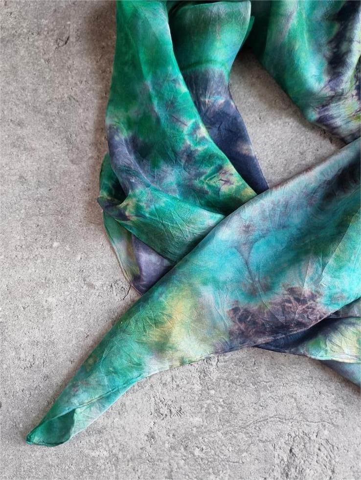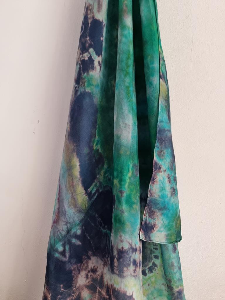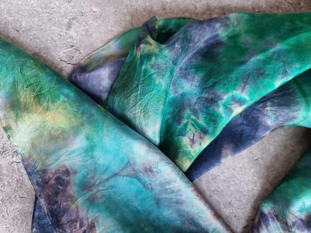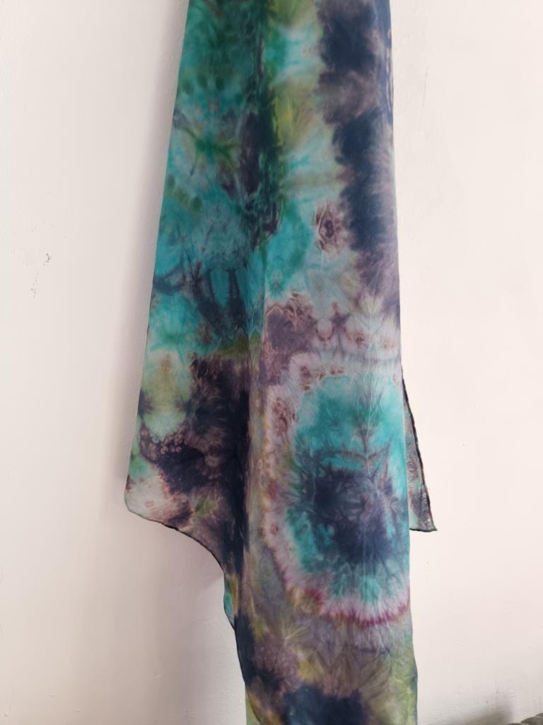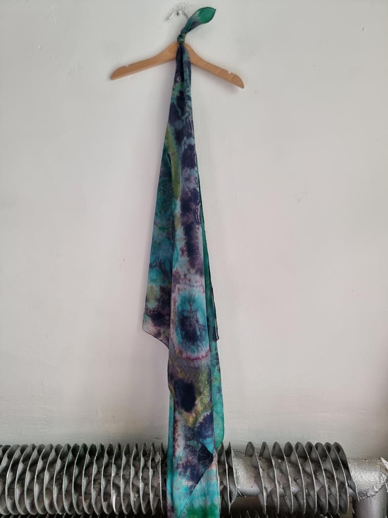 Jedwabna chusta niebiesko zielona hippie tie dye