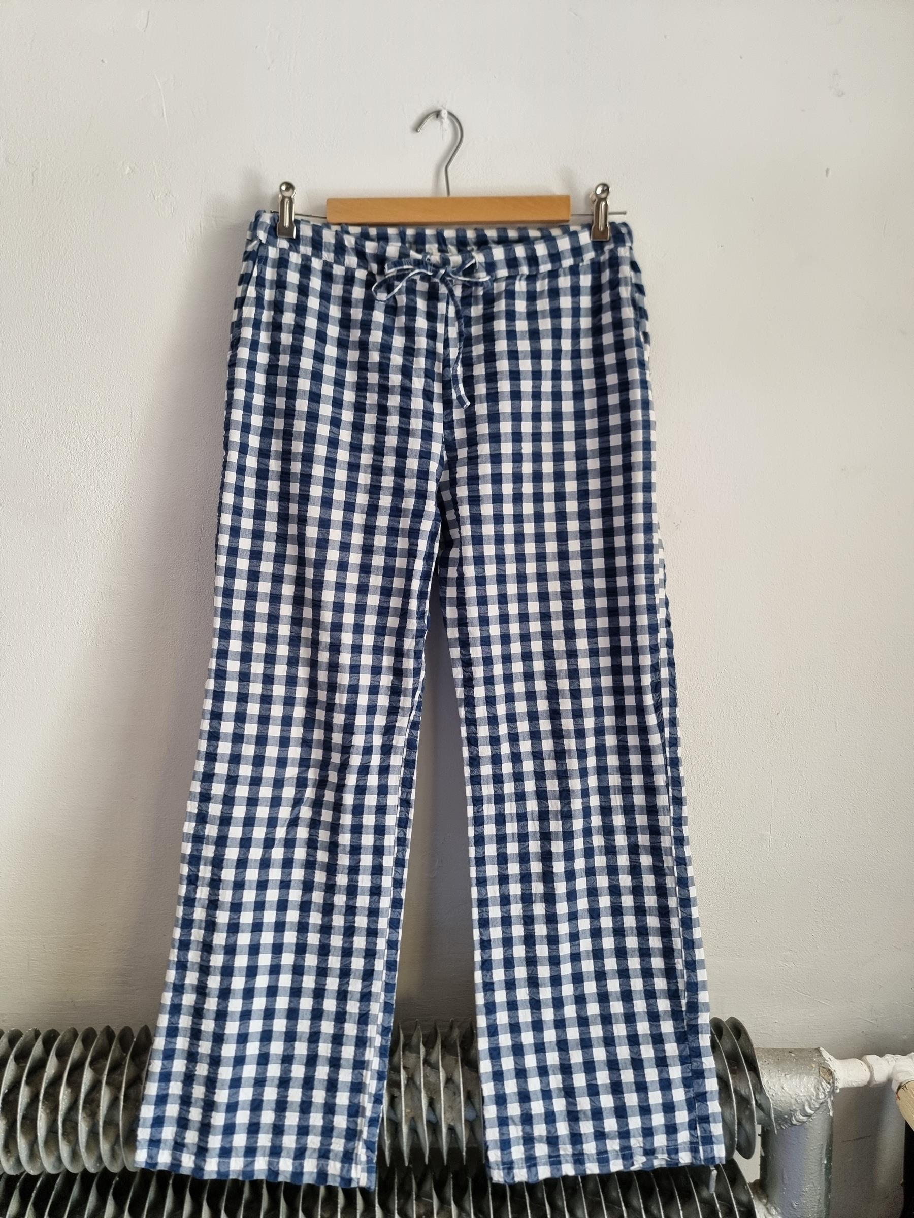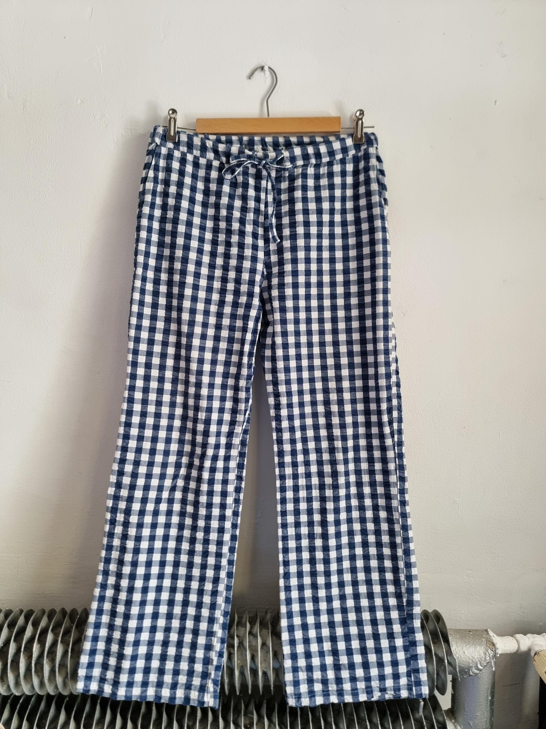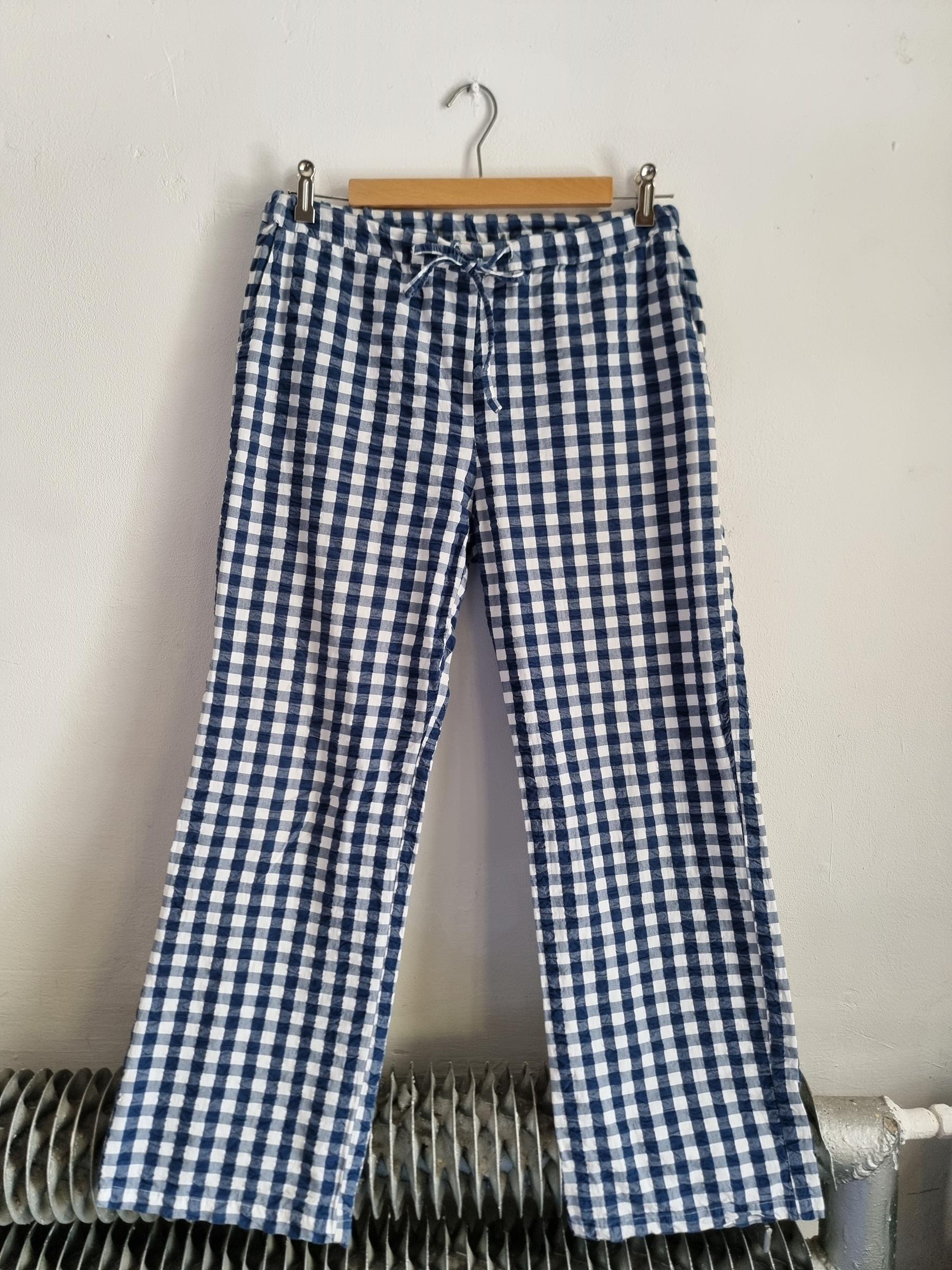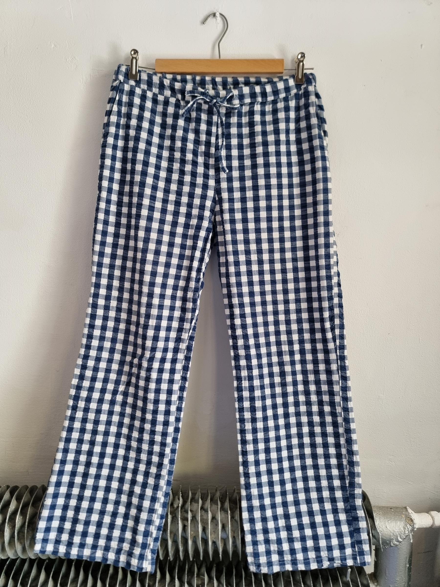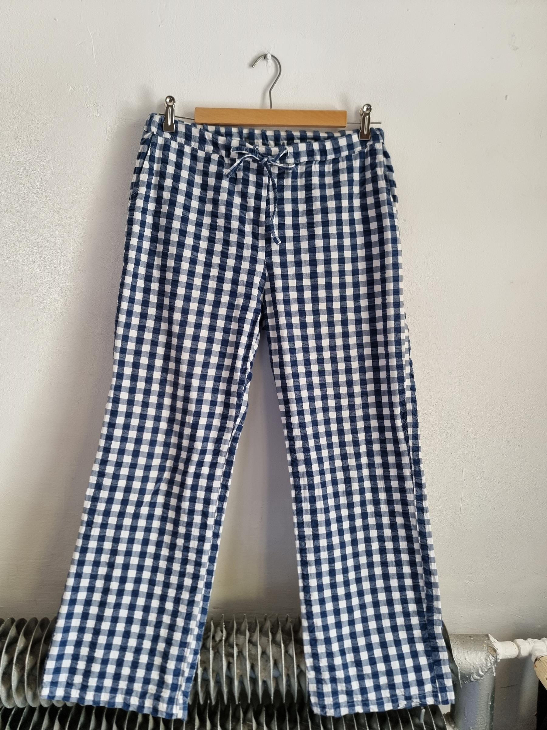 Spodnie wypoczynkowe Barbara w niebiesko-białą kratkę gingham mają przyjemnie luźny krój i wygodny fason, dzięki czemu stanowią uniwersalny dodatek do garderoby.