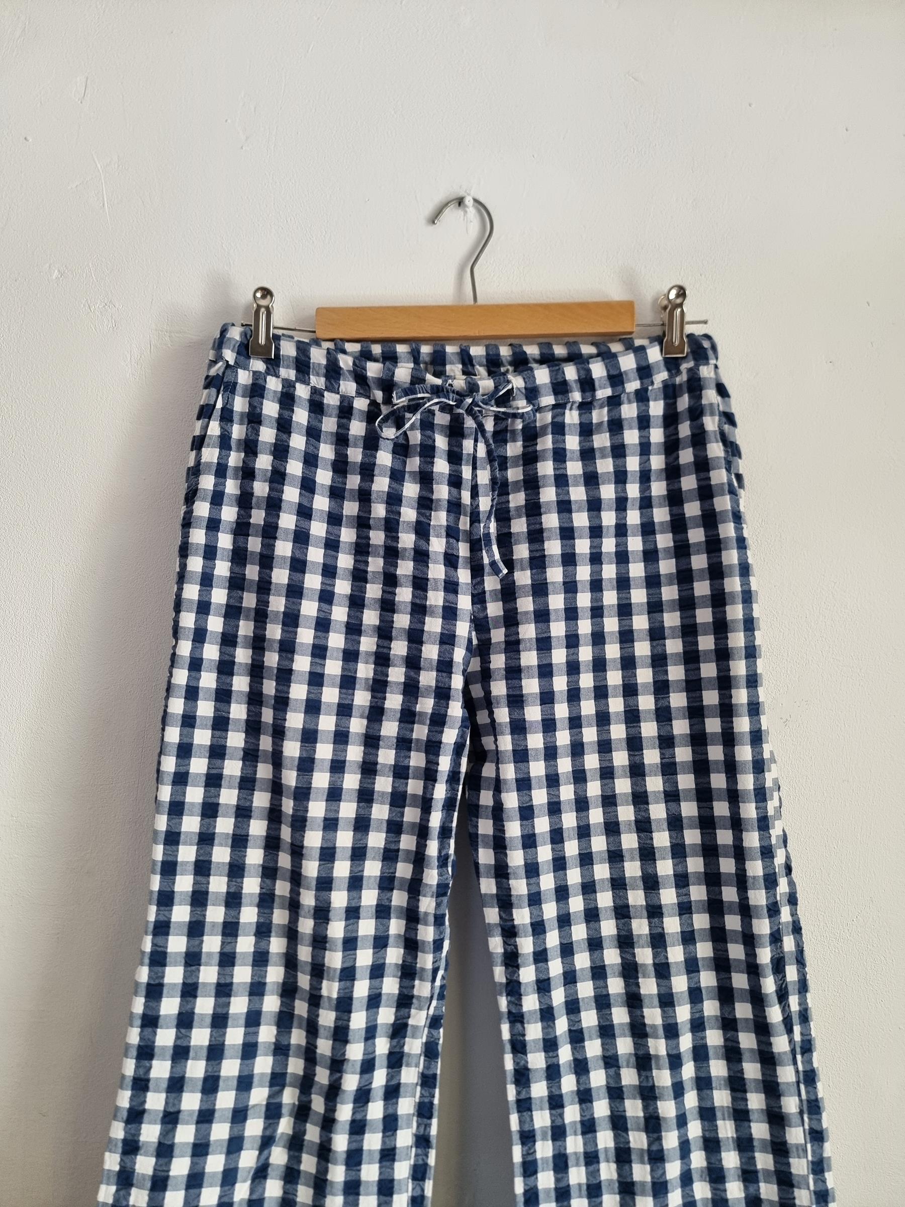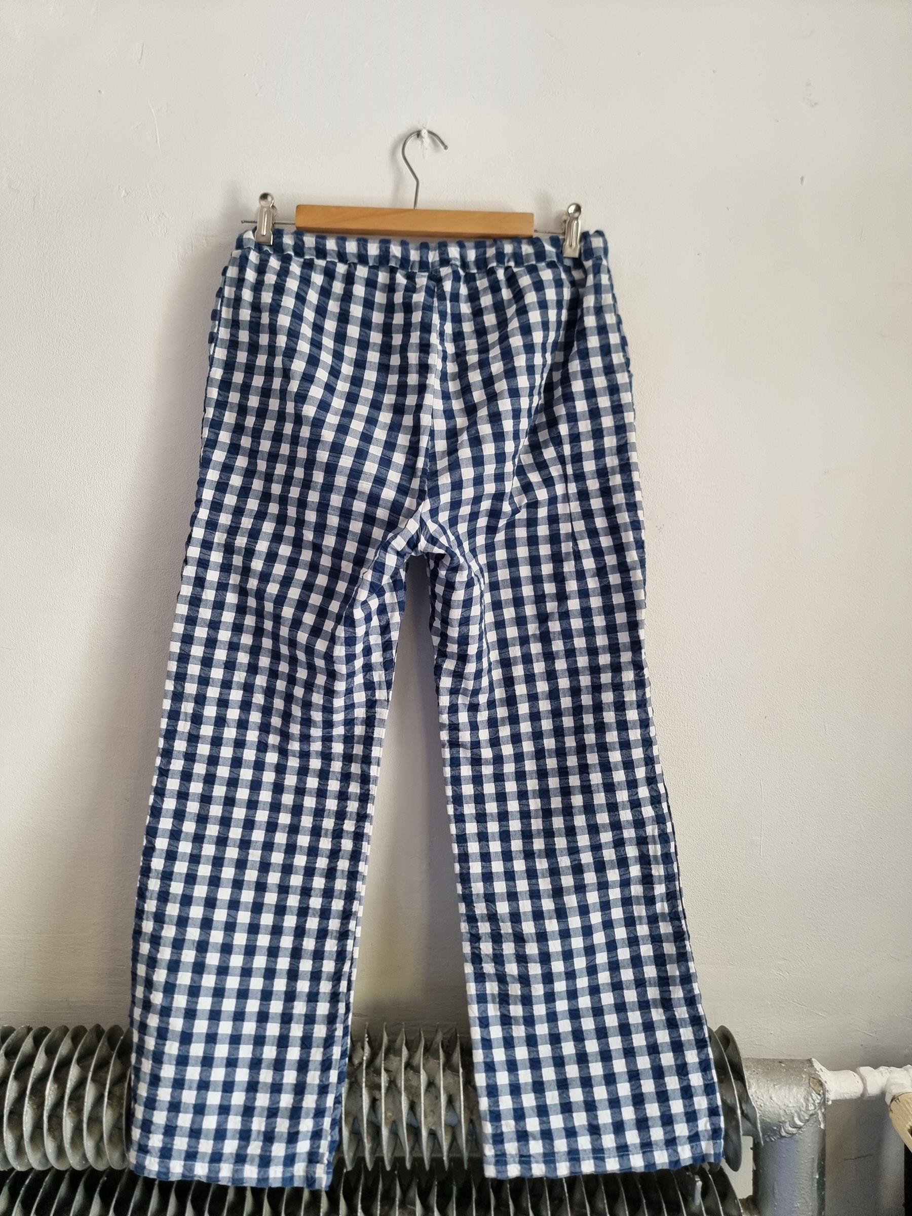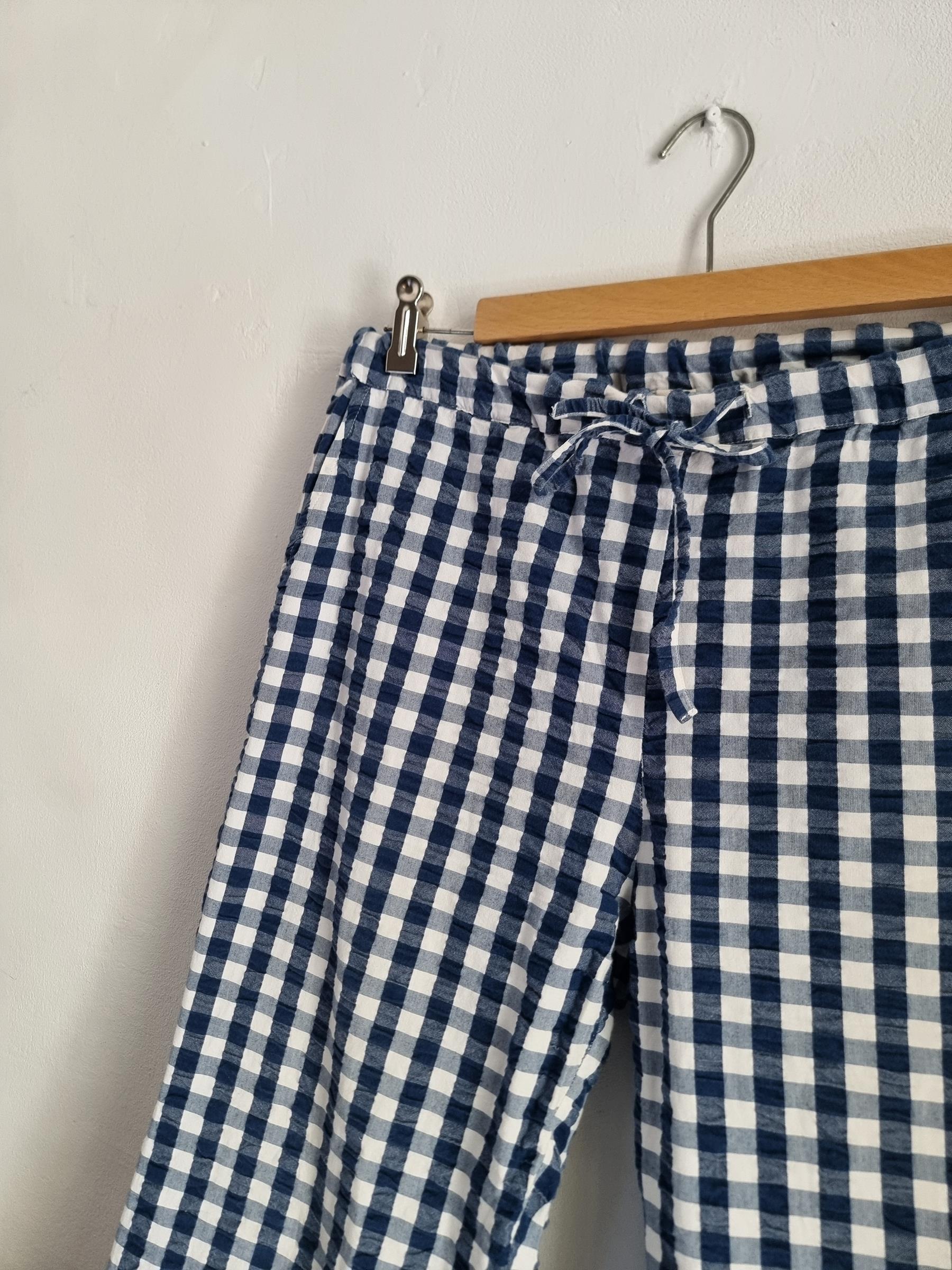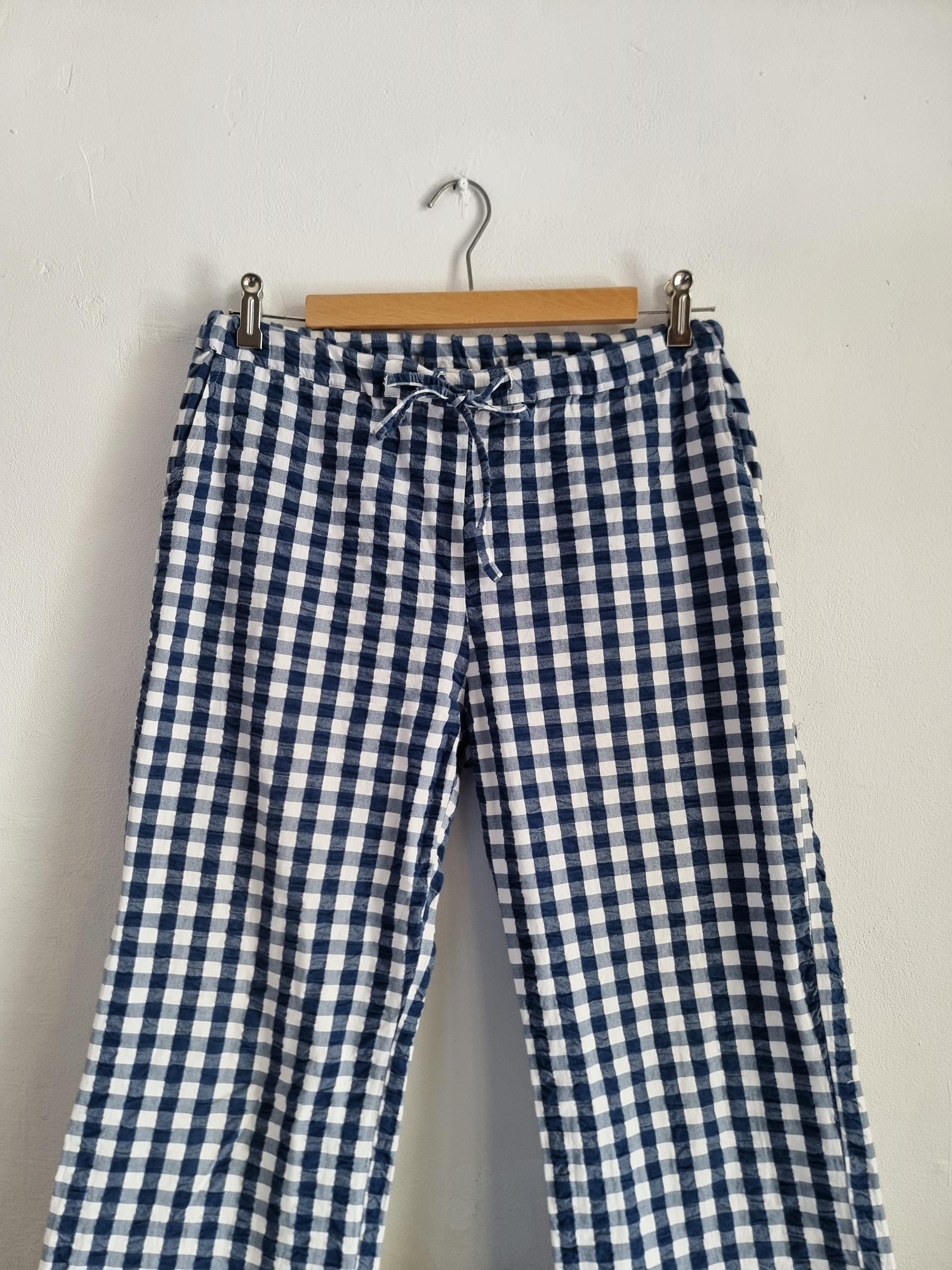 Spodnie wypoczynkowe Barbara w niebiesko-białą kratkę gingham mają przyjemnie luźny krój i wygodny fason, dzięki czemu stanowią uniwersalny dodatek do garderoby.