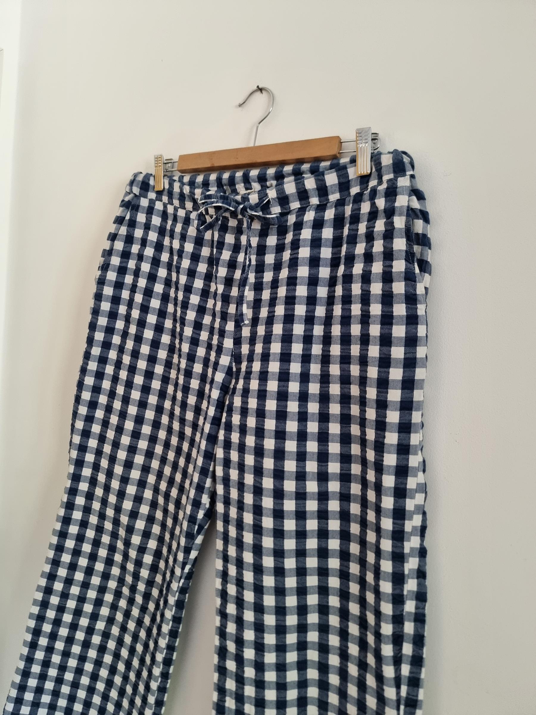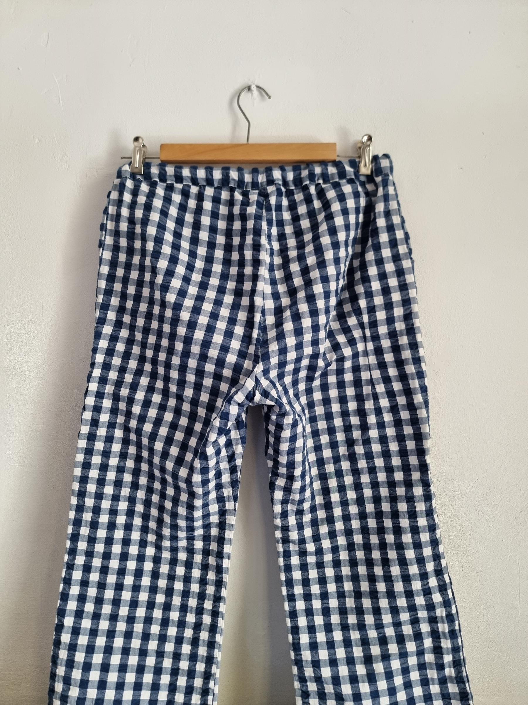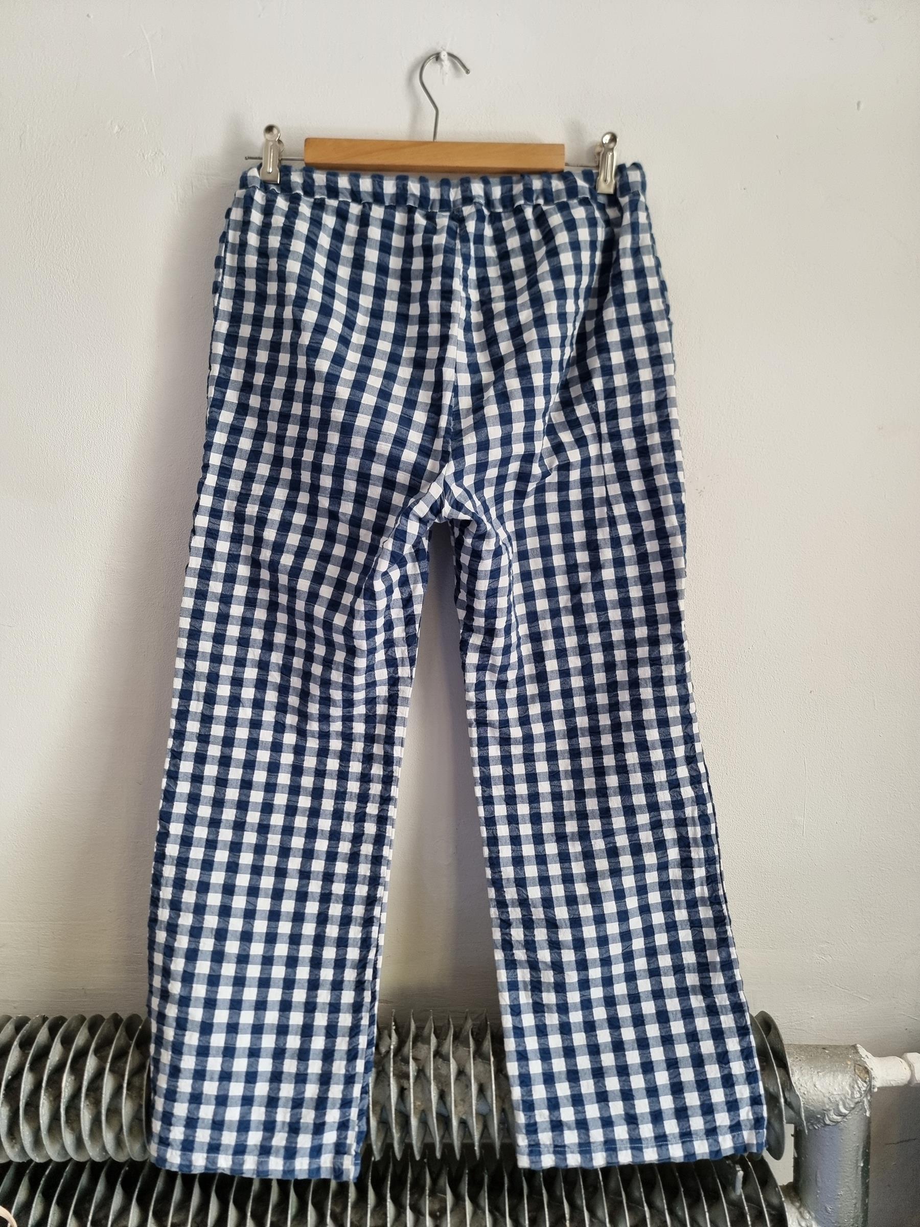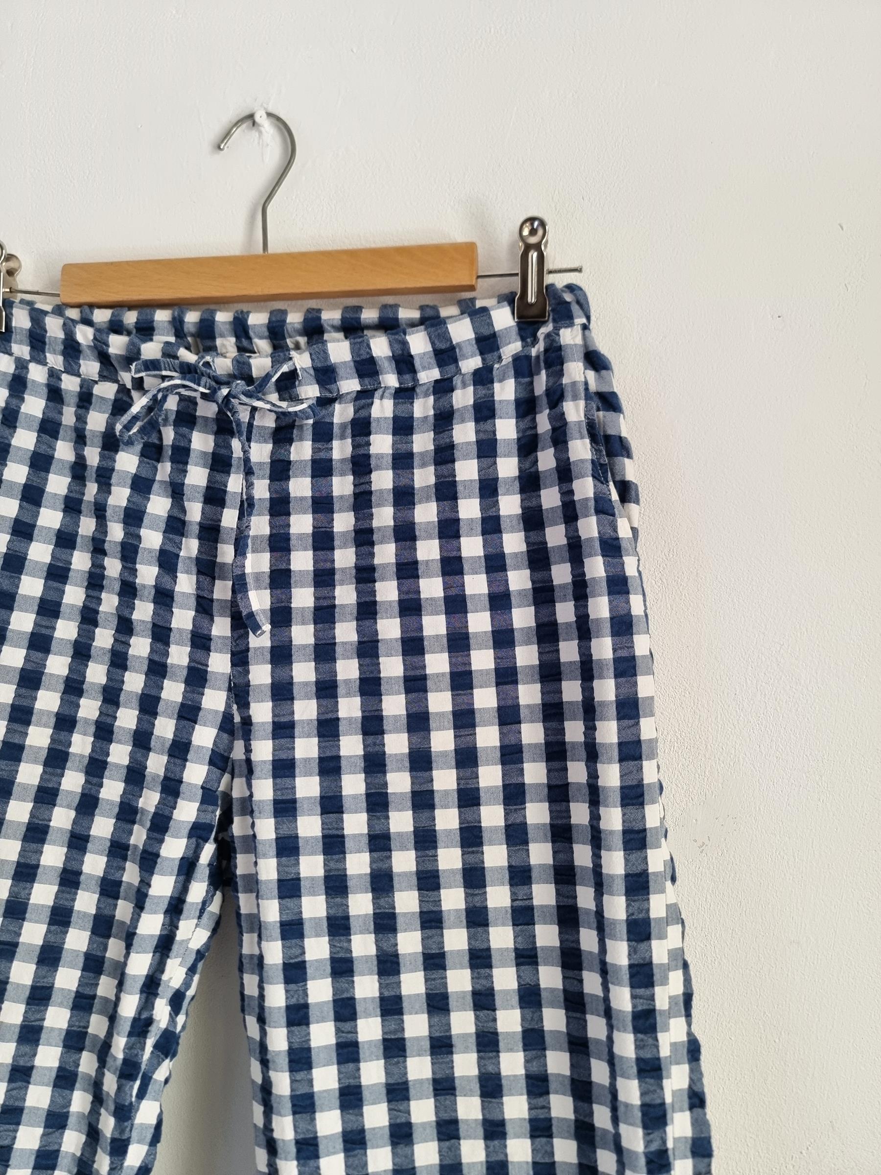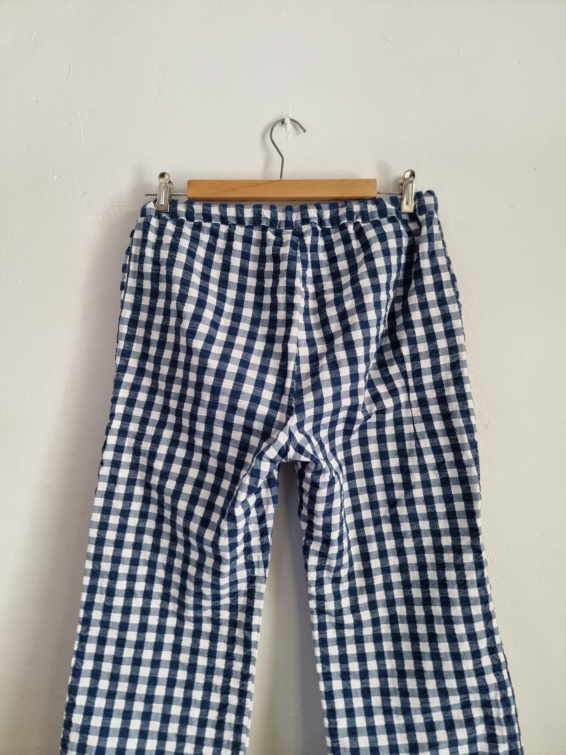 Spodnie wypoczynkowe Barbara w niebiesko-białą kratkę gingham mają przyjemnie luźny krój i wygodny fason, dzięki czemu stanowią uniwersalny dodatek do garderoby.