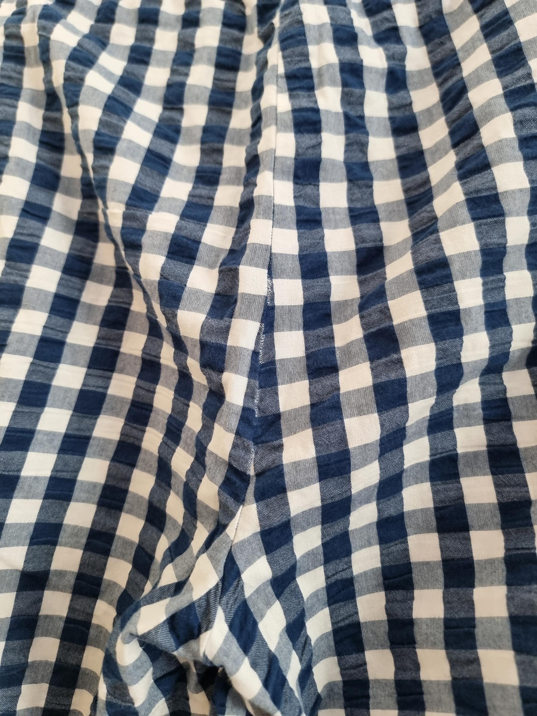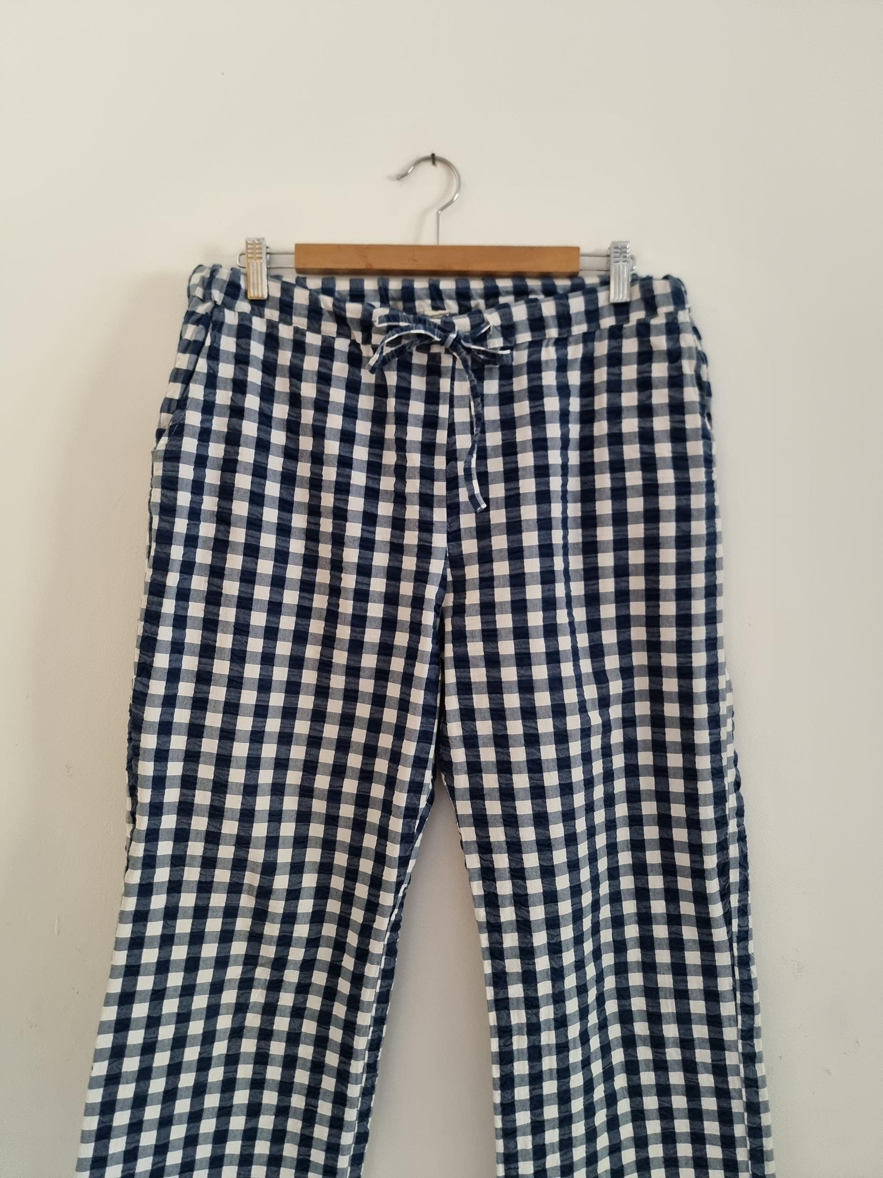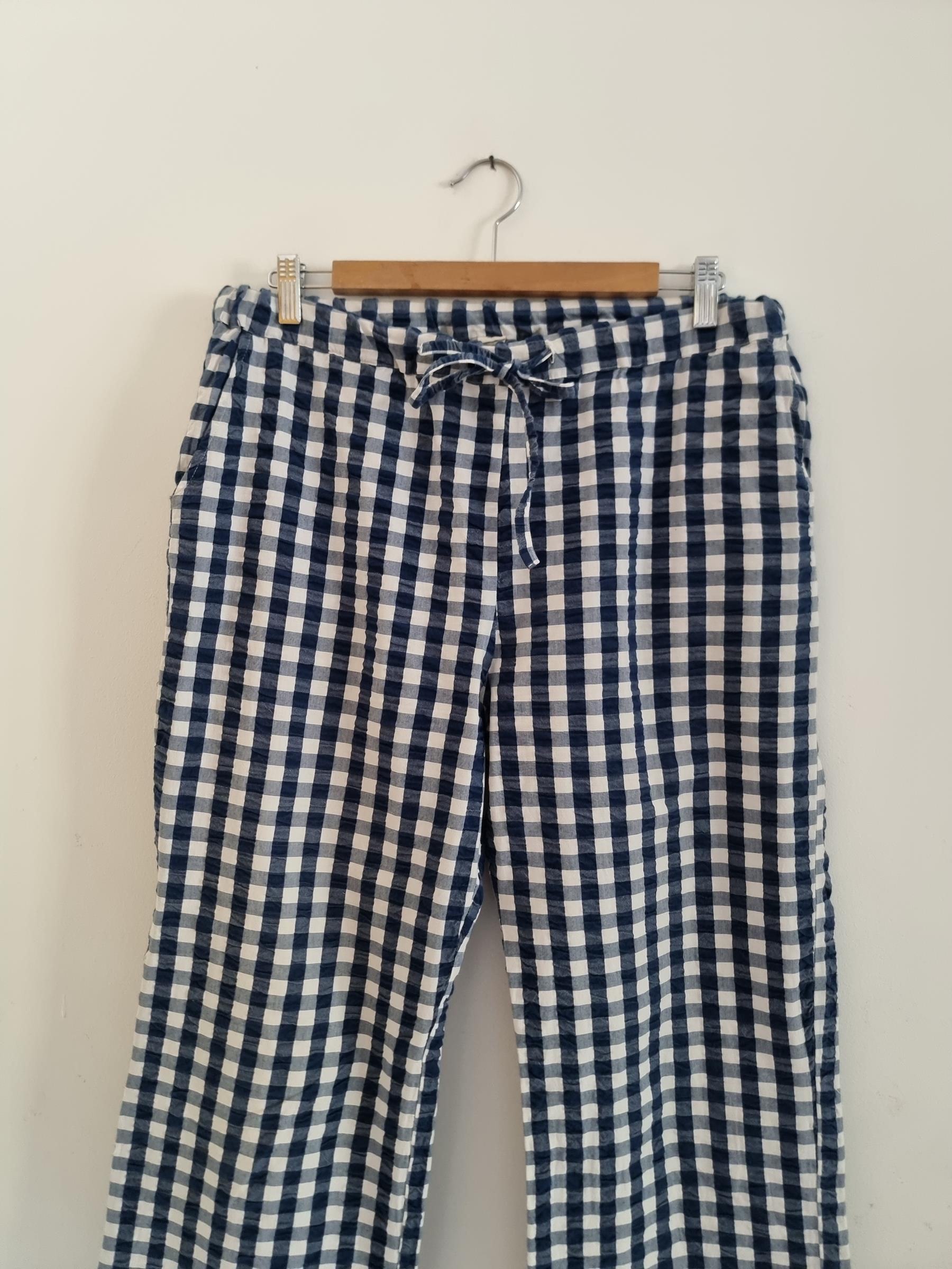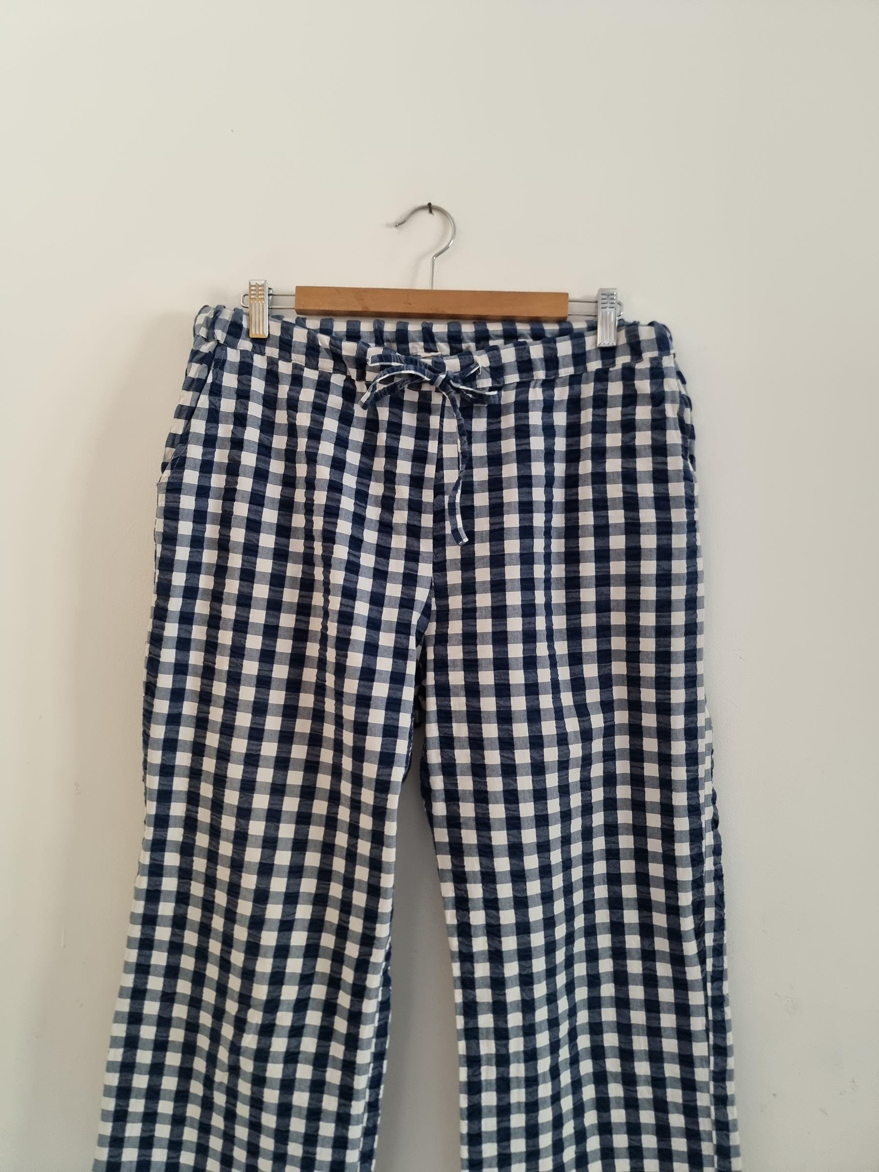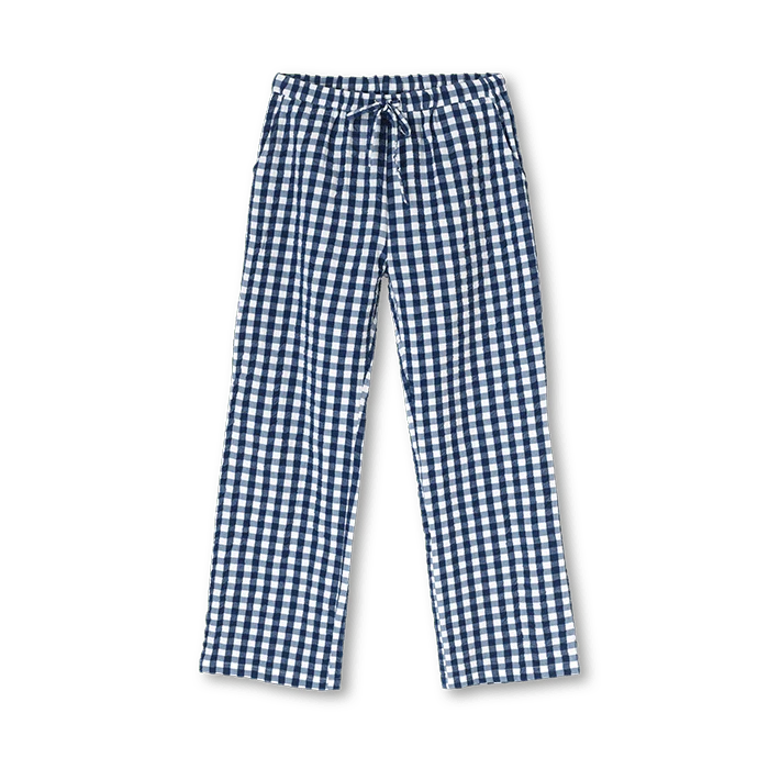 Spodnie wypoczynkowe Barbara w niebiesko-białą kratkę gingham mają przyjemnie luźny krój i wygodny fason, dzięki czemu stanowią uniwersalny dodatek do garderoby.