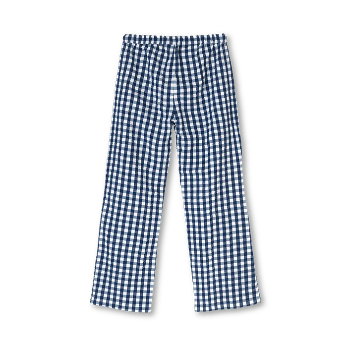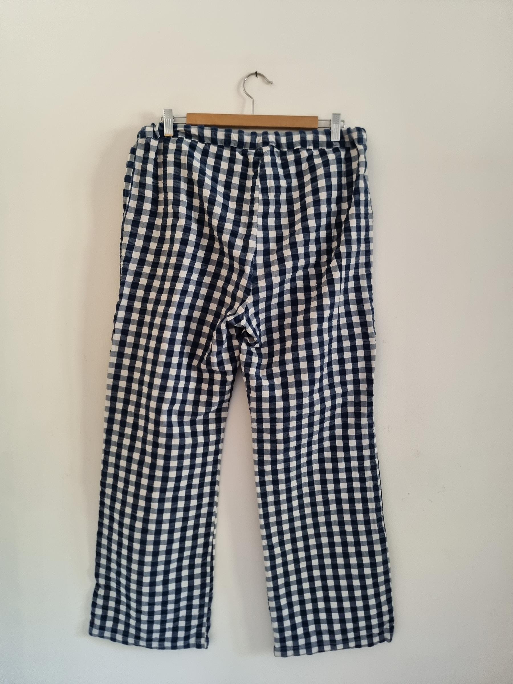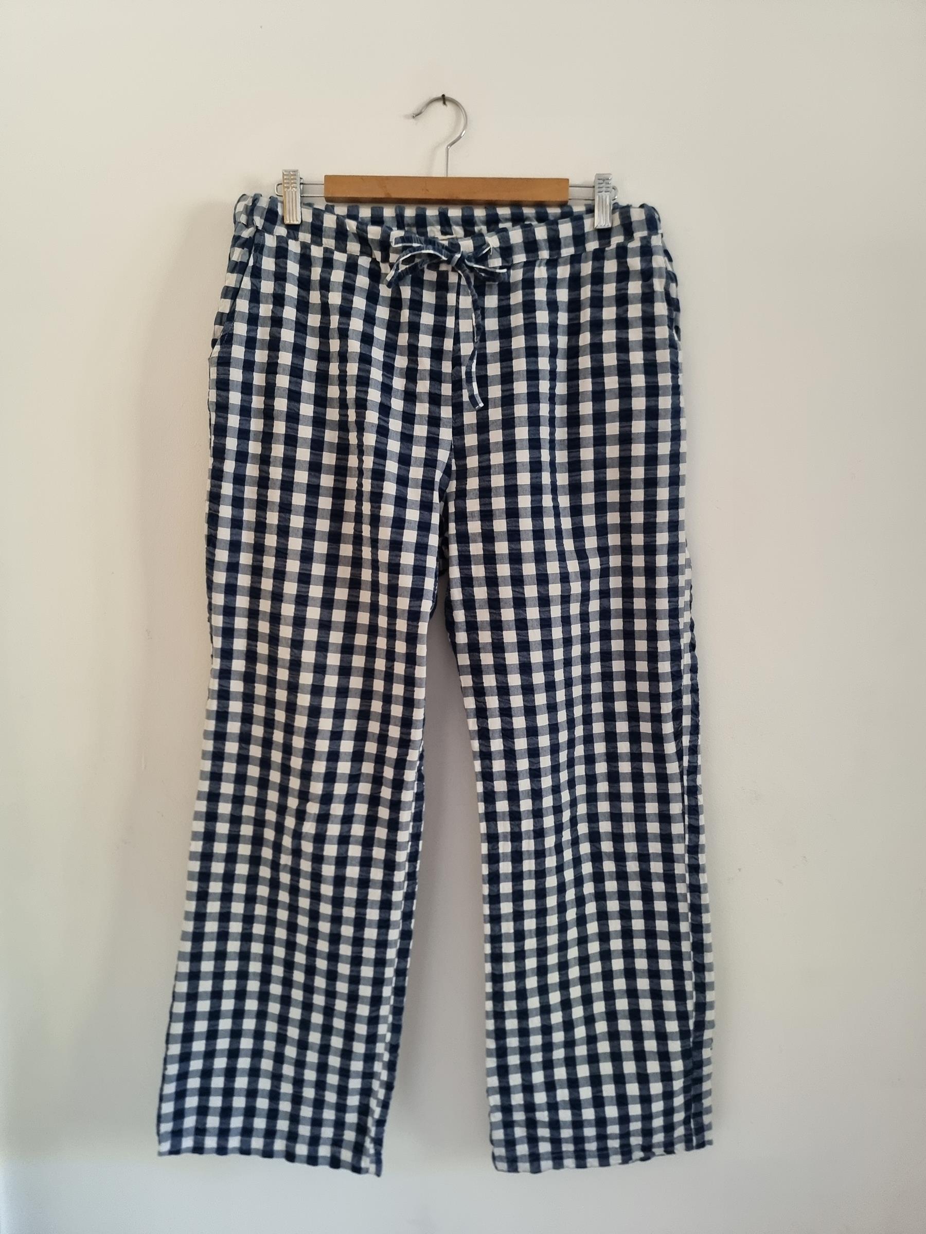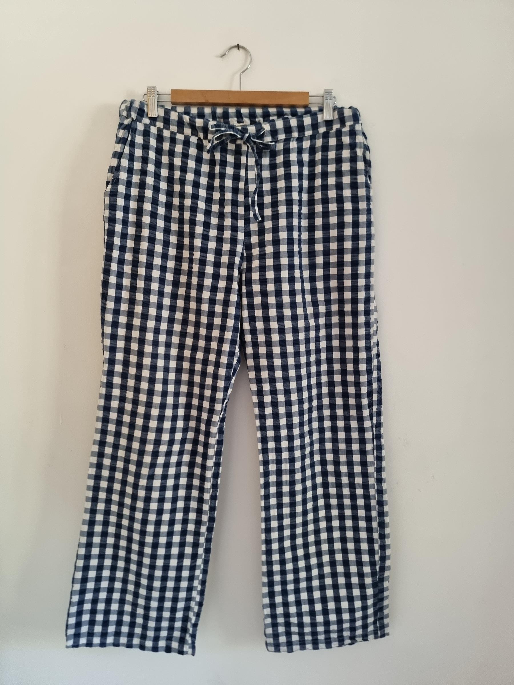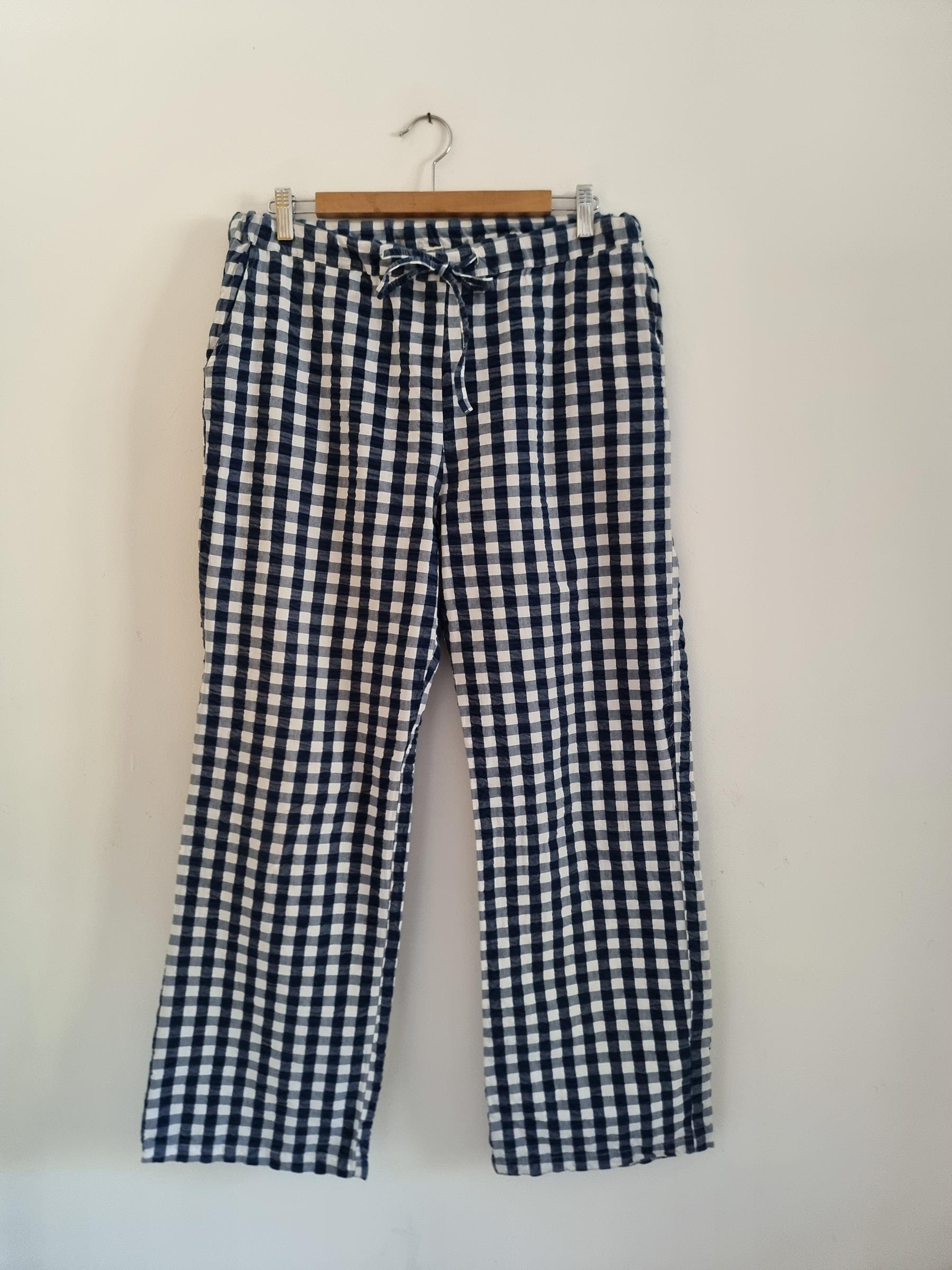 Spodnie wypoczynkowe Barbara w niebiesko-białą kratkę gingham mają przyjemnie luźny krój i wygodny fason, dzięki czemu stanowią uniwersalny dodatek do garderoby.