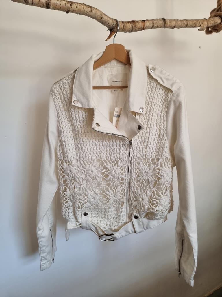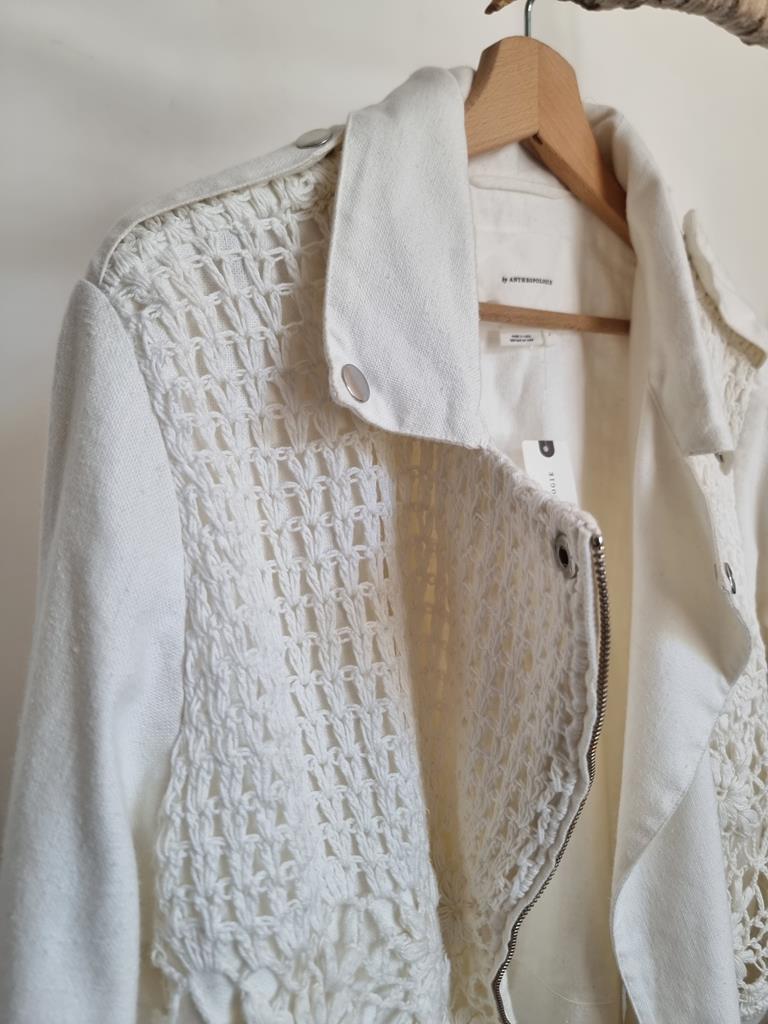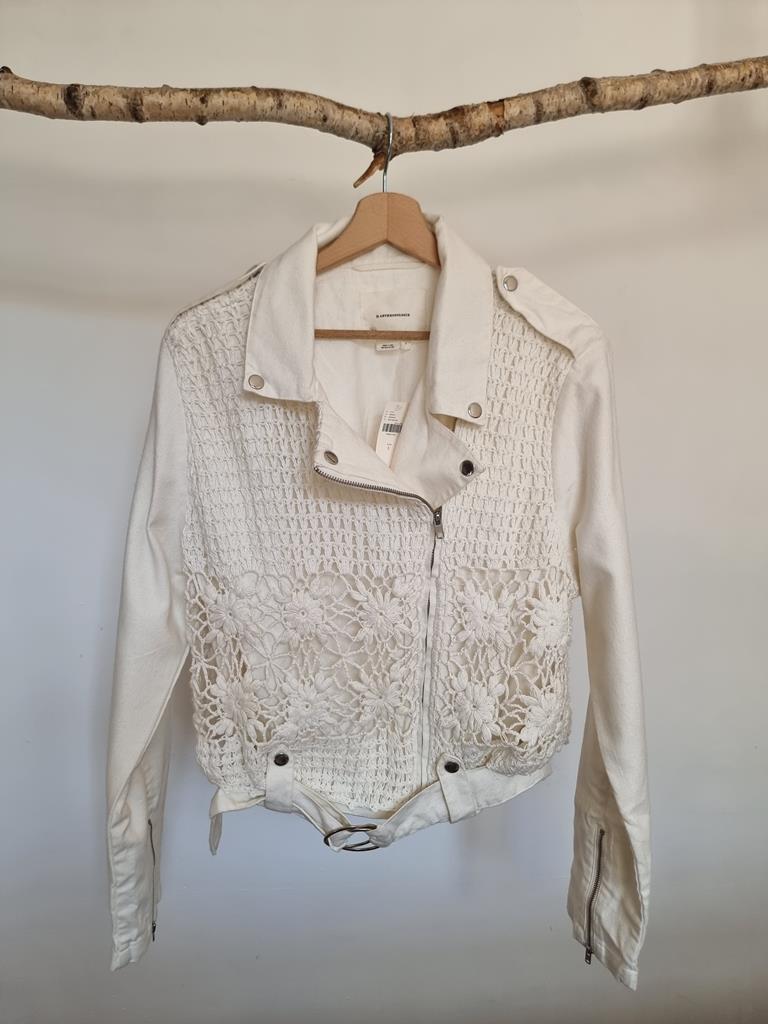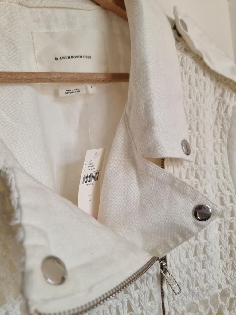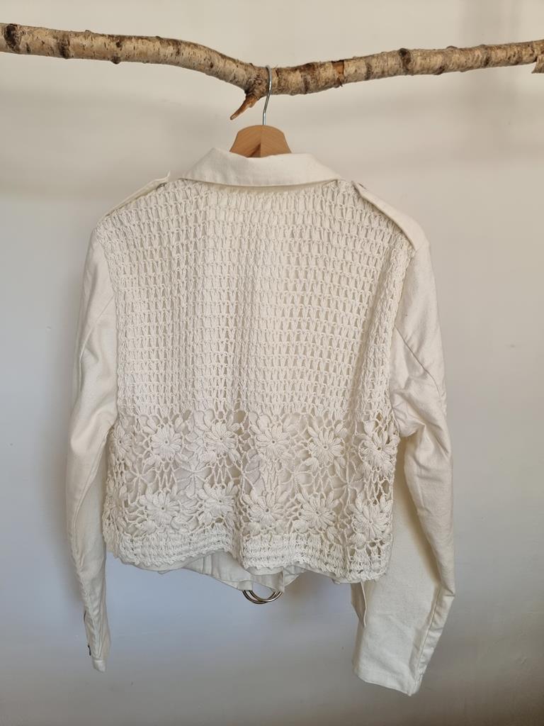 Kurtka ramoneska motocyklowa z płótna szydełkowego firmy Anthropologie boho L 40 biała