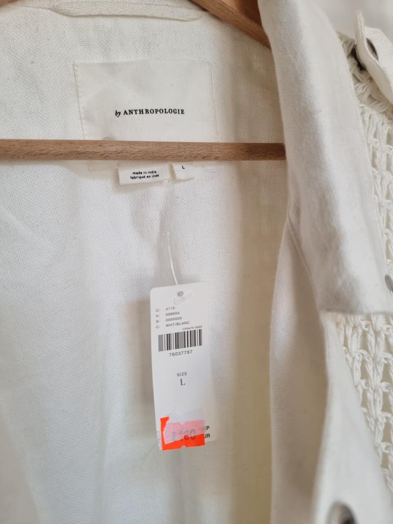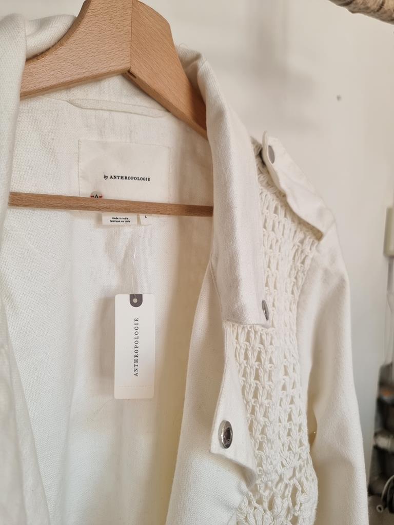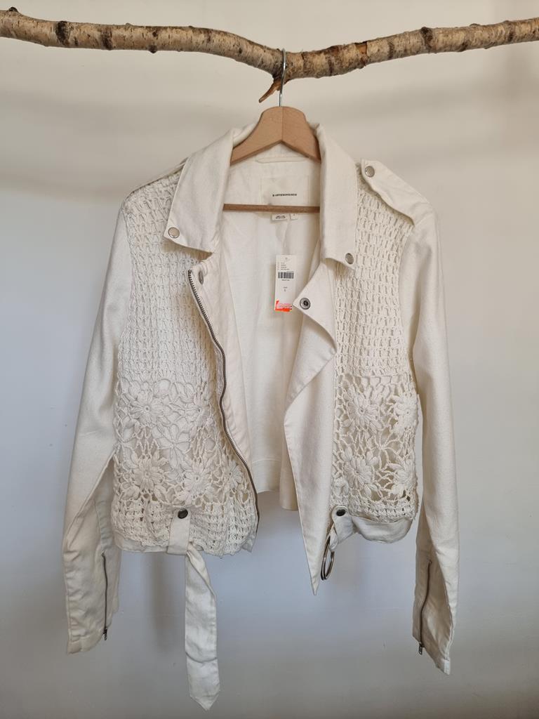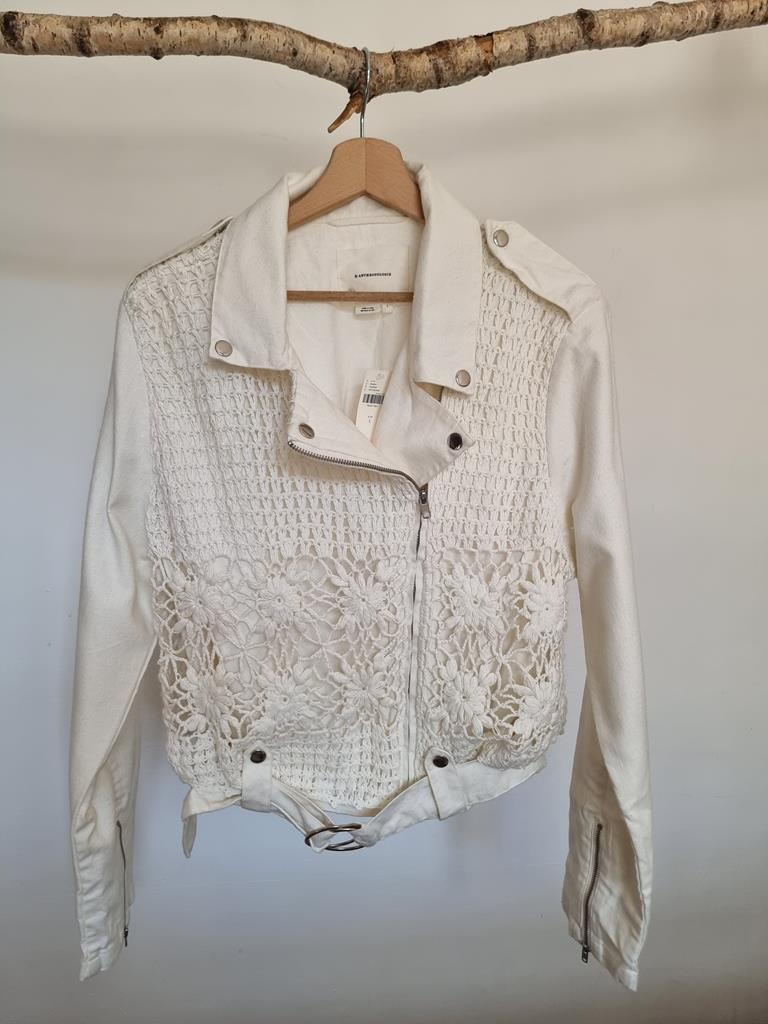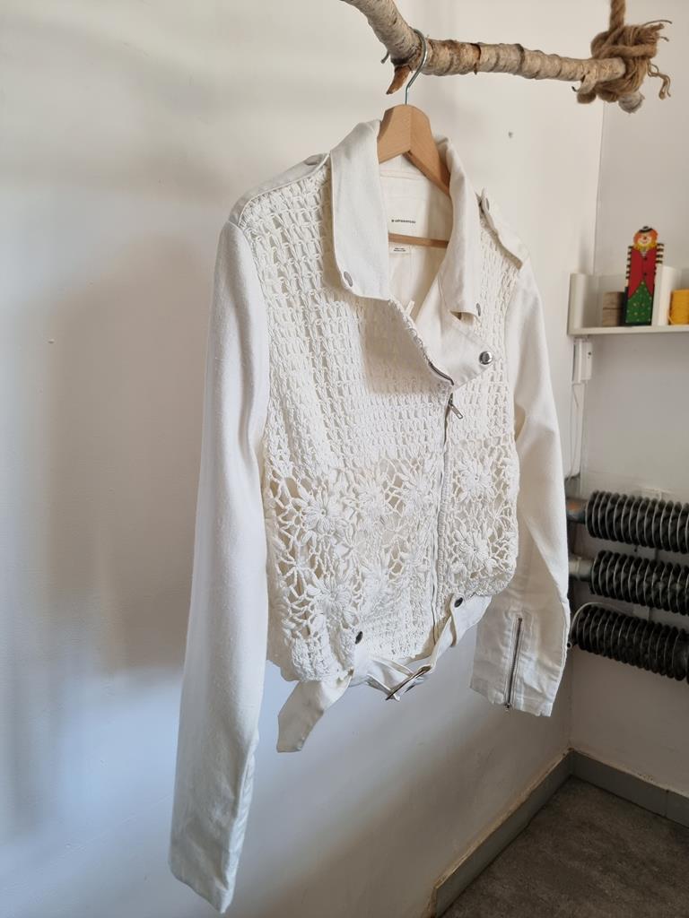 Kurtka ramoneska motocyklowa z płótna szydełkowego firmy Anthropologie boho L 40 biała