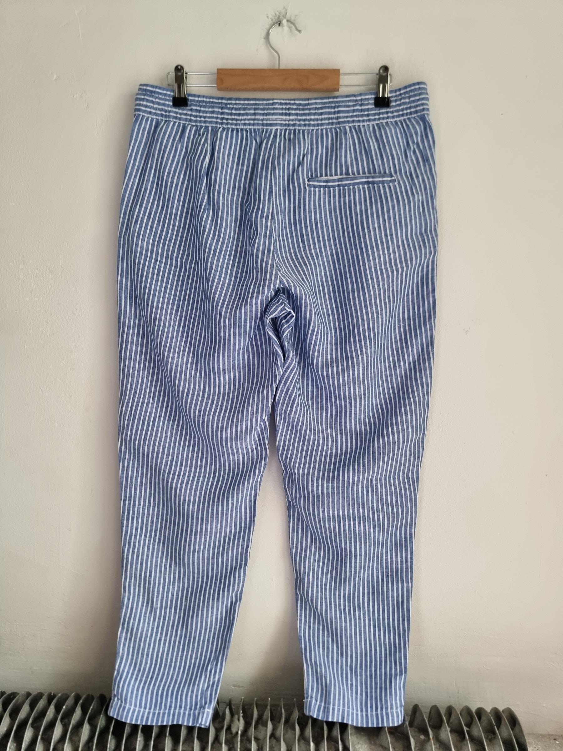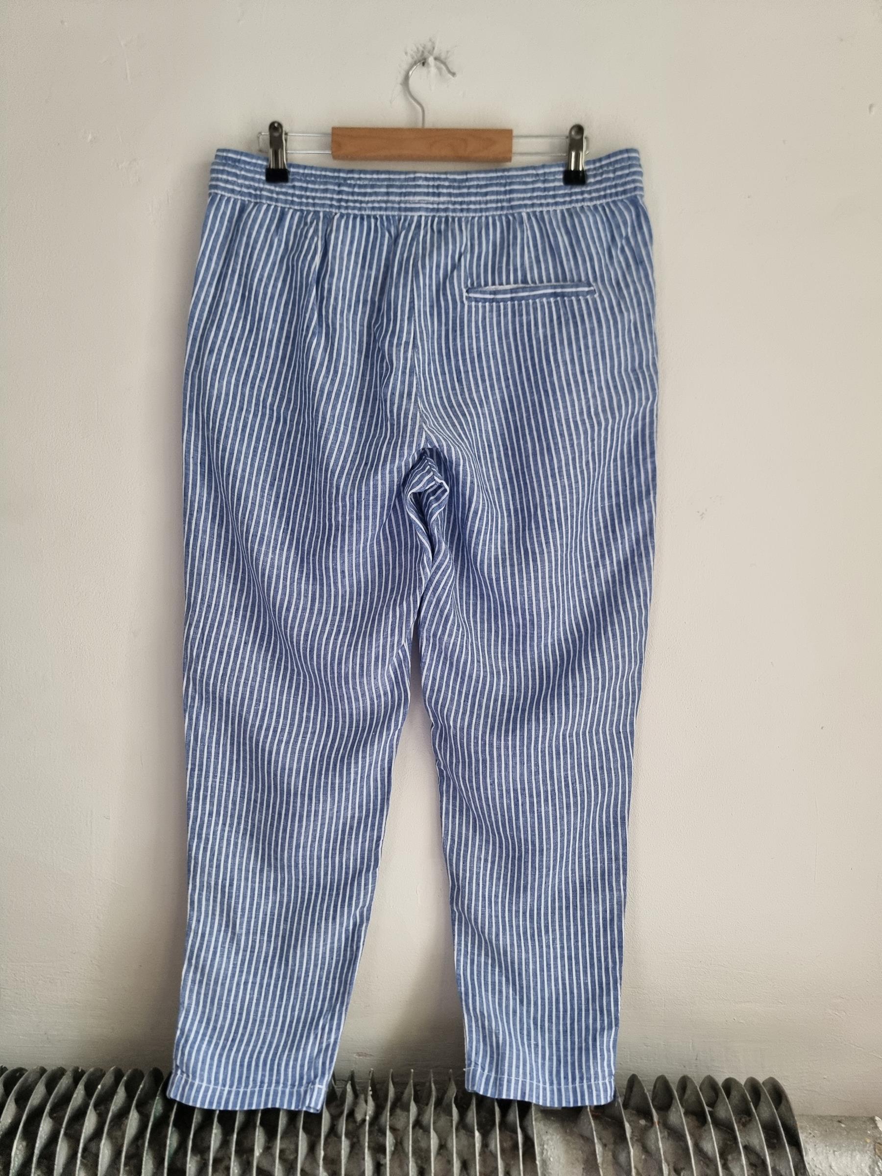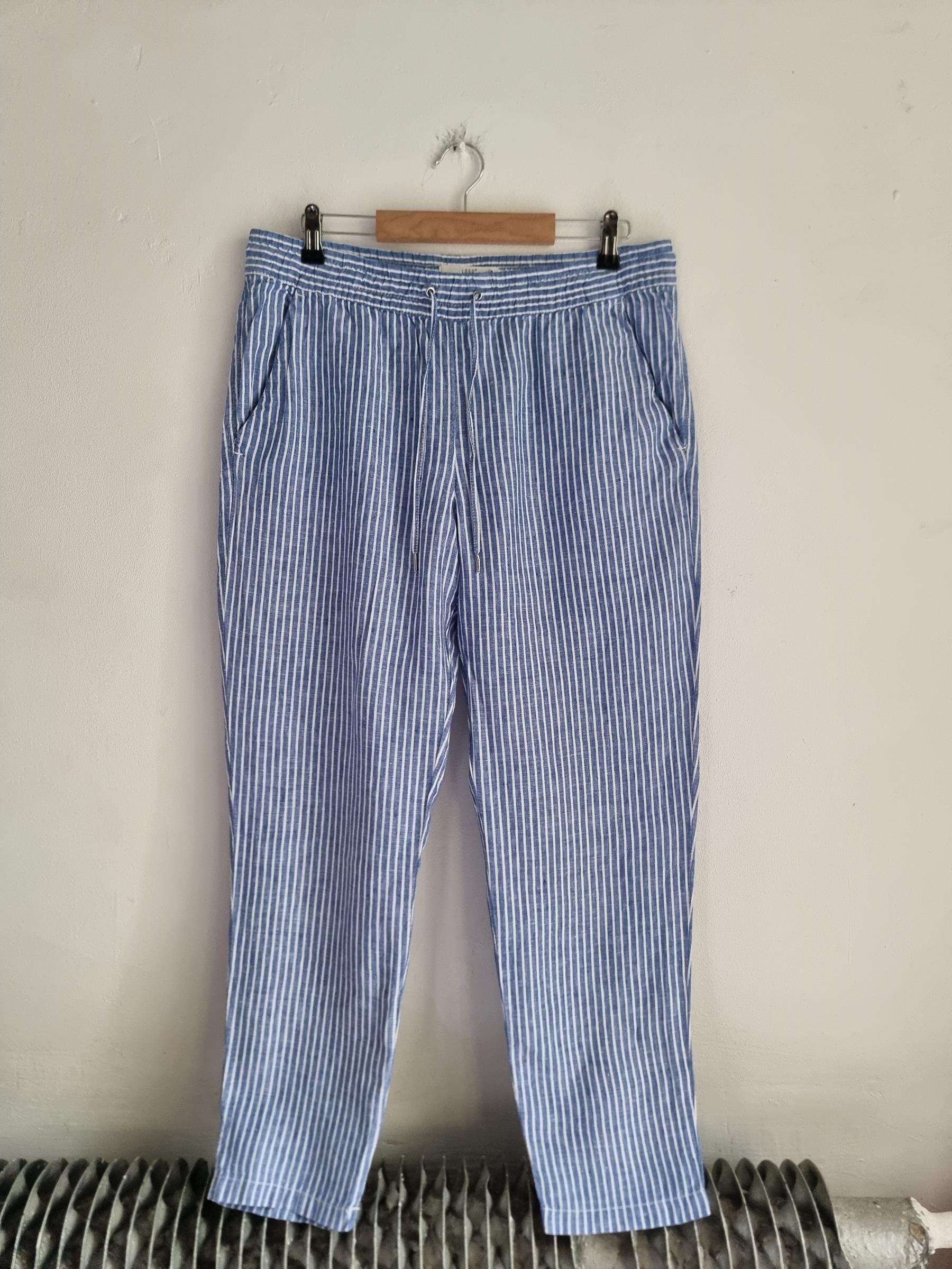 Lniane spodnie niebieskie w paski LOGG H&M L 40 len