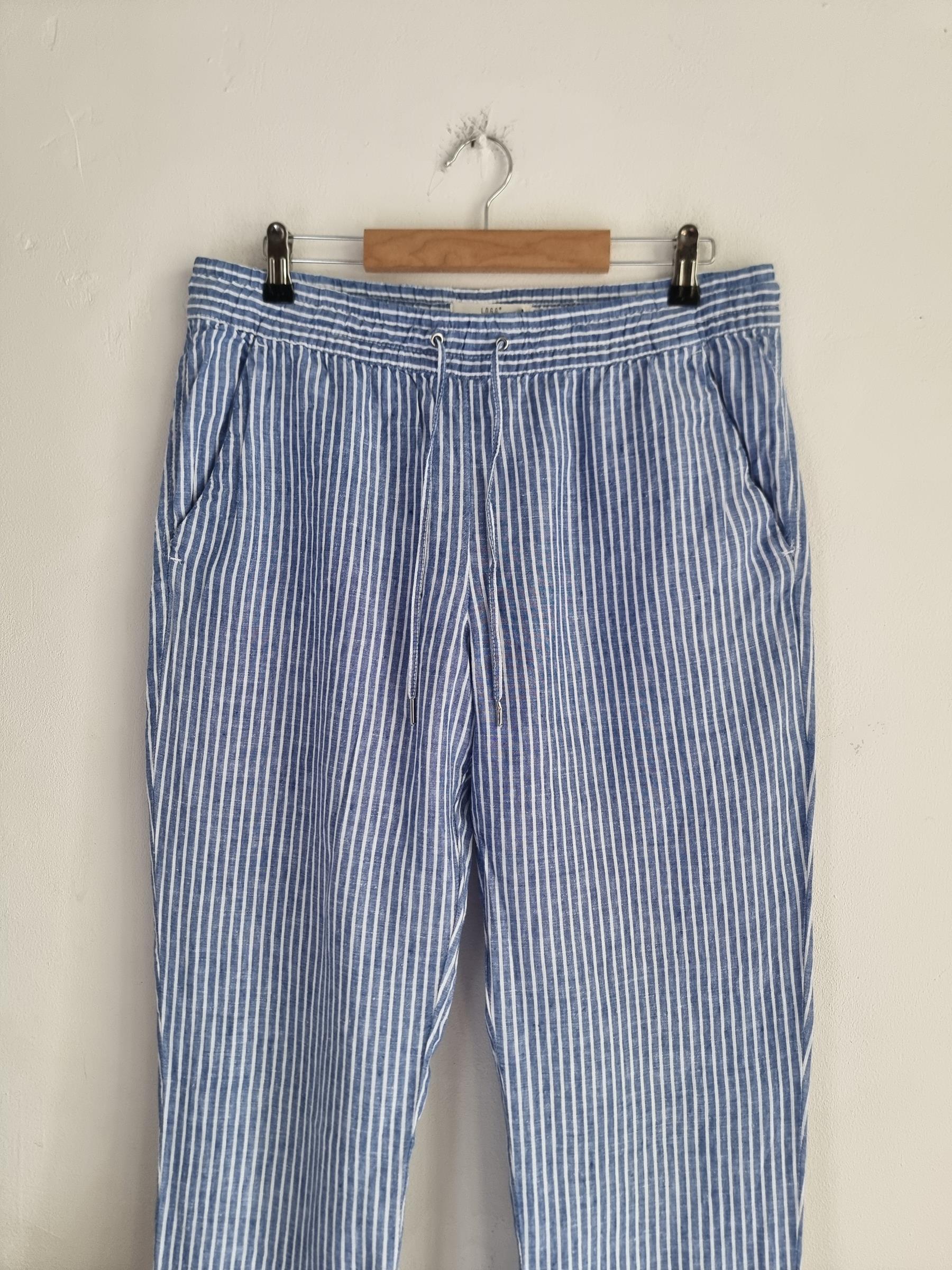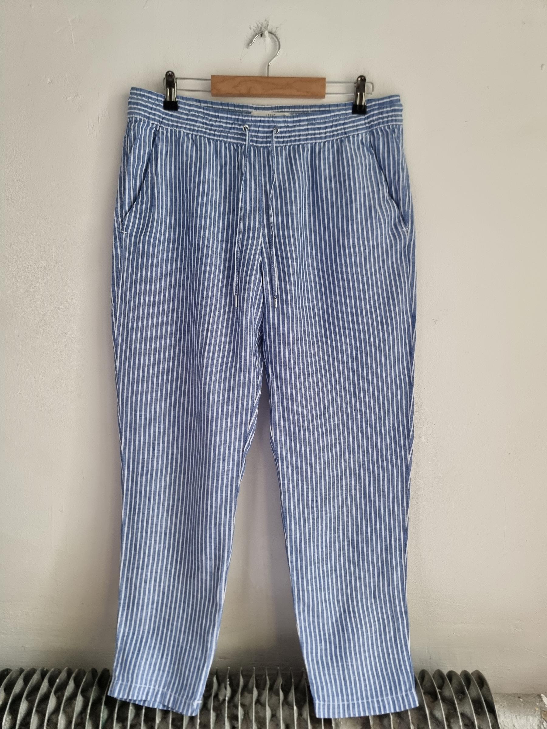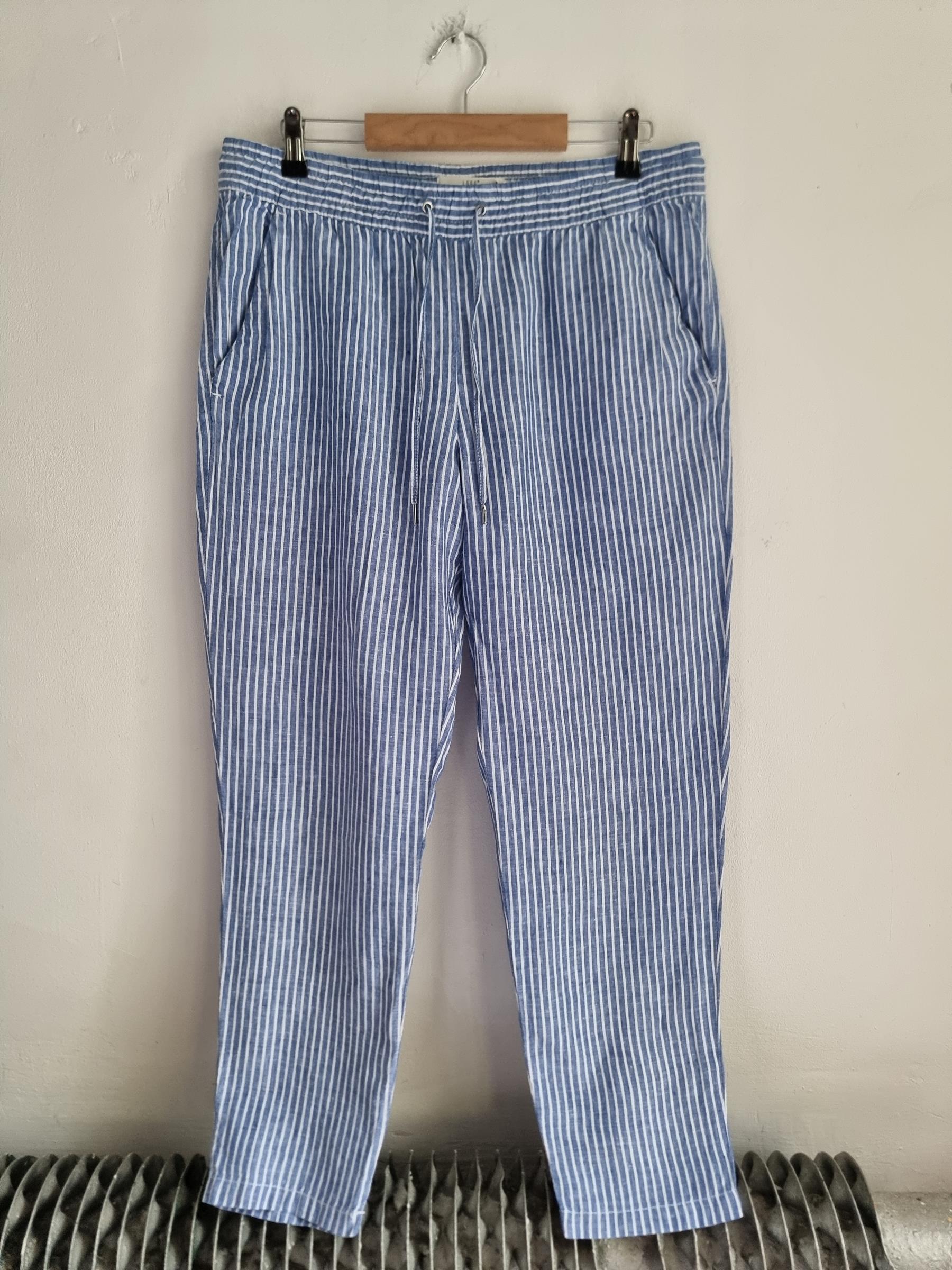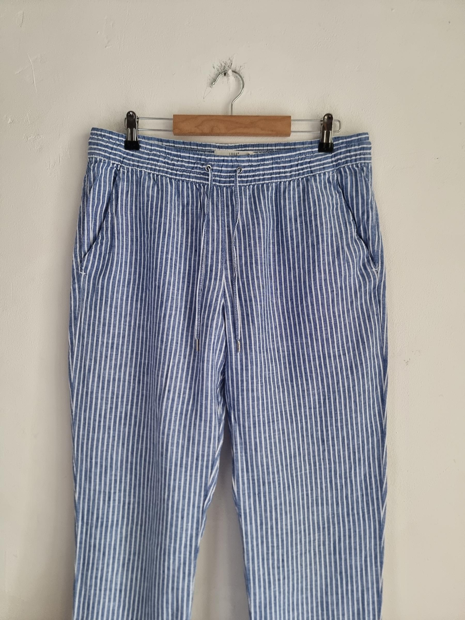 Lniane spodnie niebieskie w paski LOGG H&M L 40 len