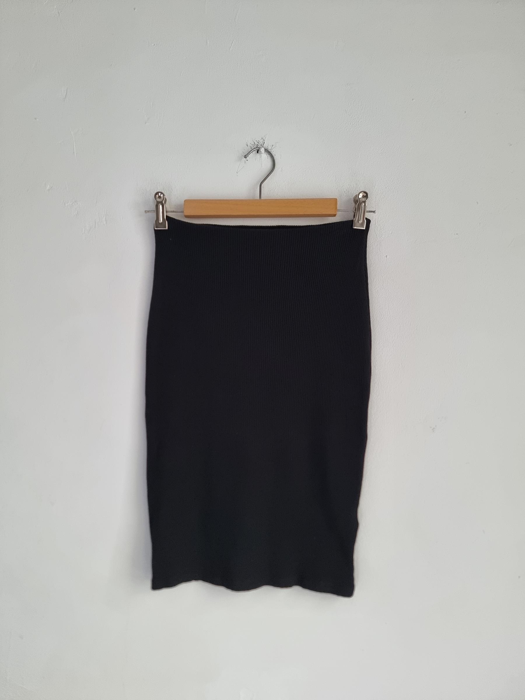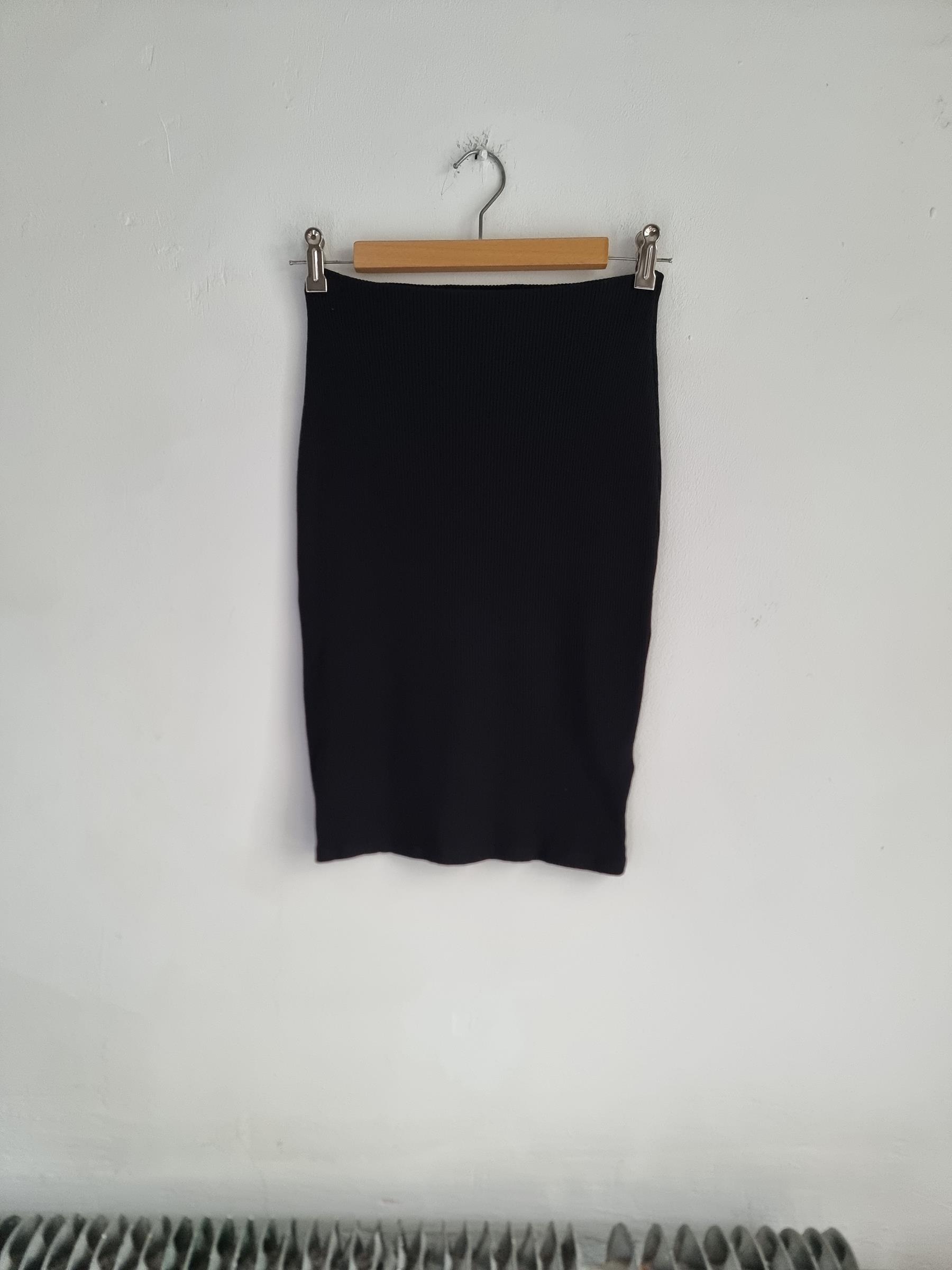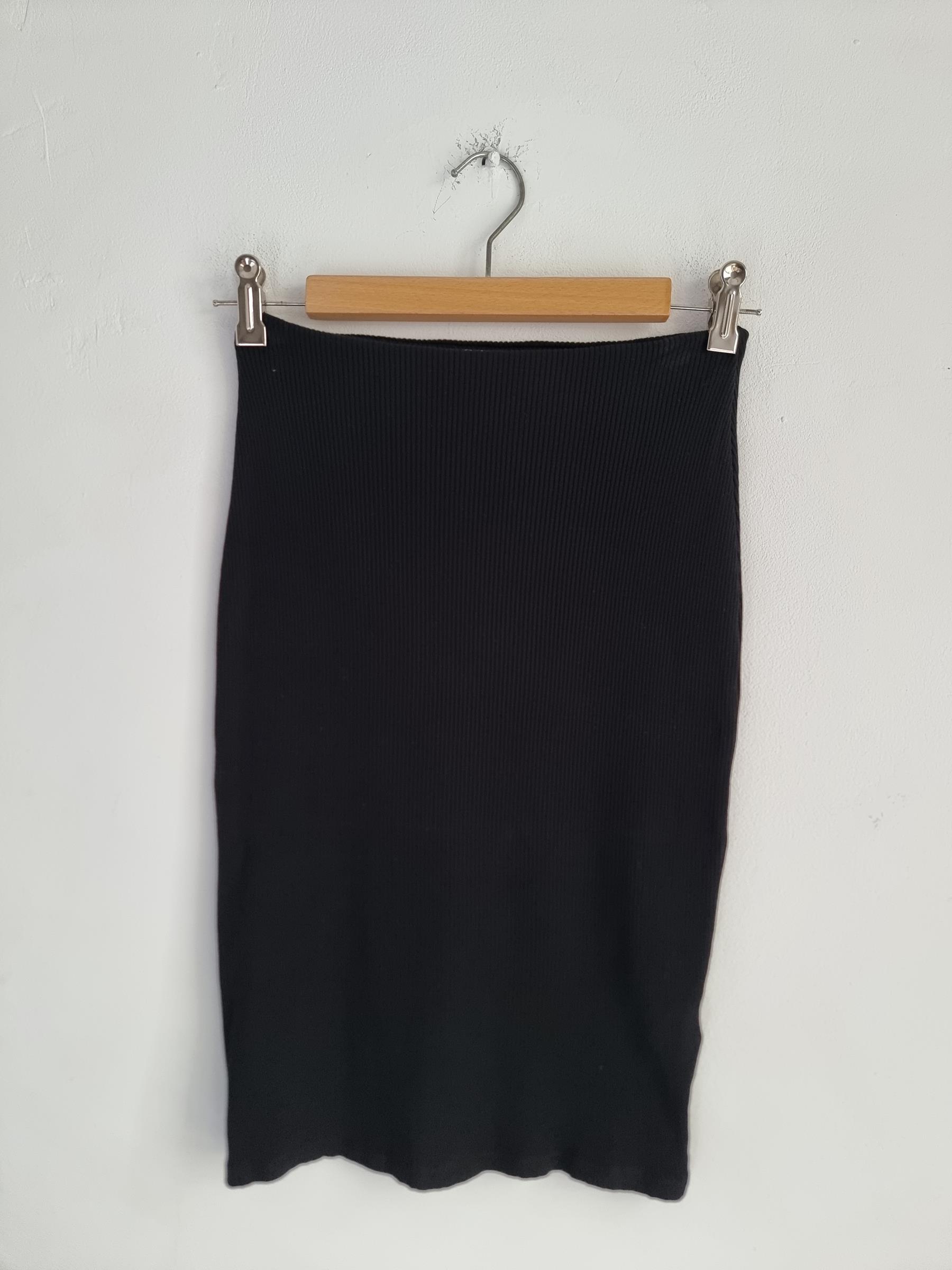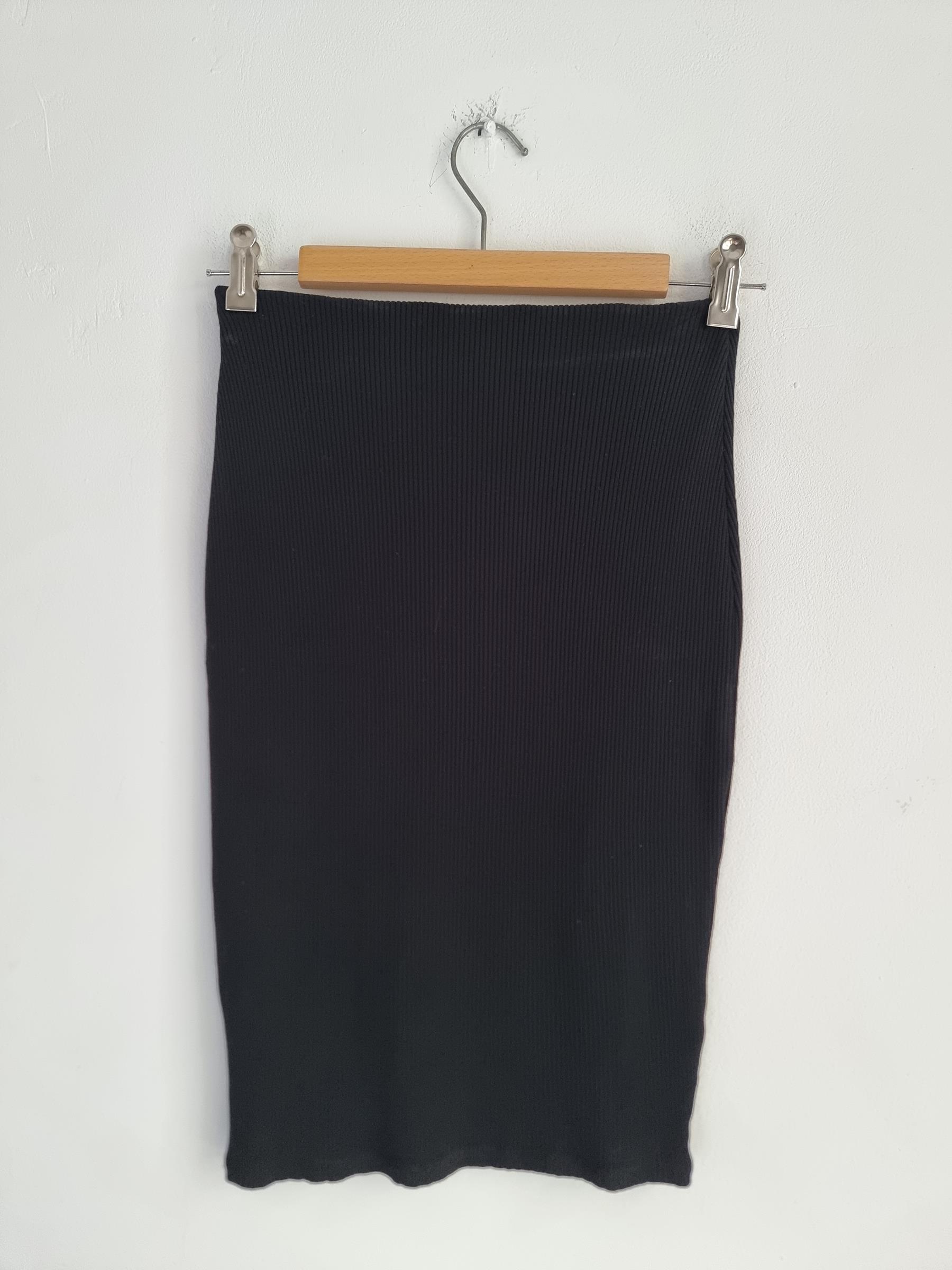 Czarna obcisła spódnica na gumce o prążkowanej strukturze. Kolor czarny.