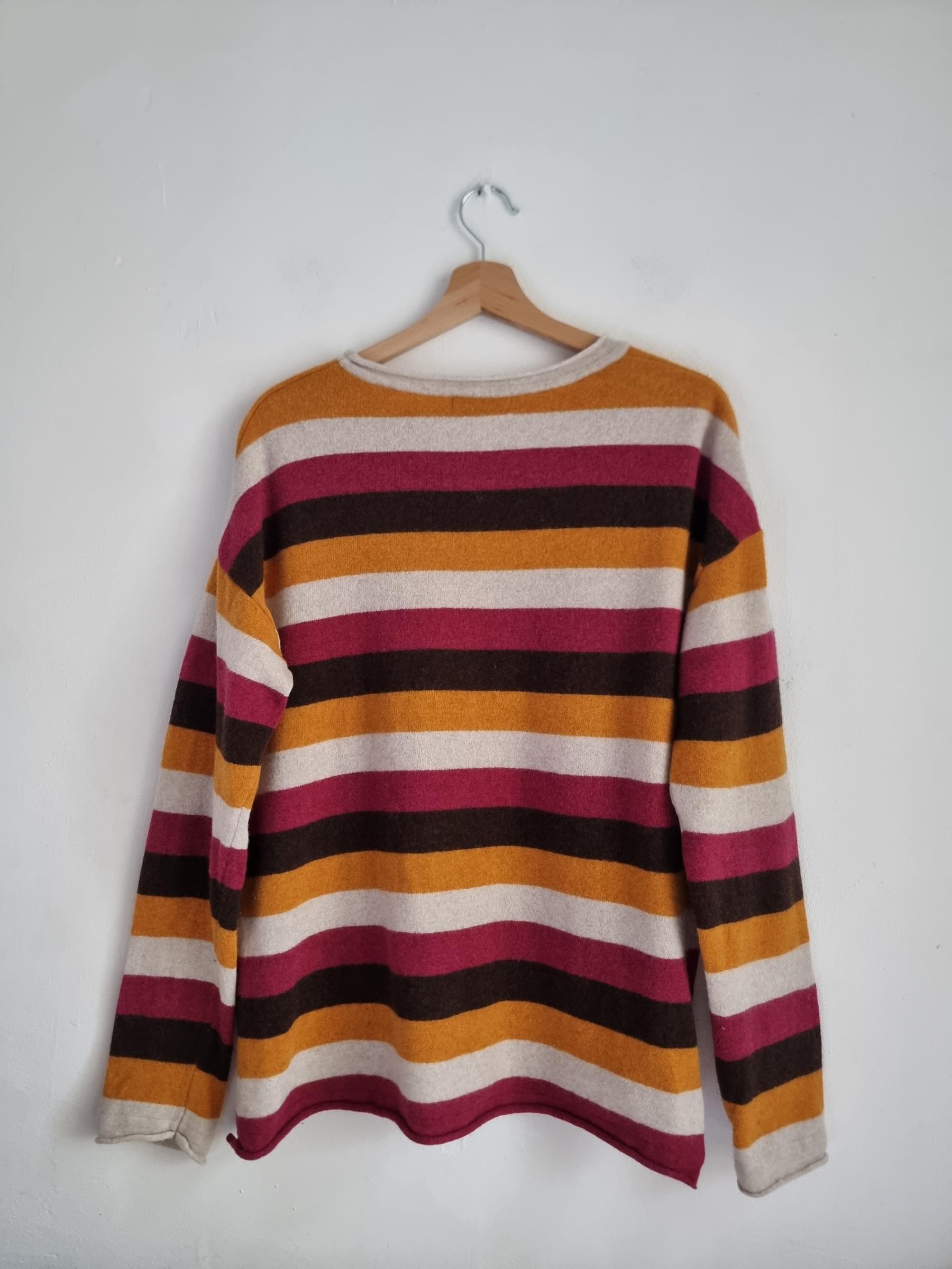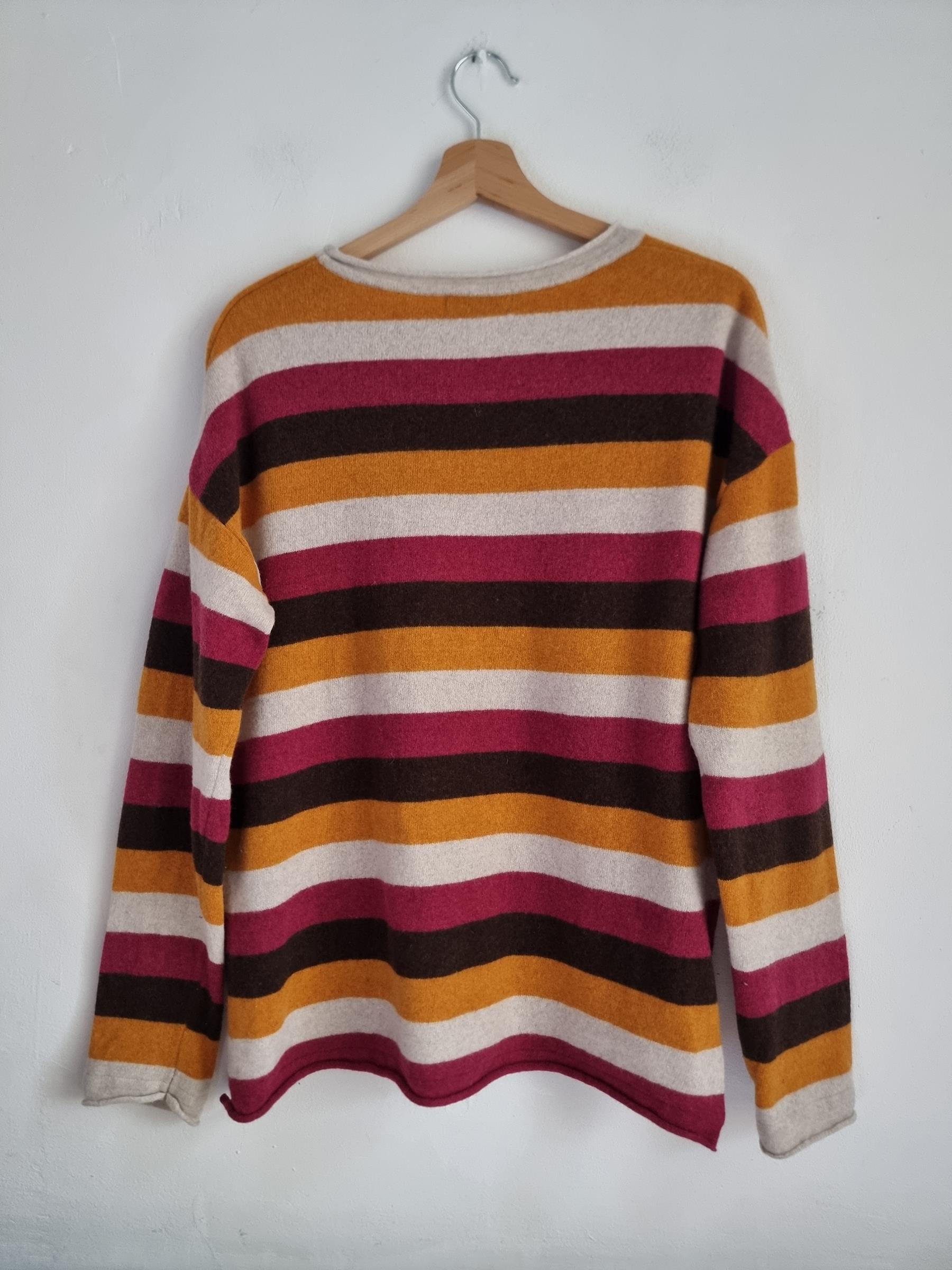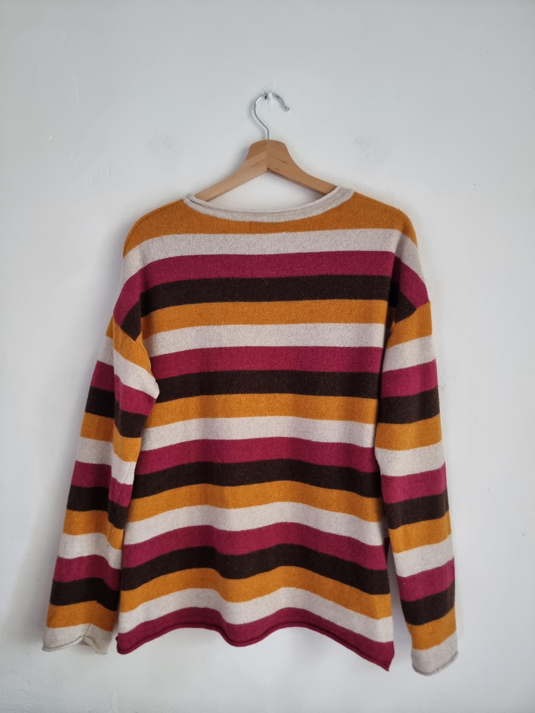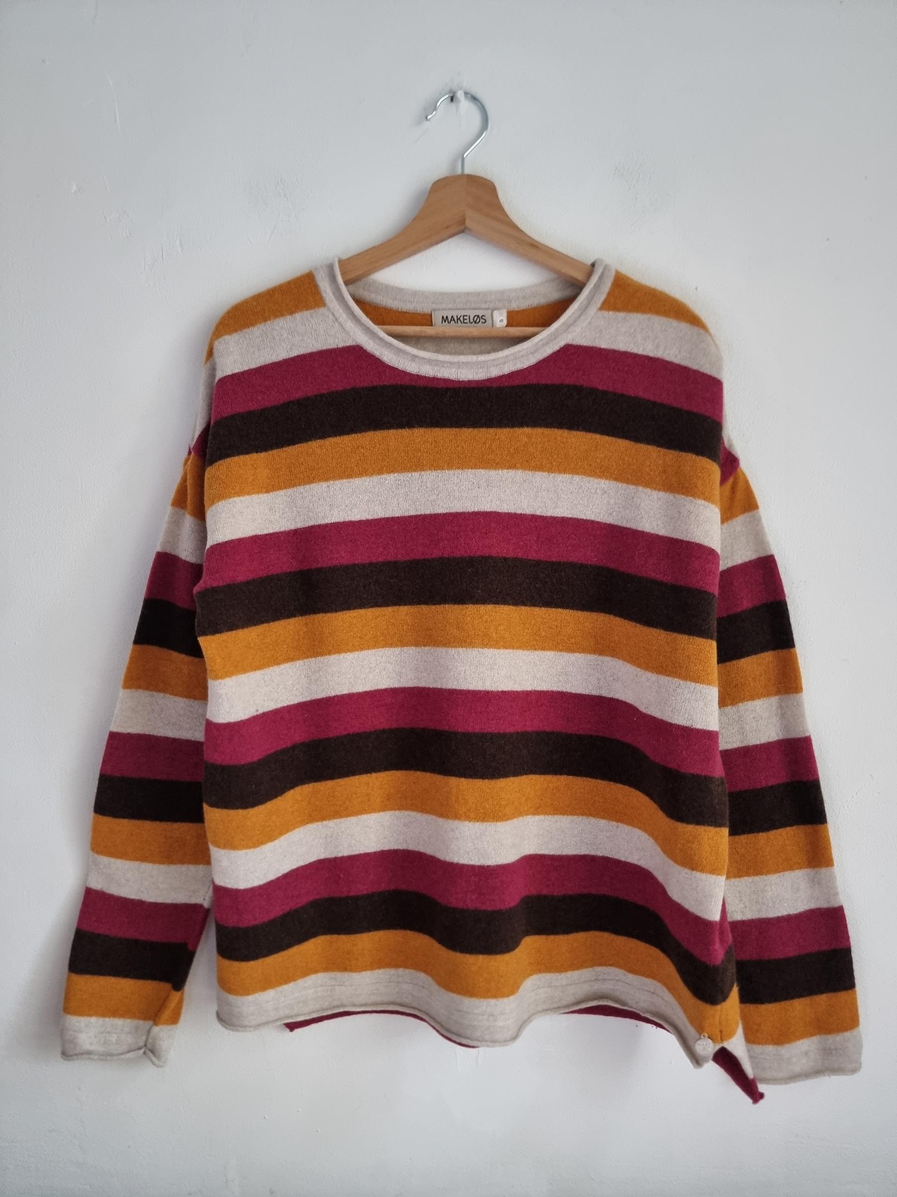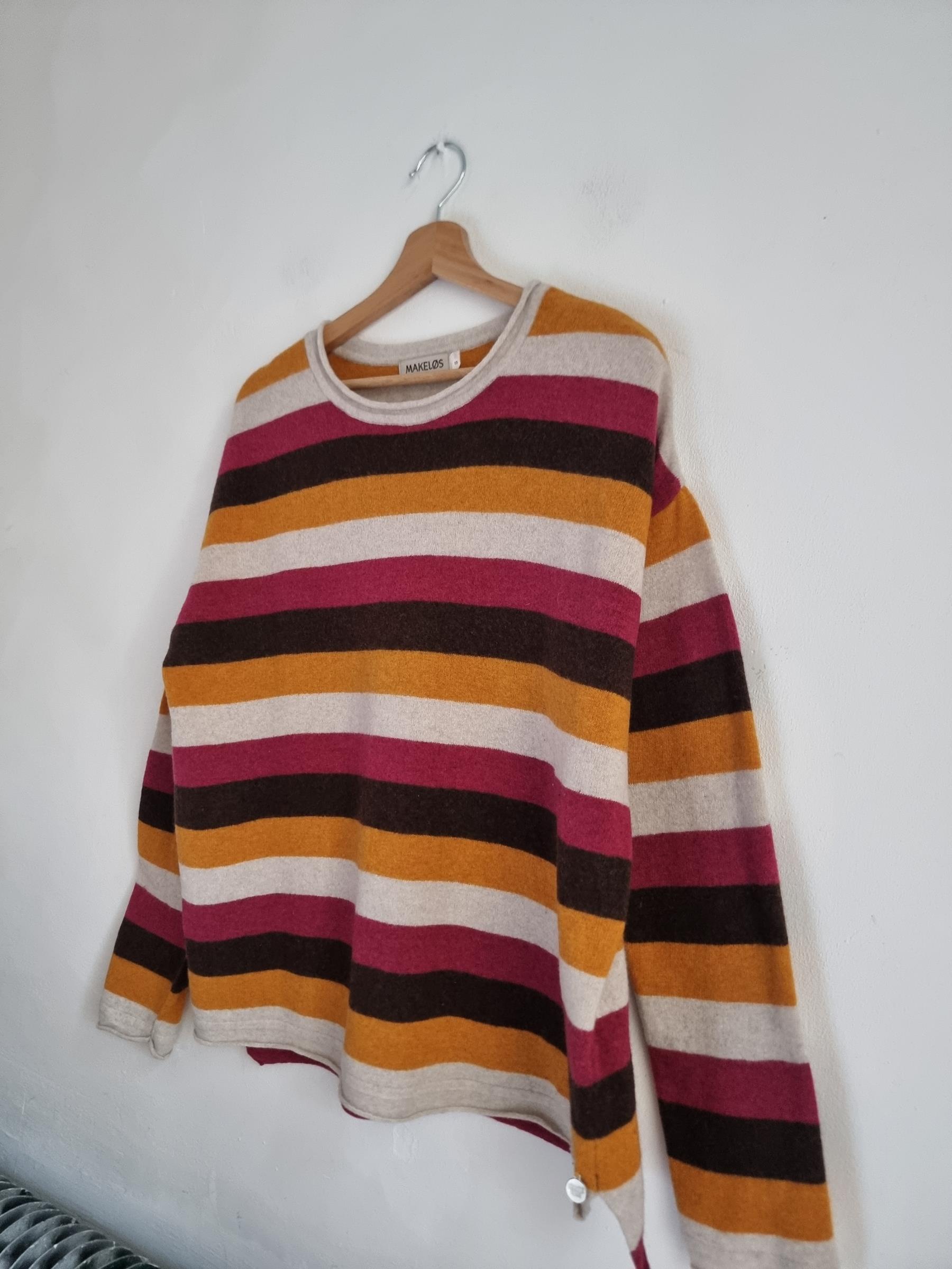 Świetnej jakości wełniany sweter w paski norweskiej marki MAKELOS.