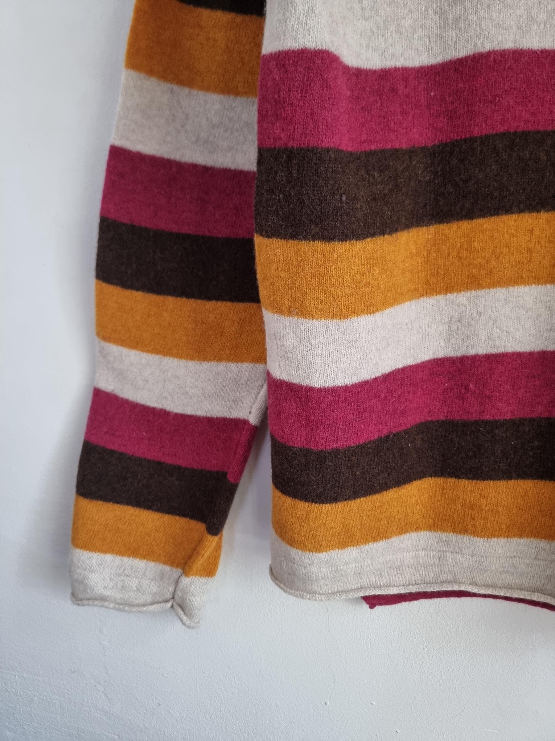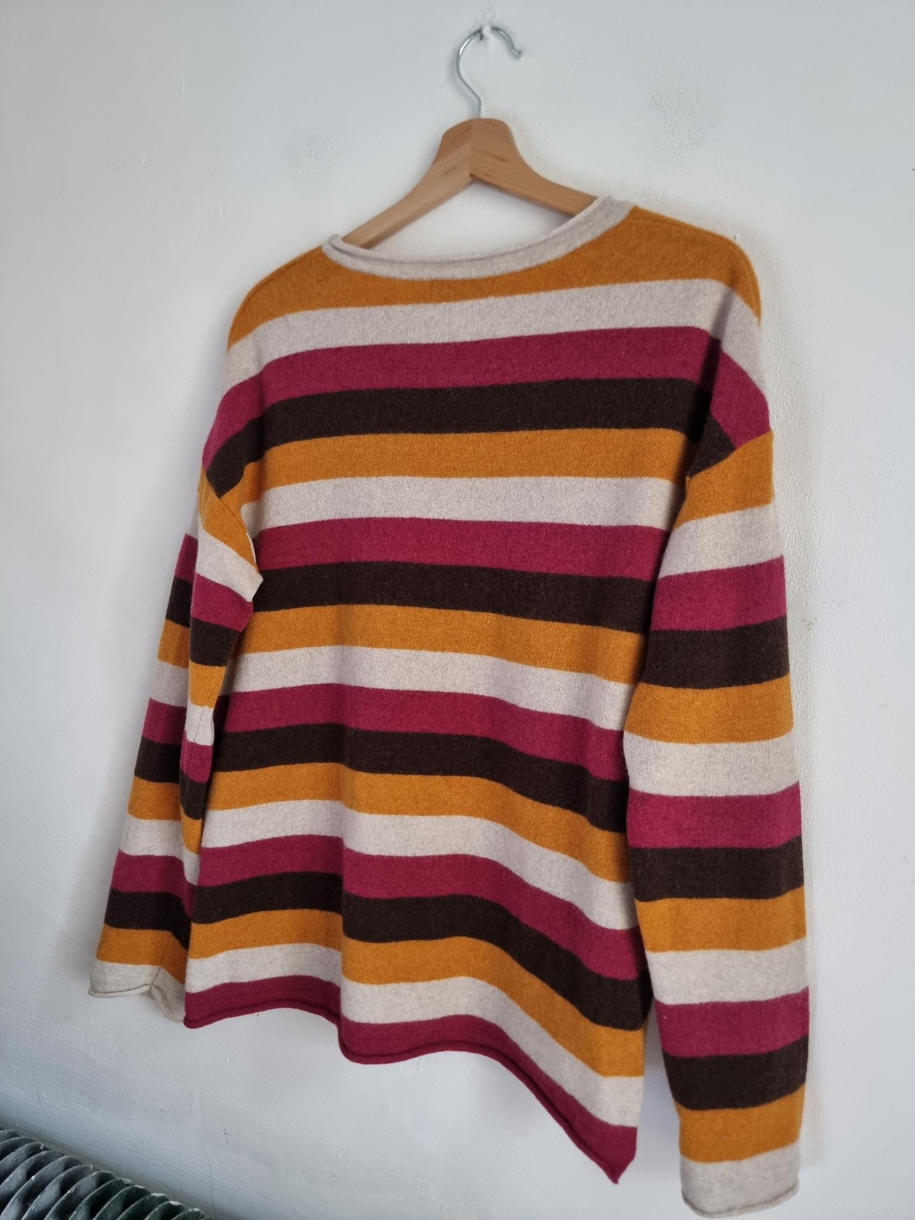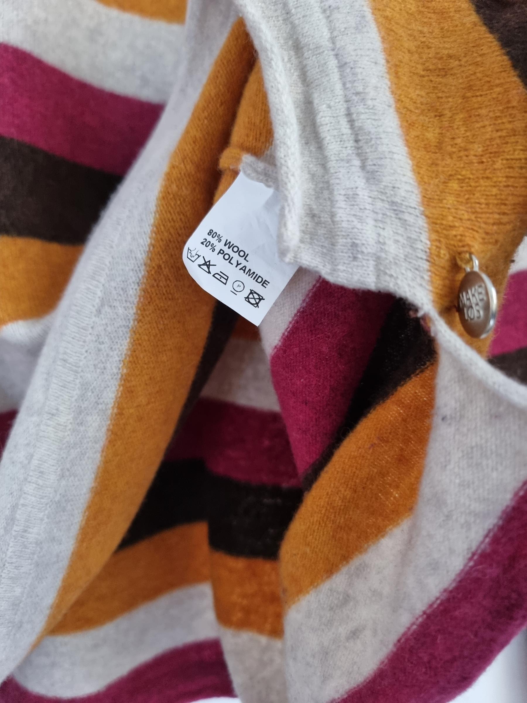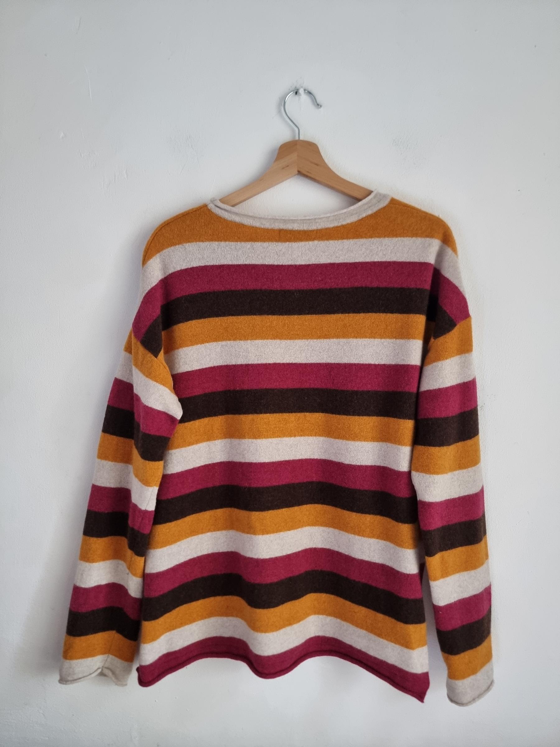 Świetnej jakości wełniany sweter w paski norweskiej marki MAKELOS.