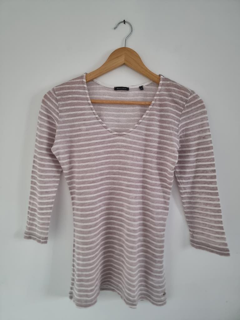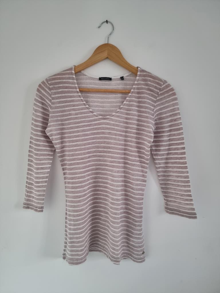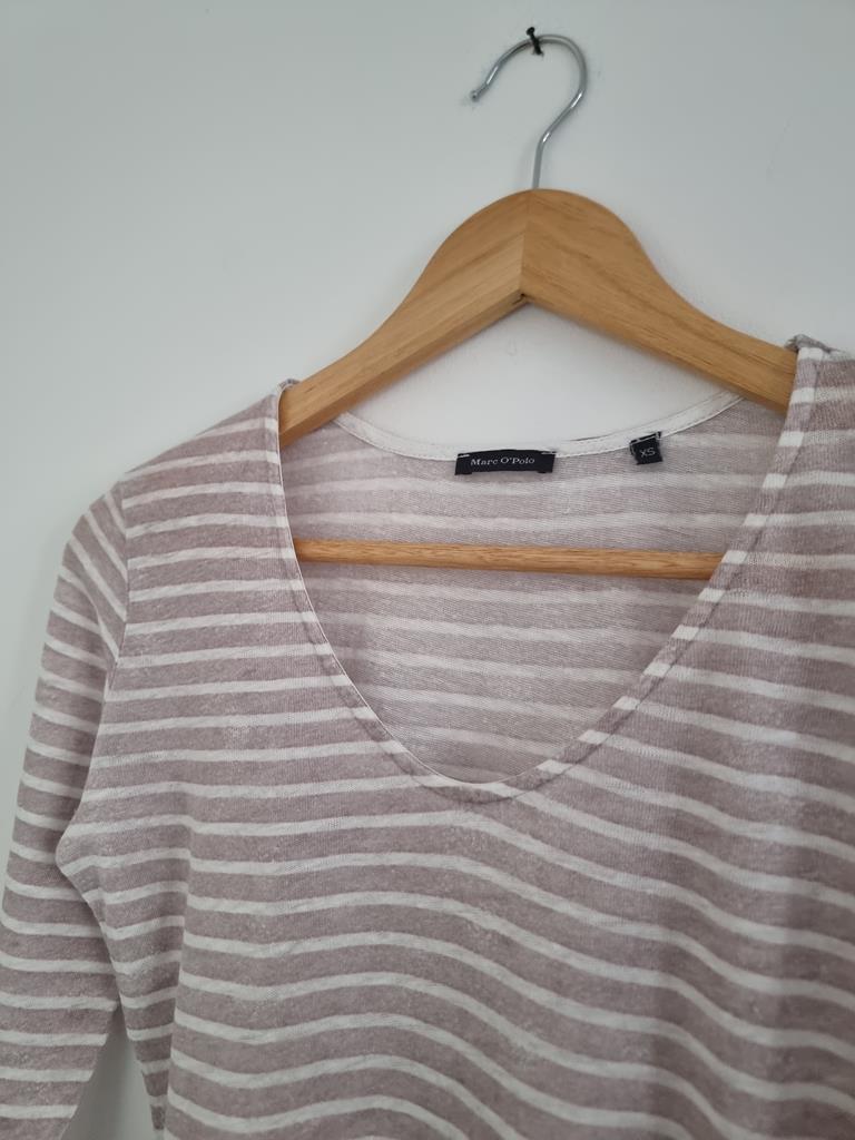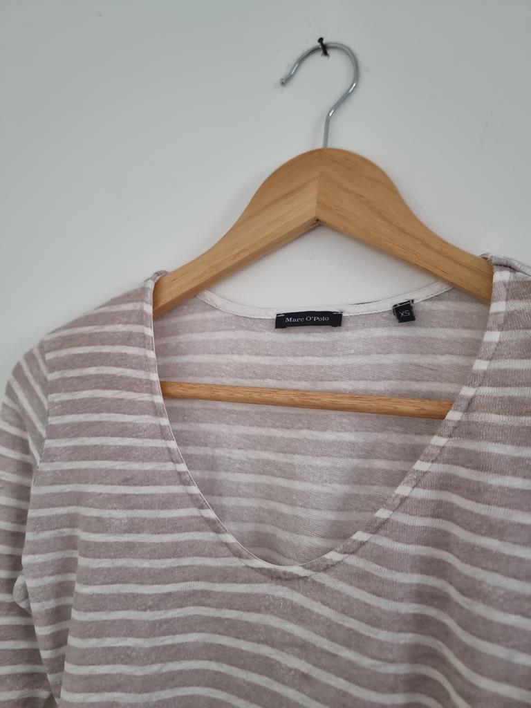Lniana biało beżowa bluzka w paski marki Marco Polo.