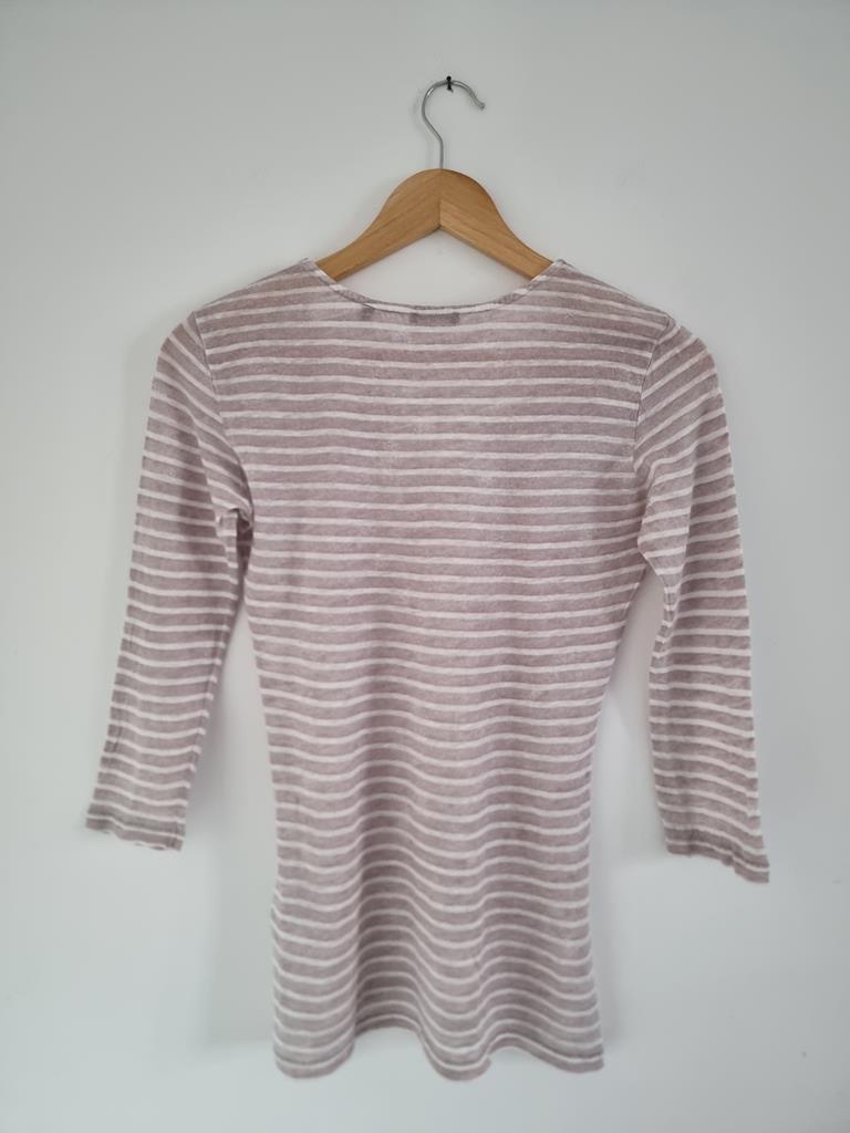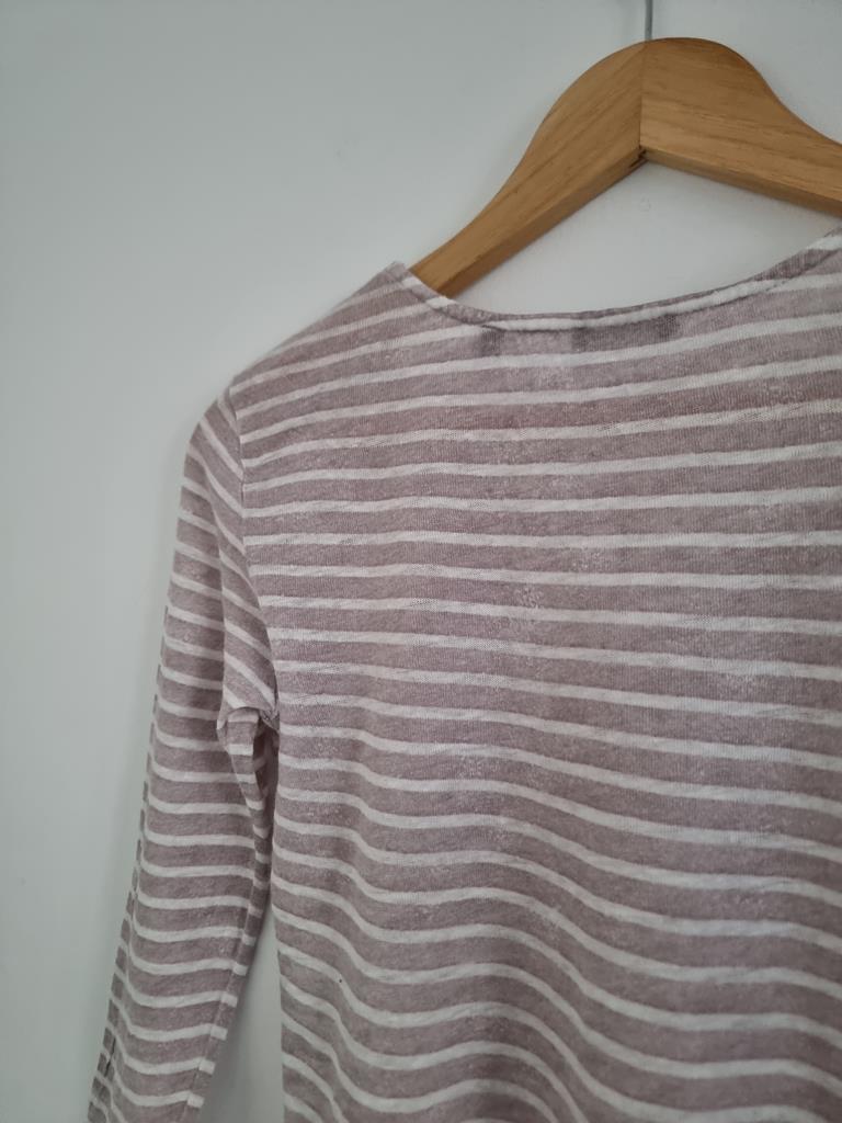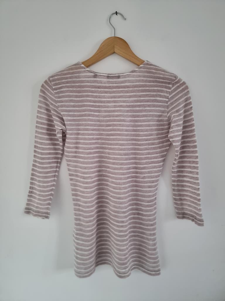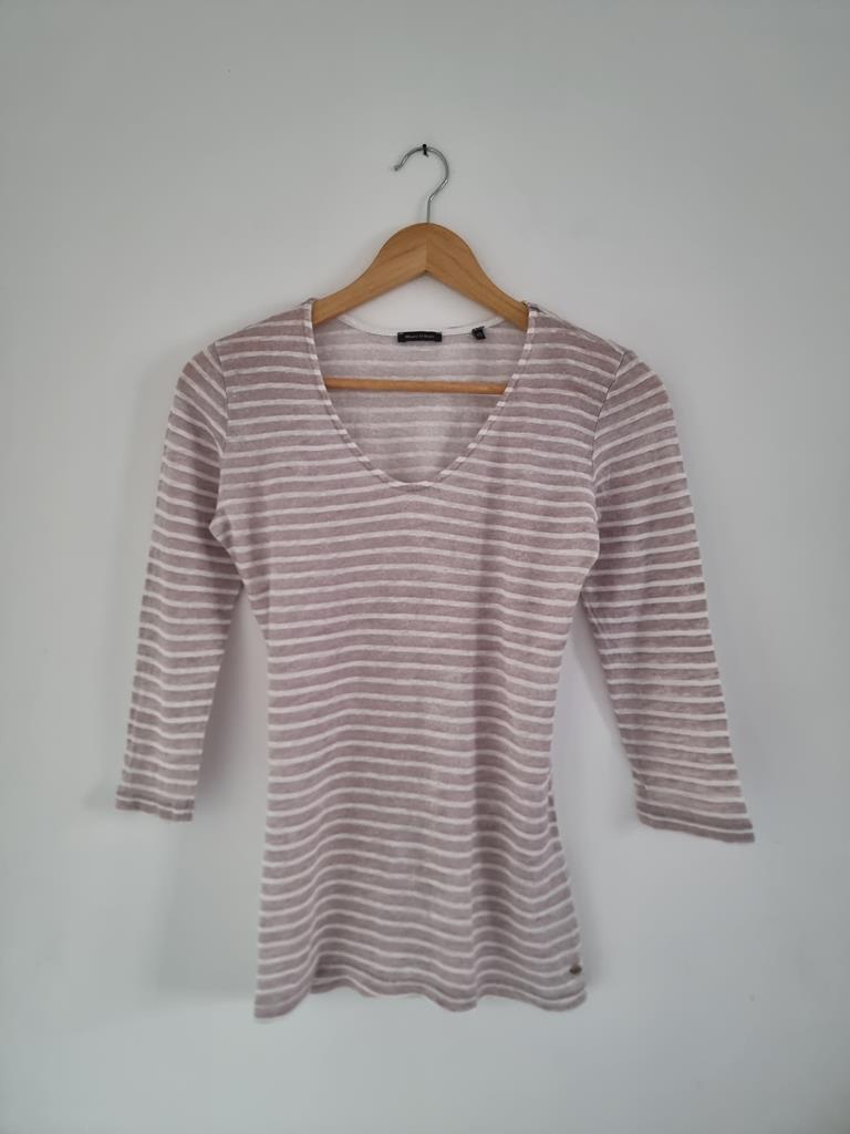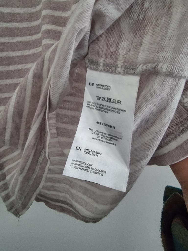 Lniana biało beżowa bluzka w paski marki Marco Polo.