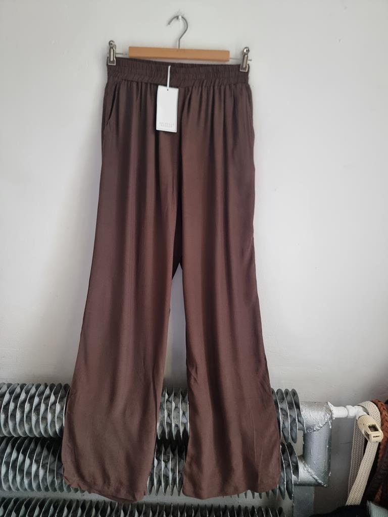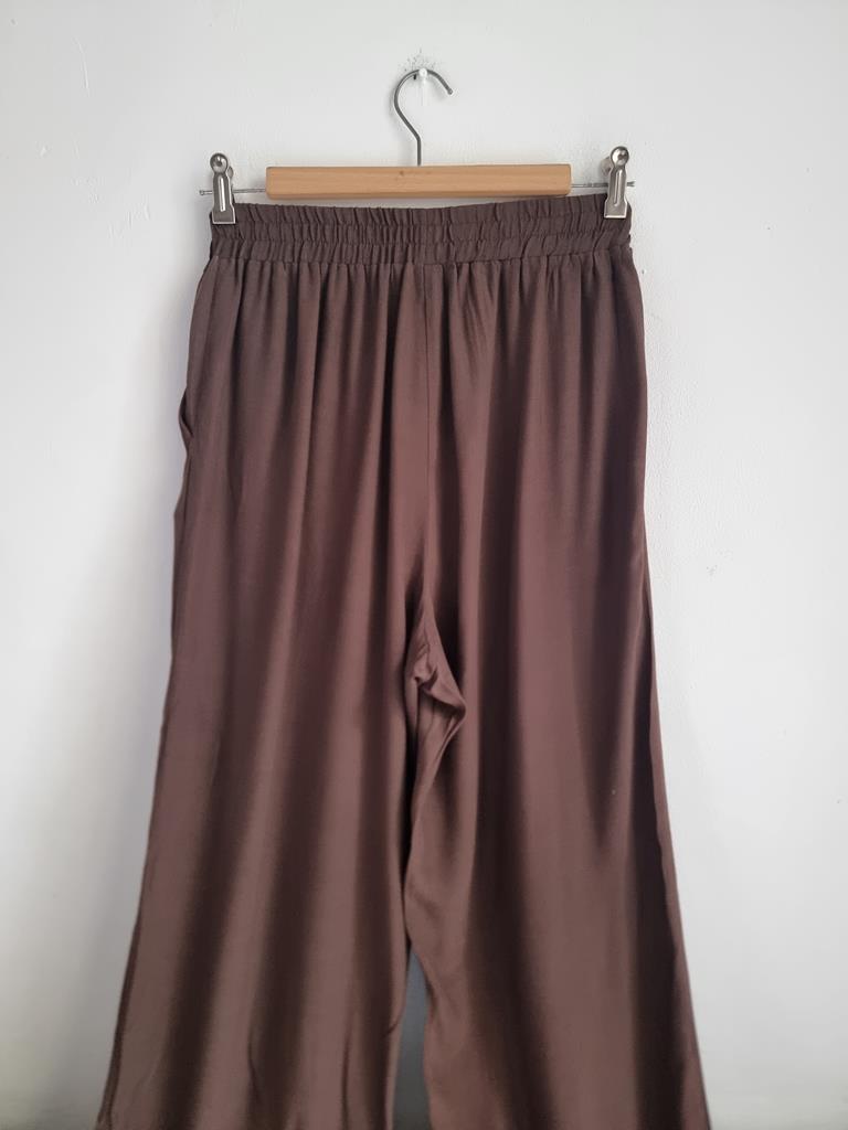 Wiskozowe czekoladowe spodnie o luźnym kroju. Spodnie na gumce.
