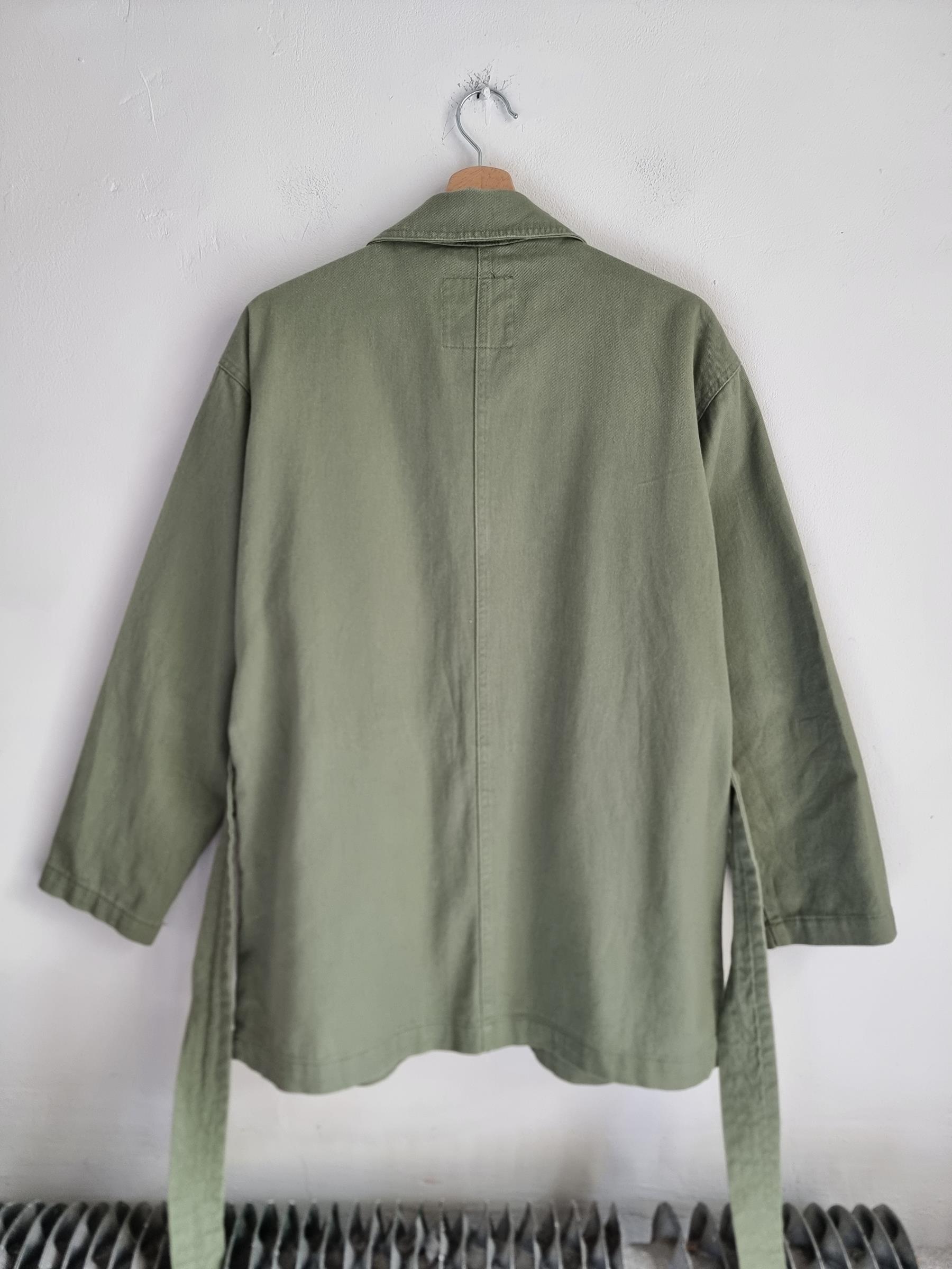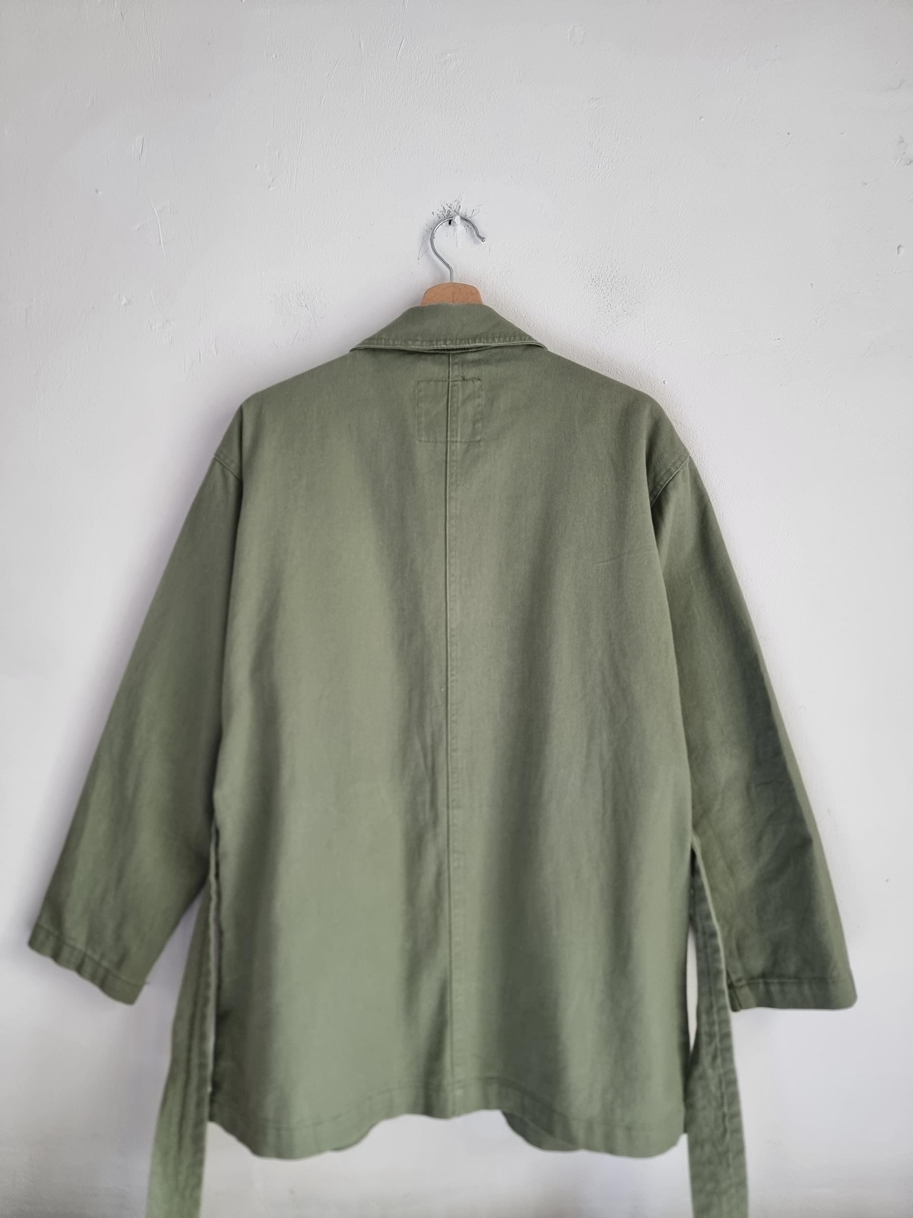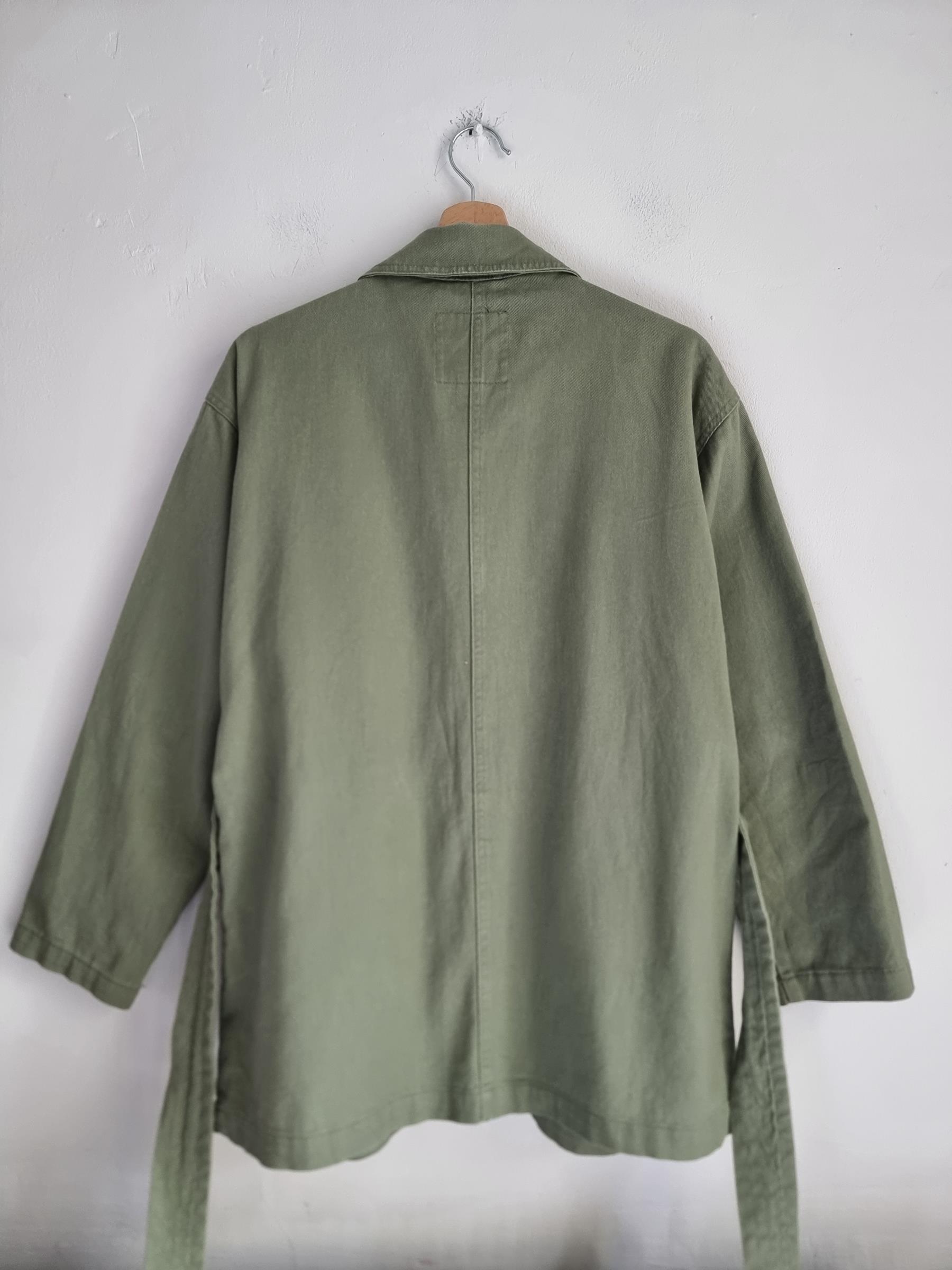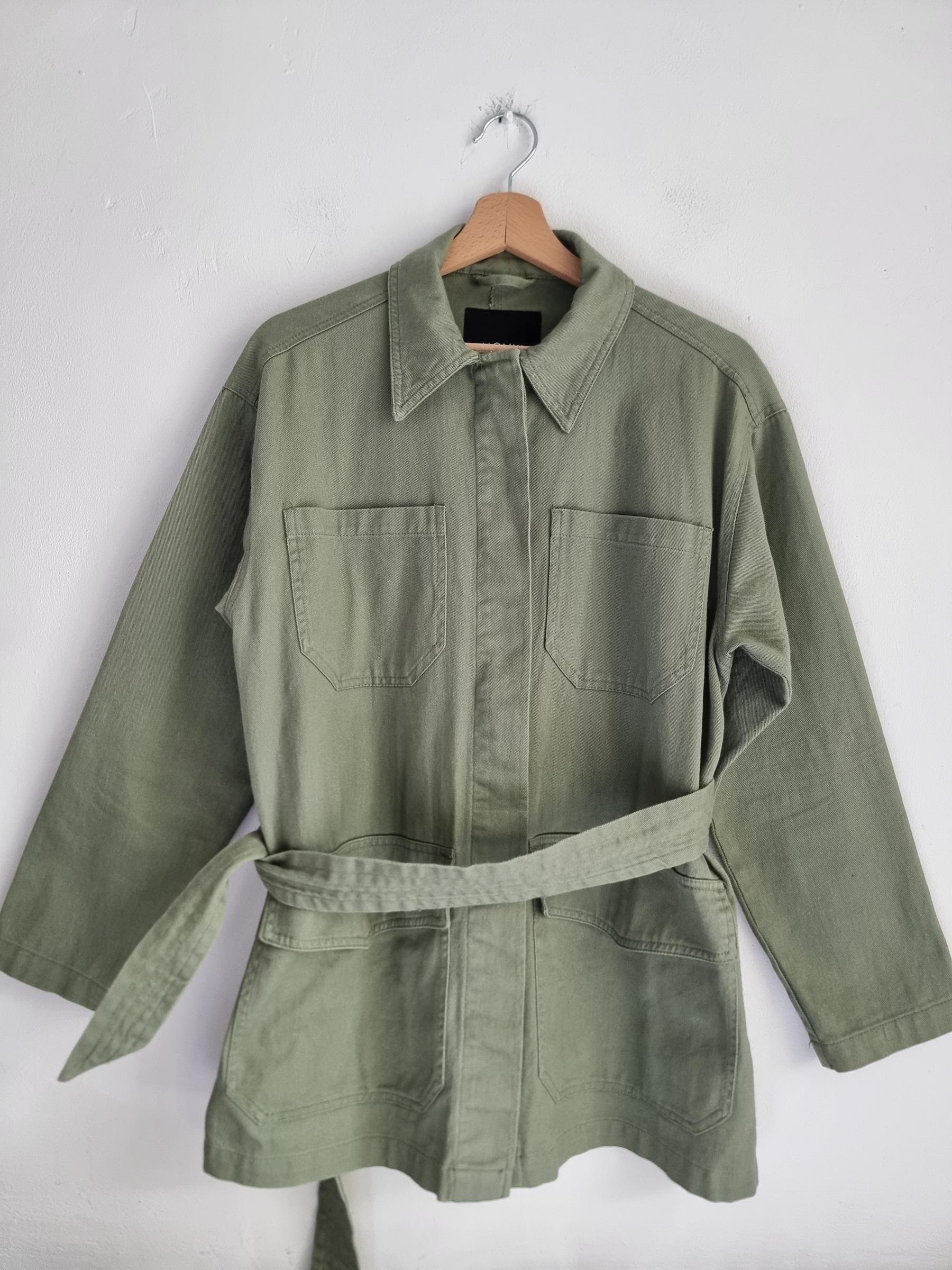 Zielona wojskowa katana z wiązaniem w talii. Duże kieszenie z przodu.  Płaszcz Monki Utility Parka Duvet Coat.