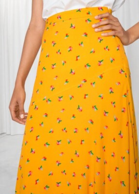Paris atelier & Other stories żółta spódnica asymetryczna w kwiaty wiskozowa M 38 wiosenna