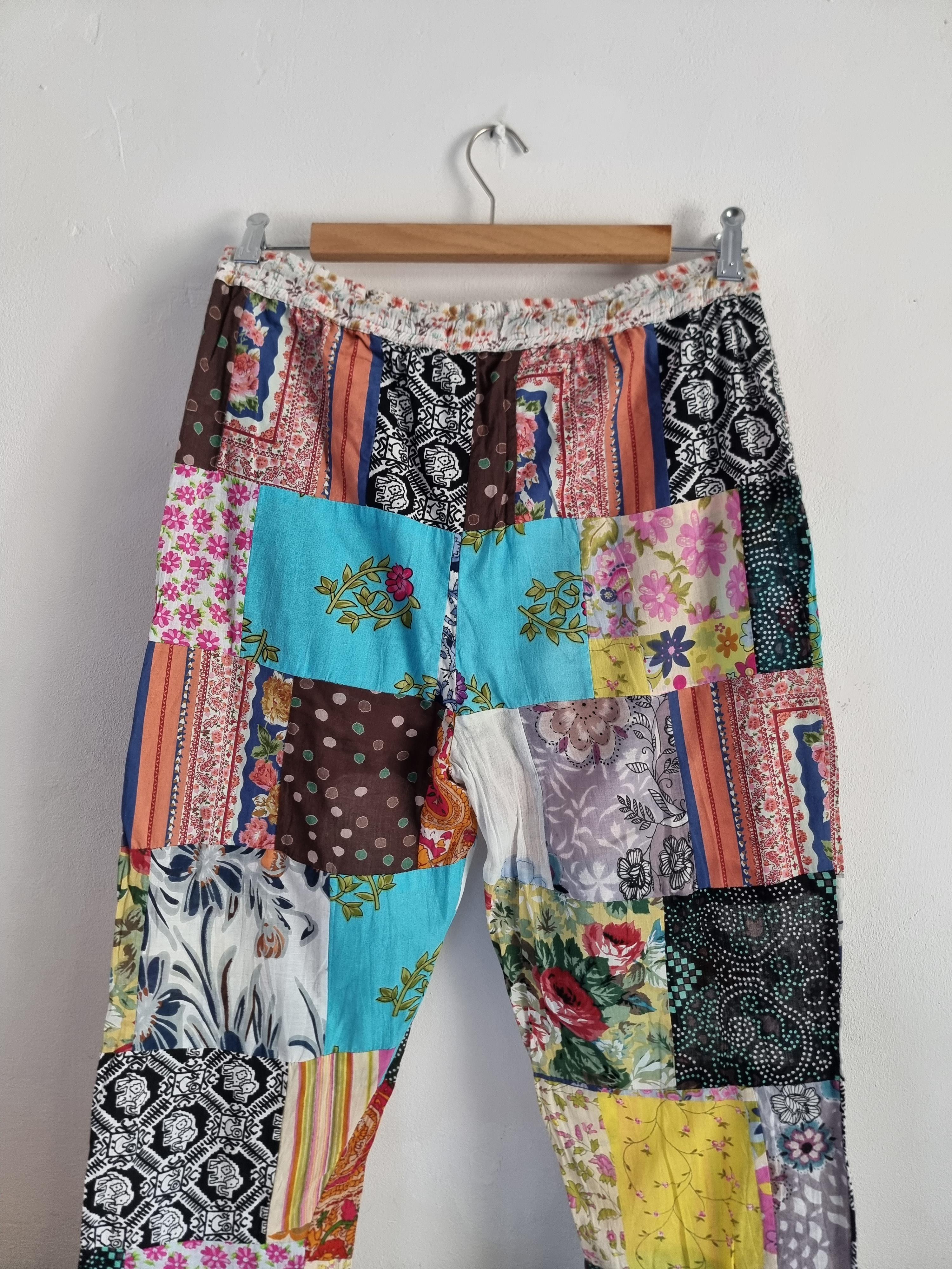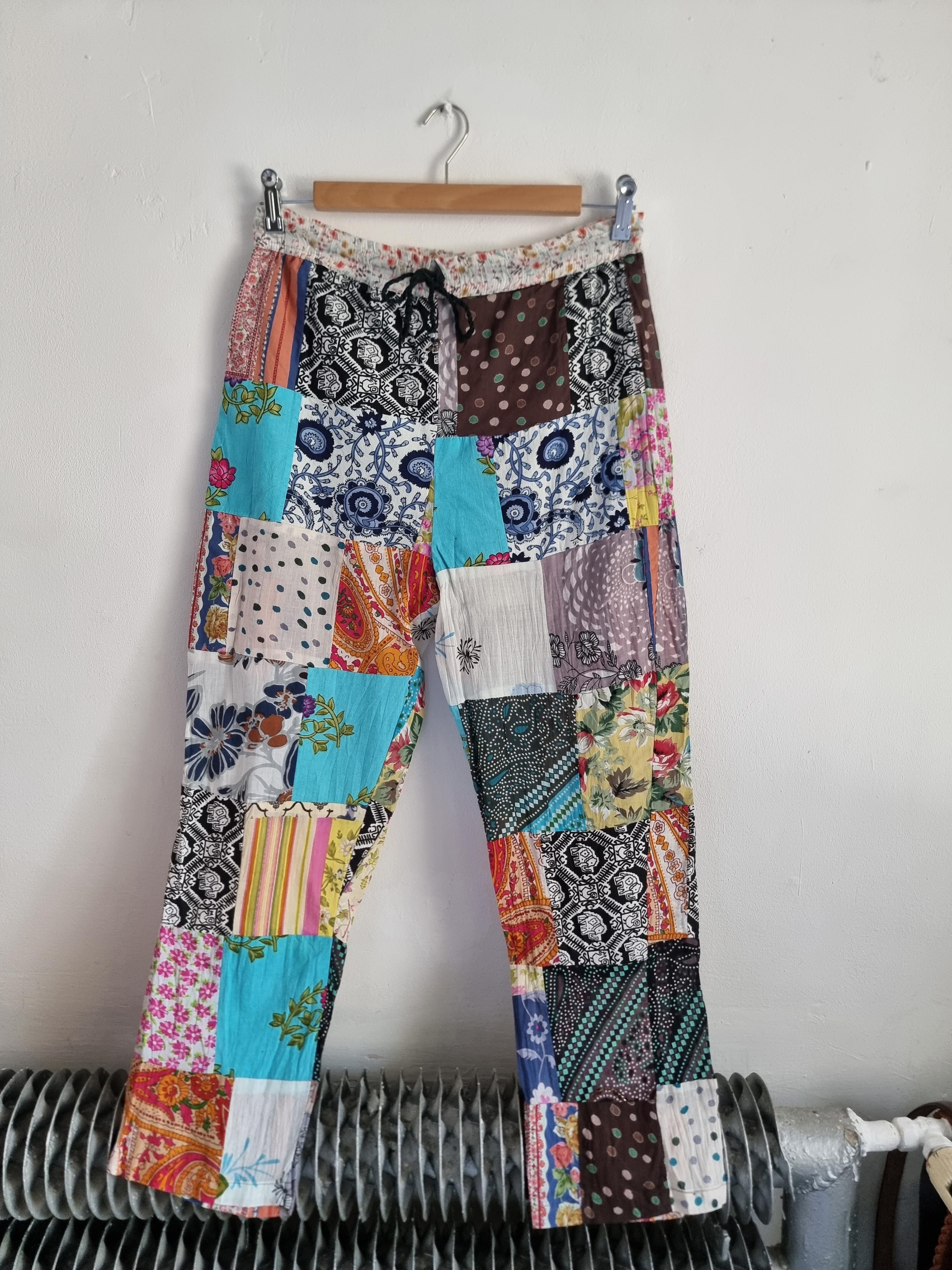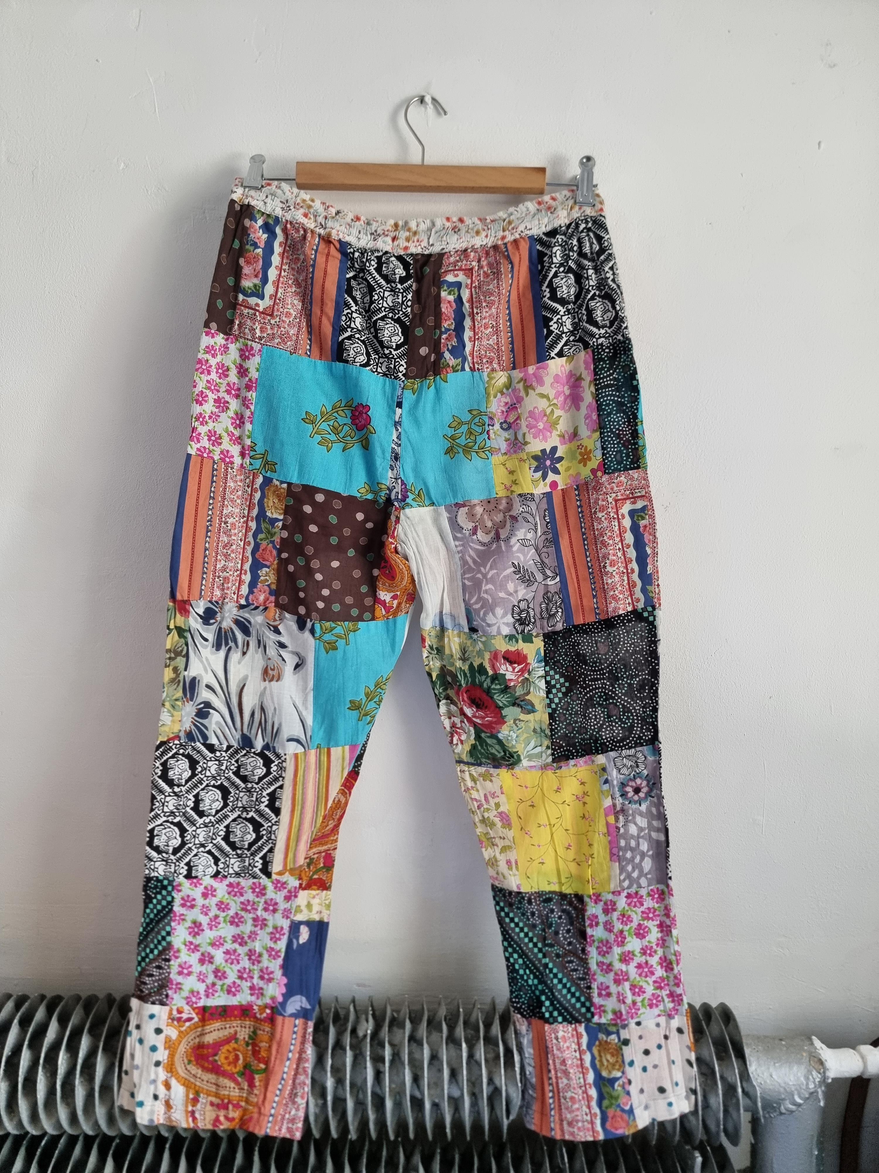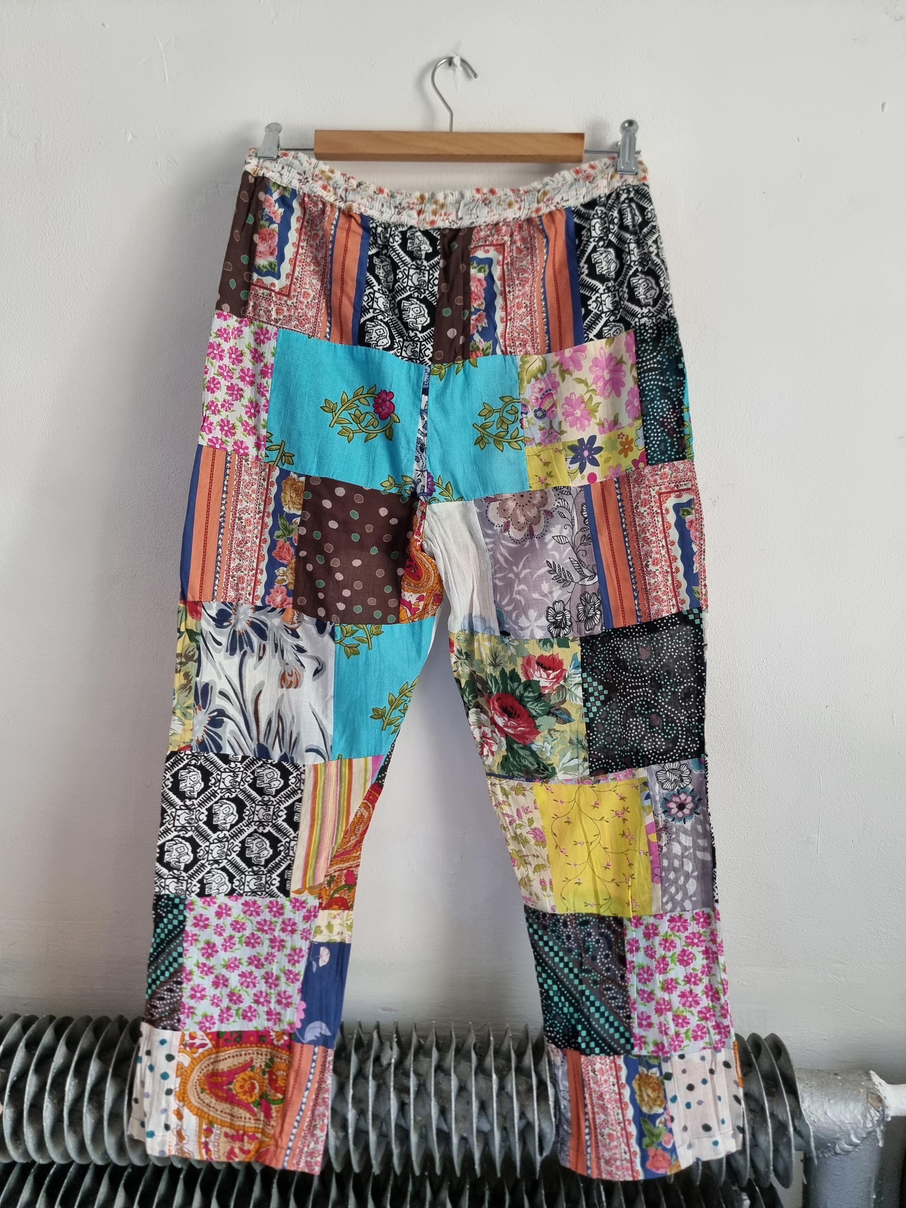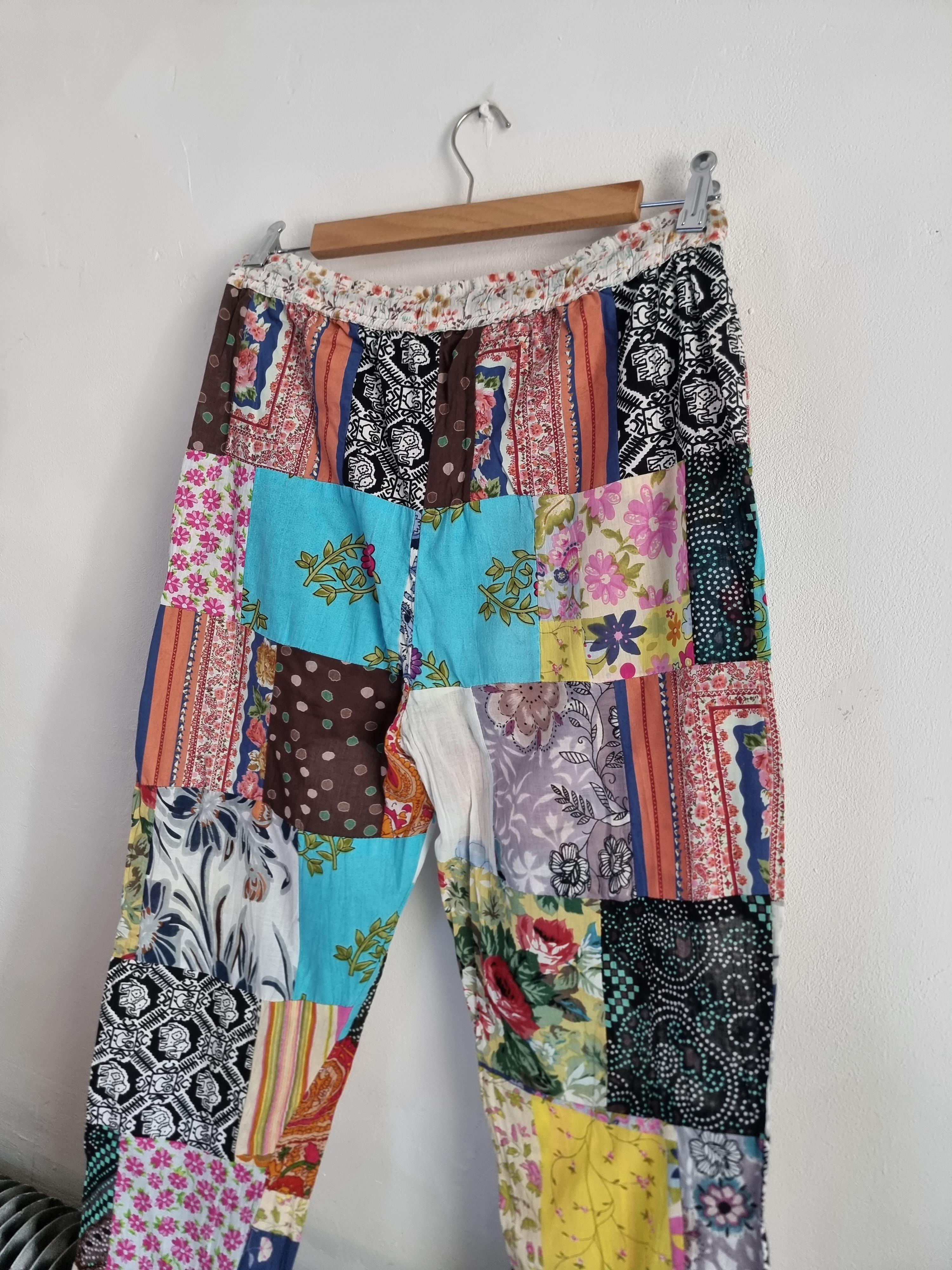 Patchworkowe hippie kolorowe spodnie L 40 bawełniane