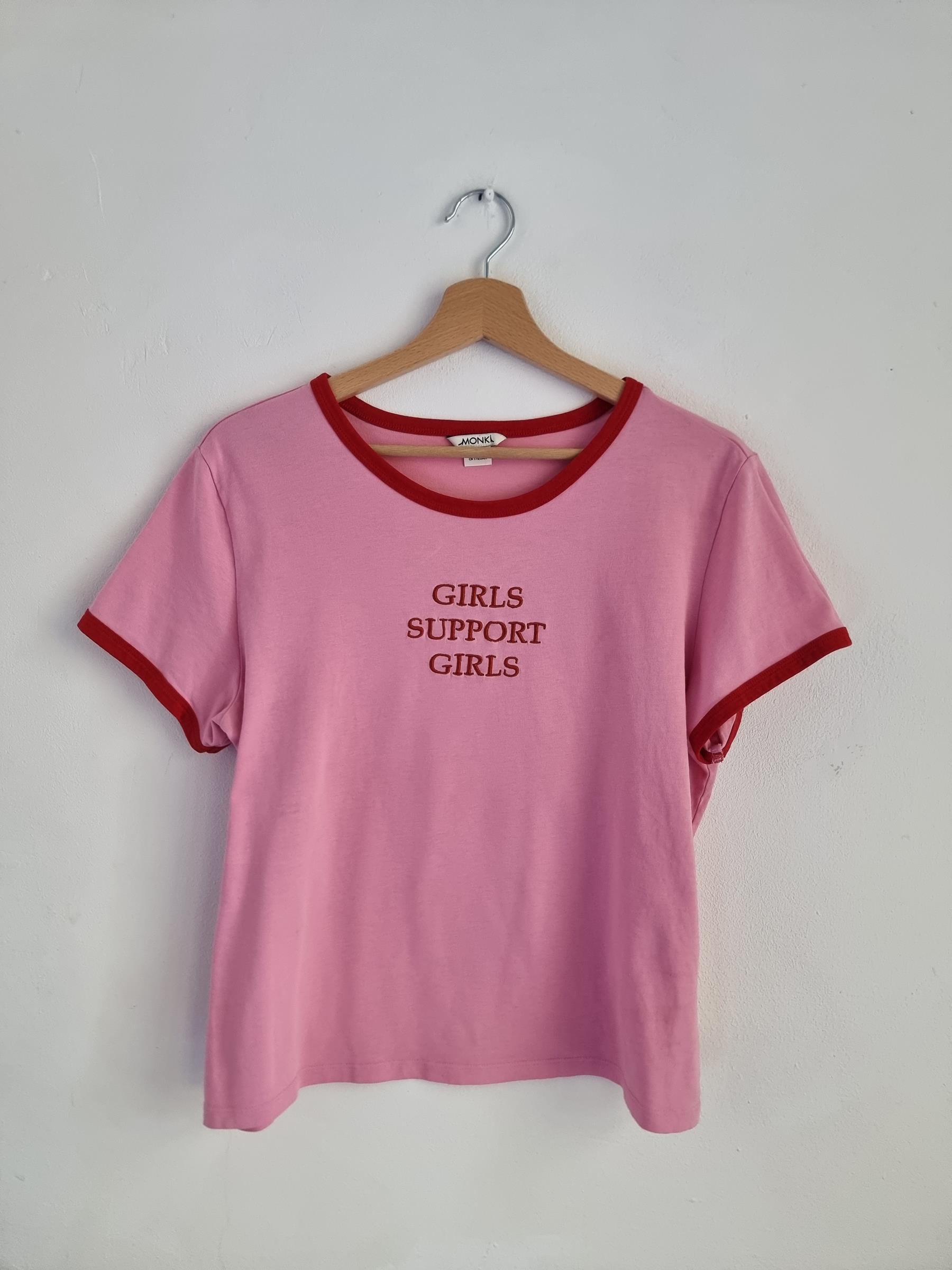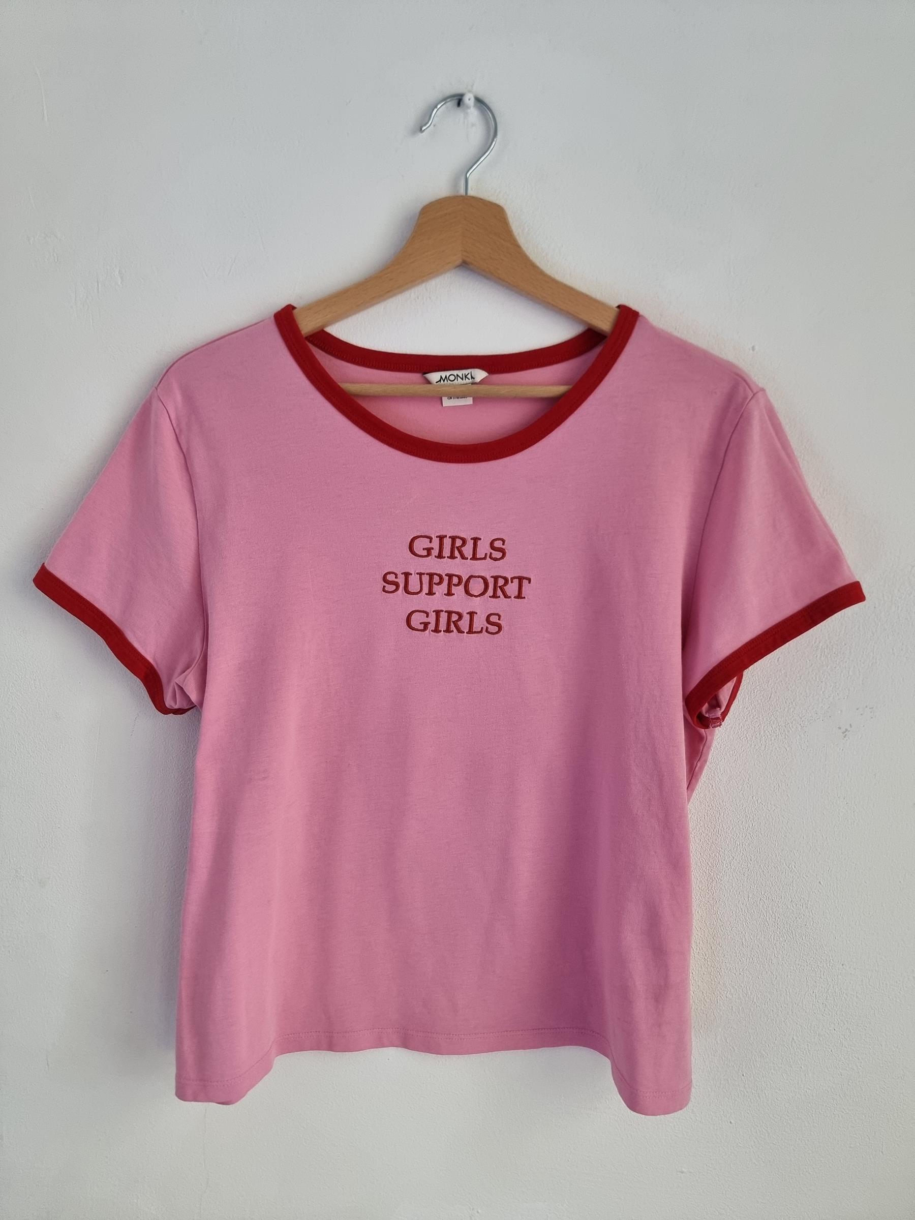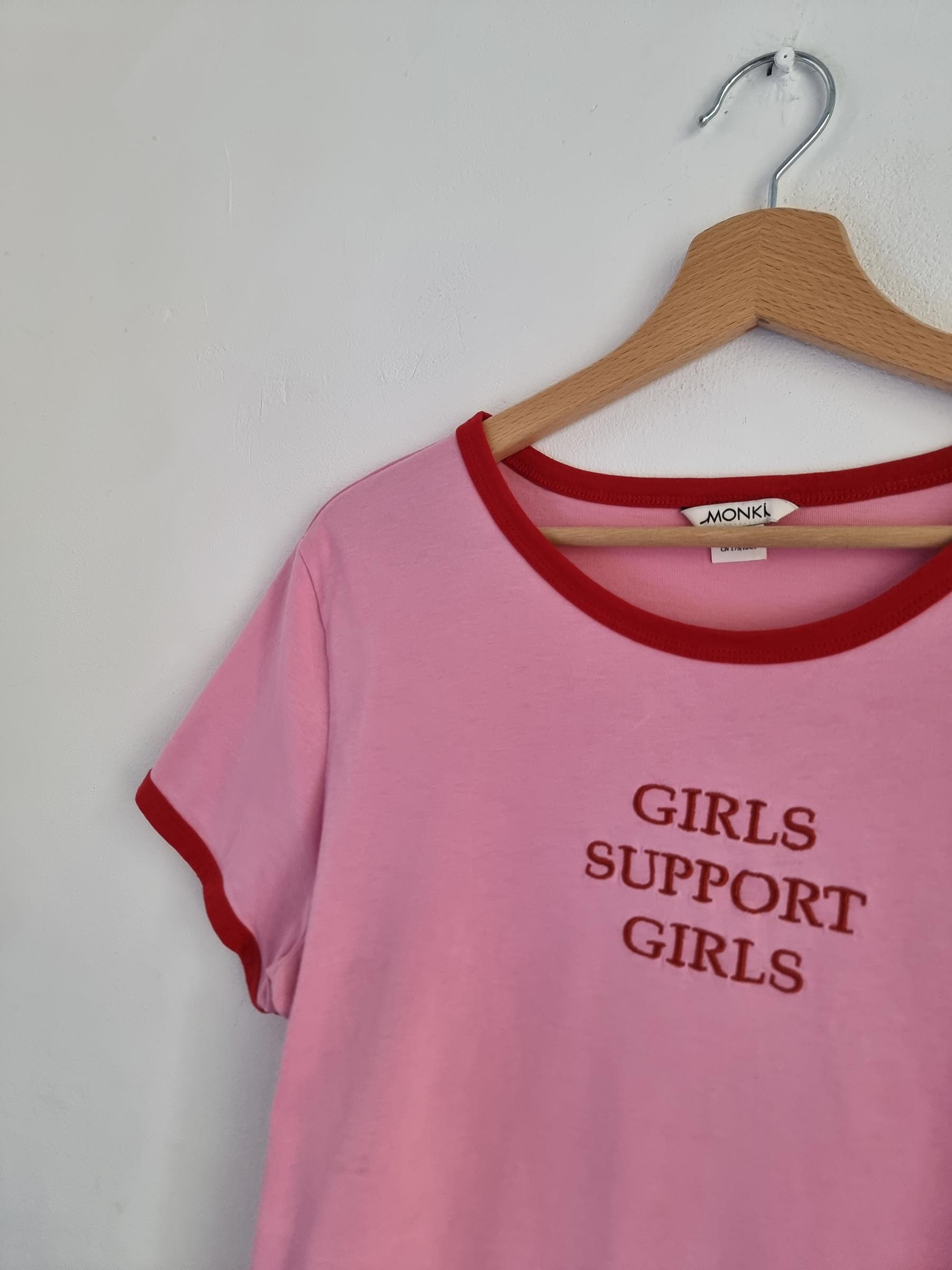 Różowy t-shirt Girls support Girls L 40 monki róż