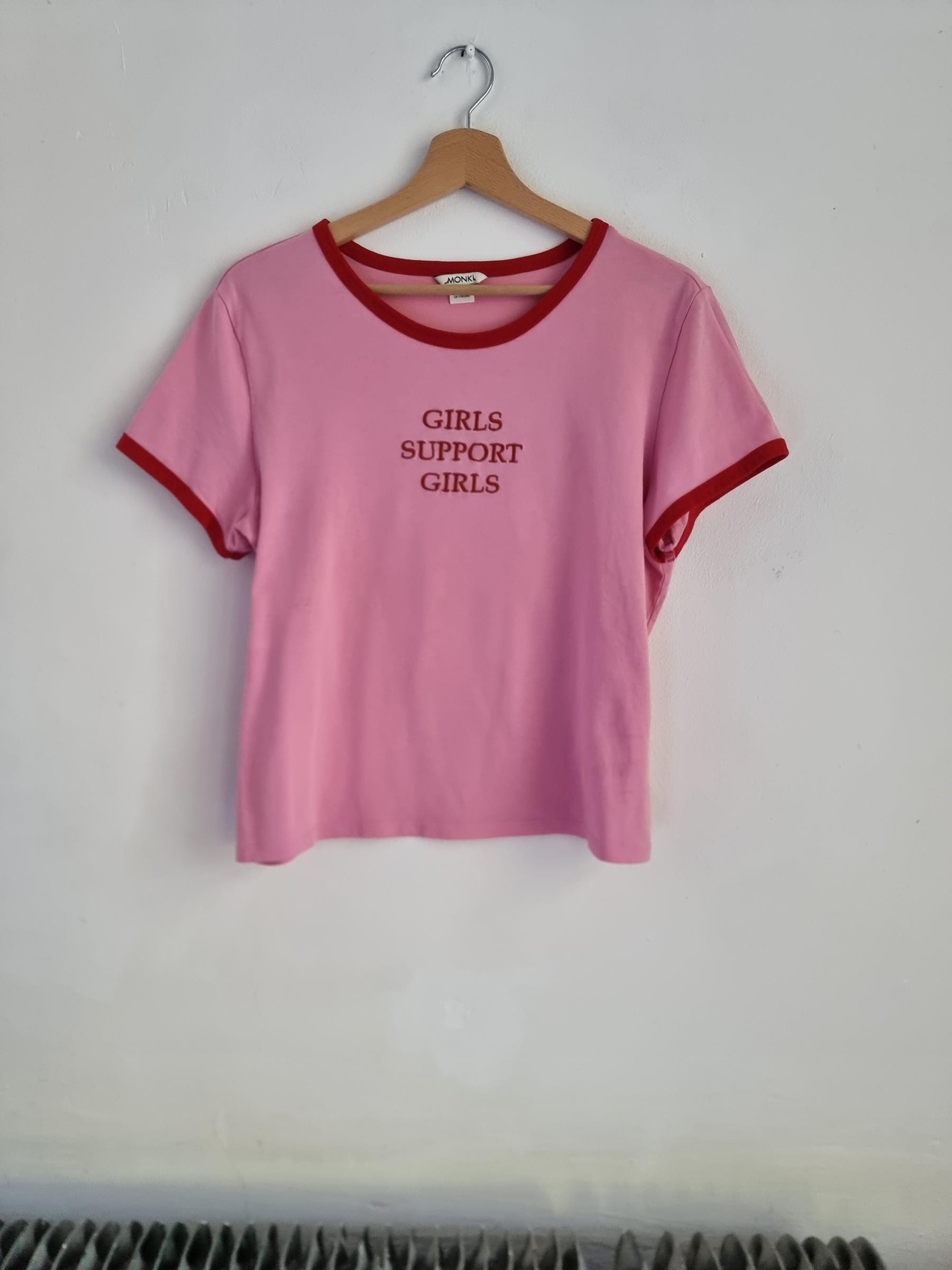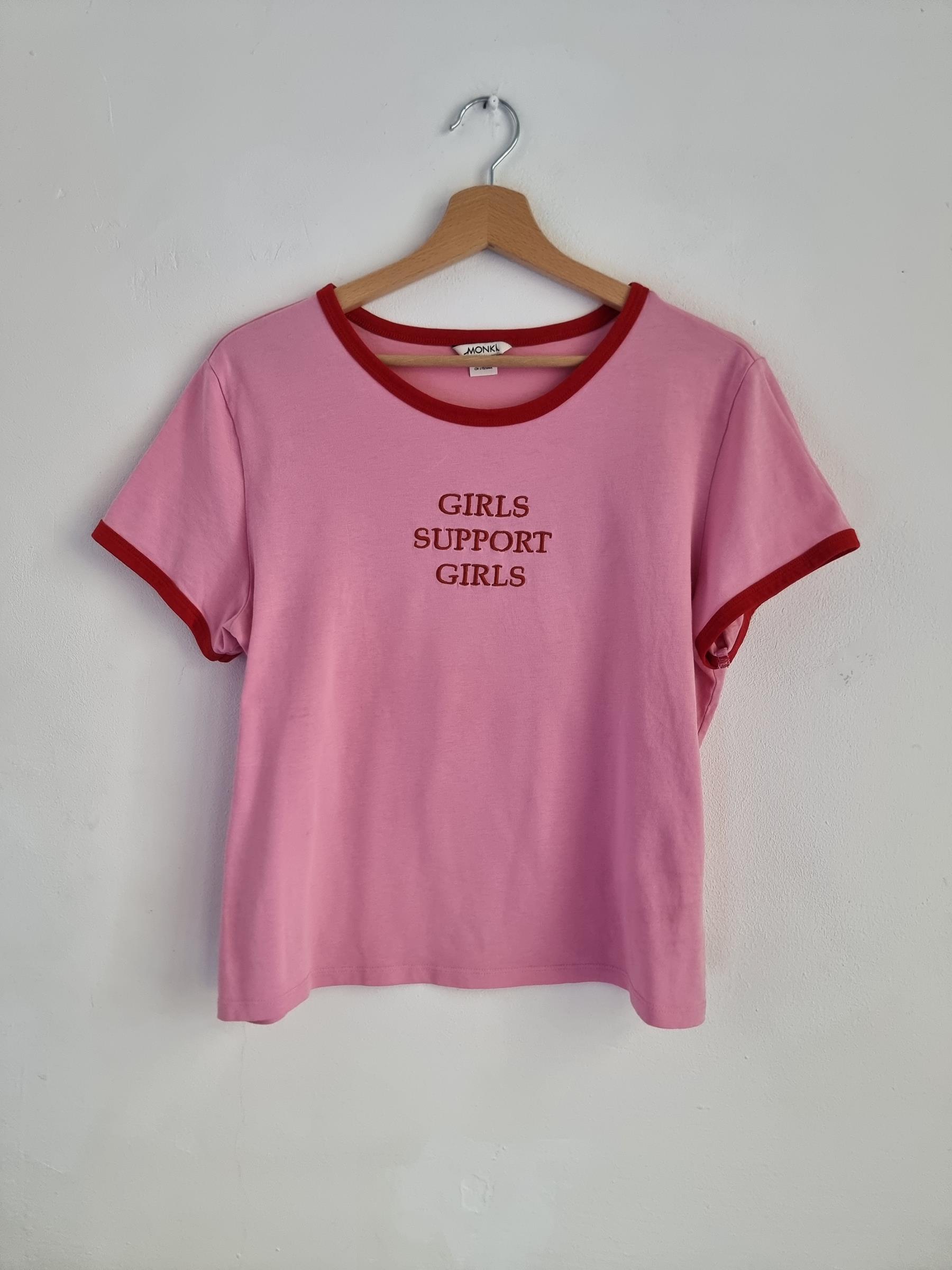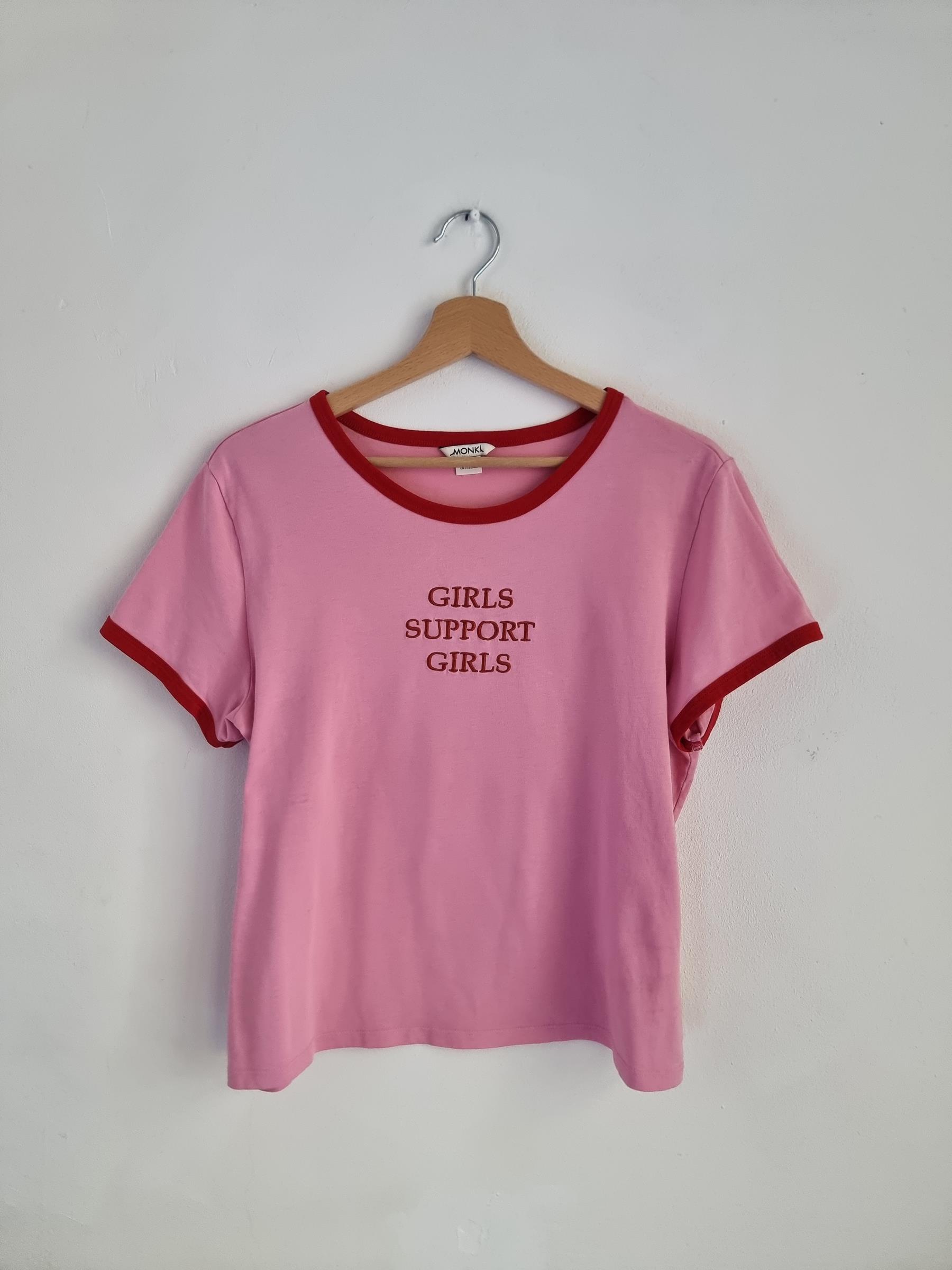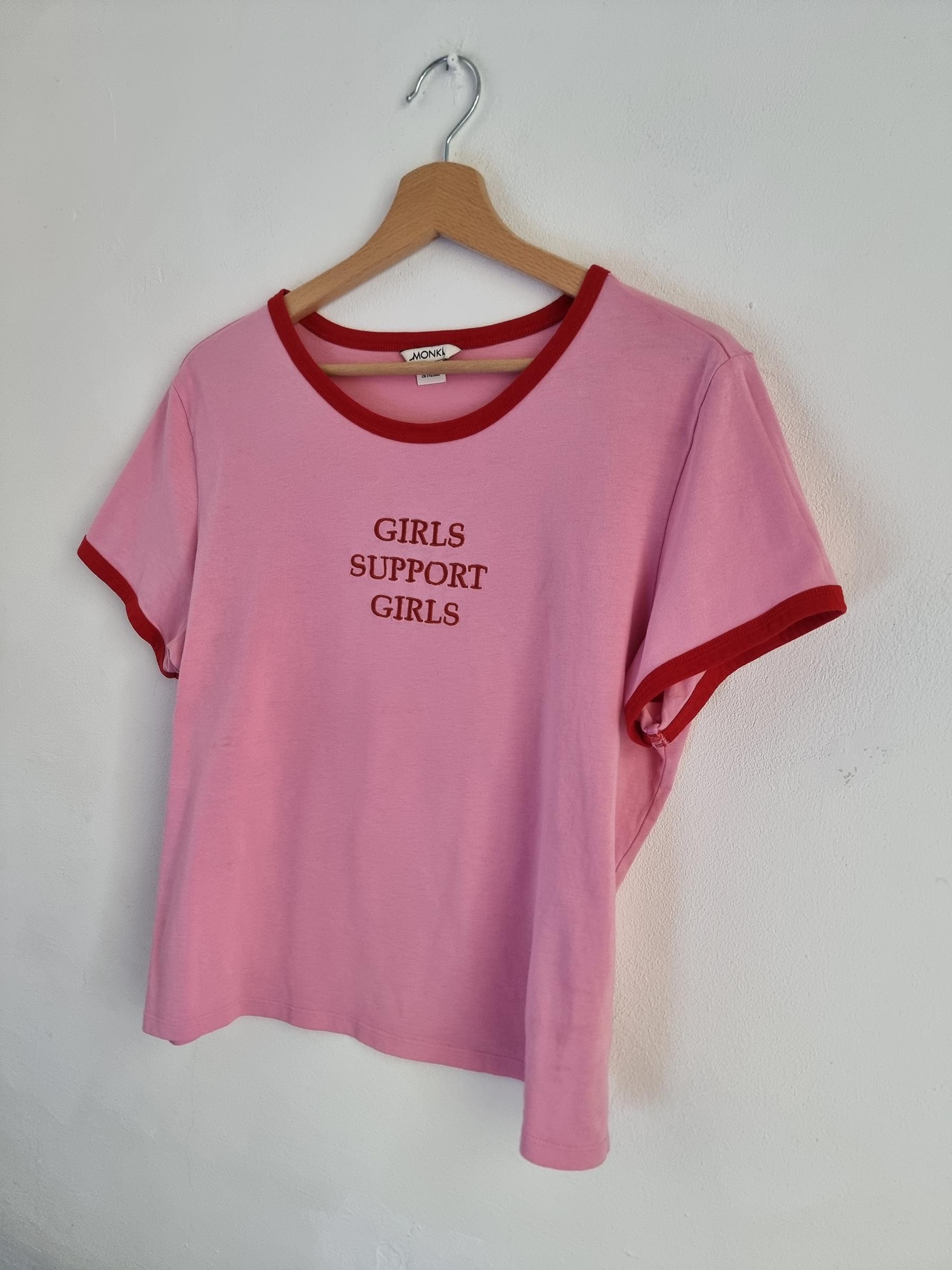 Różowy t-shirt Girls support Girls L 40 monki róż
