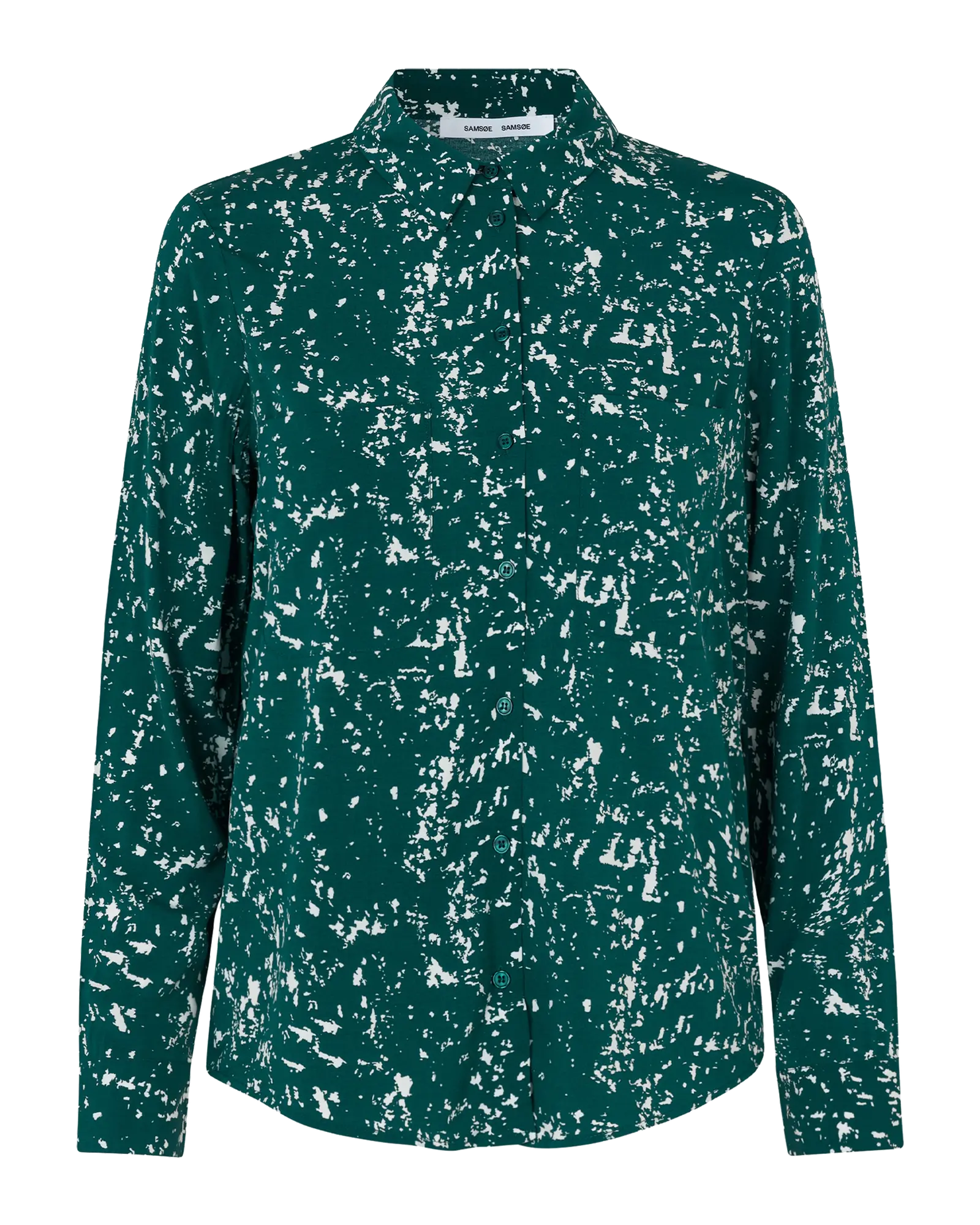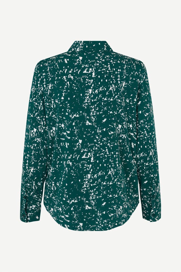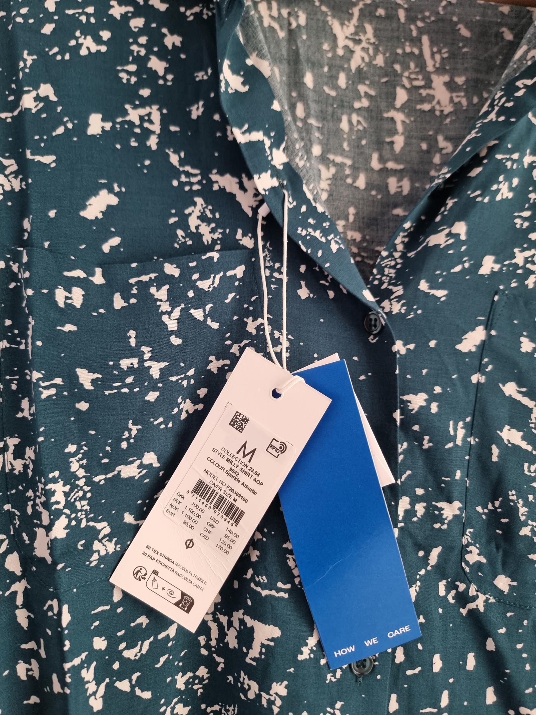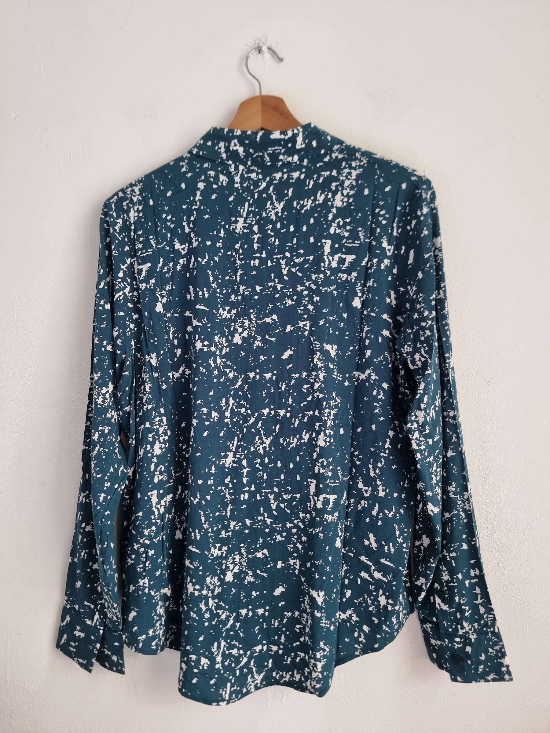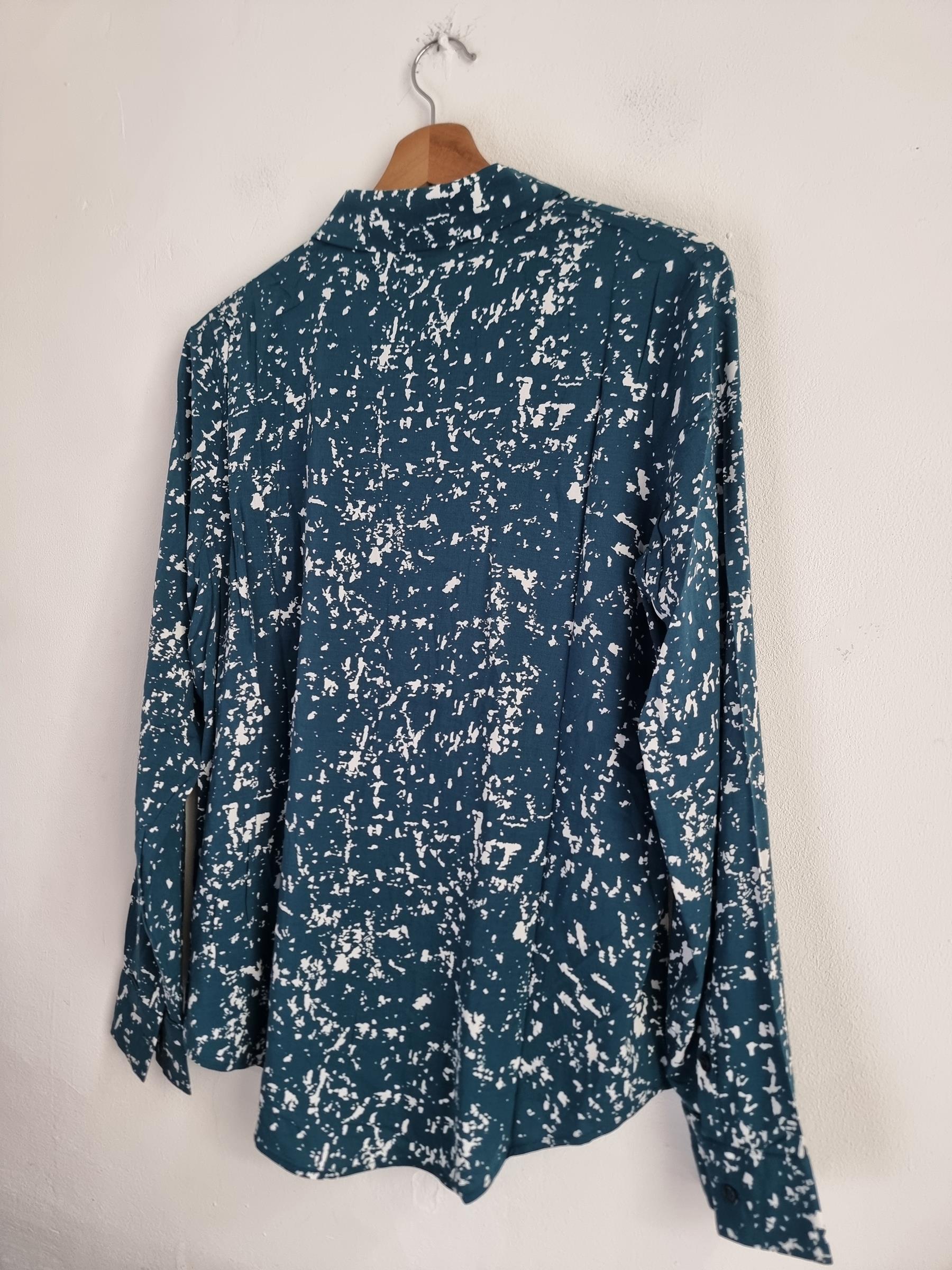 Wiskozowa koszula zapinana na guziki z długim rękawem . Odcienie butelkowej zieleni i bieli.