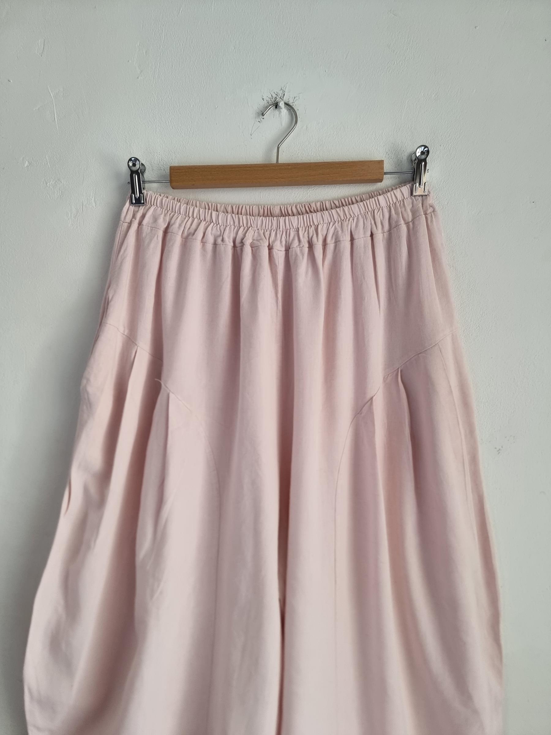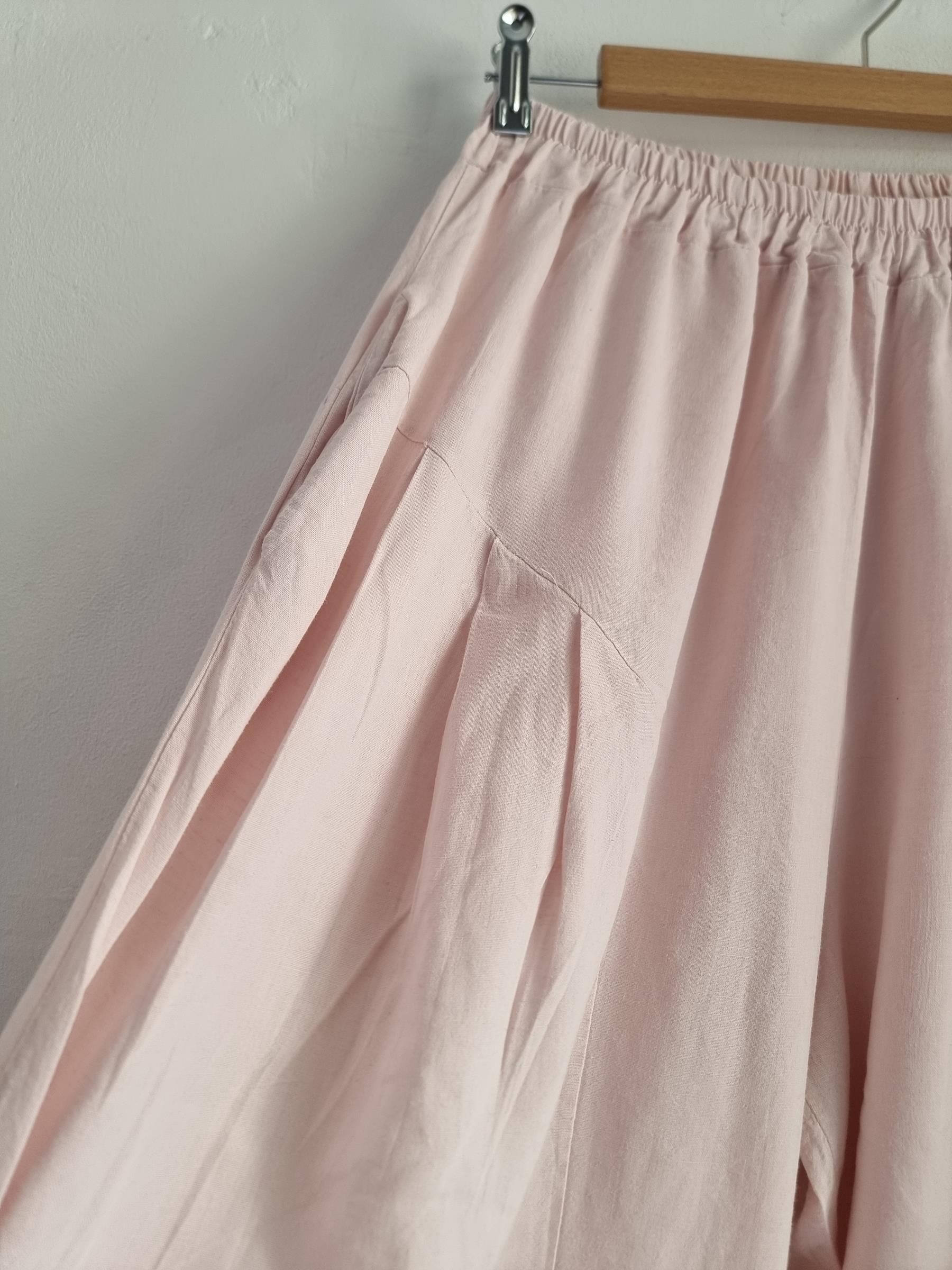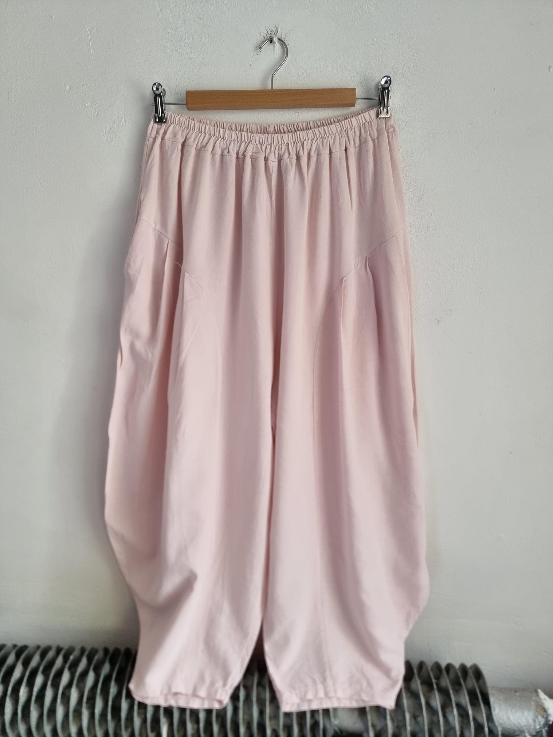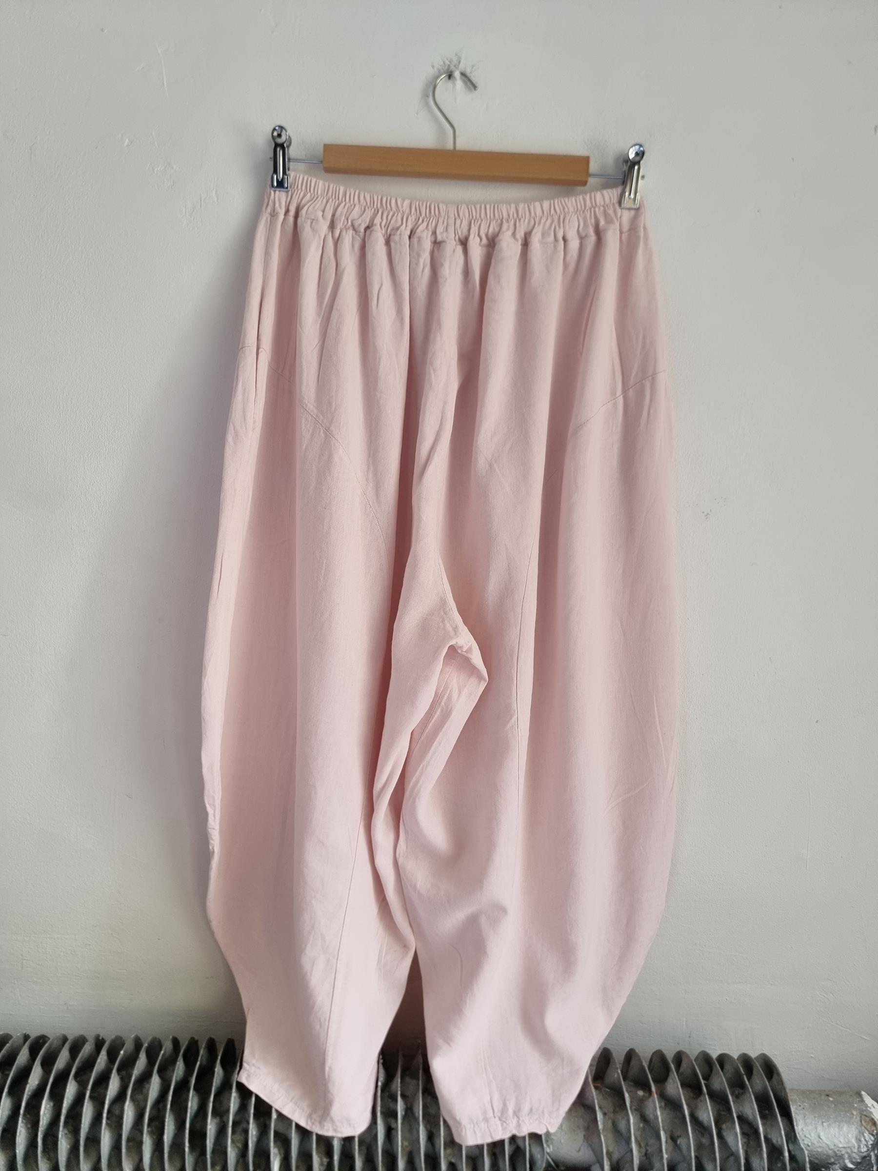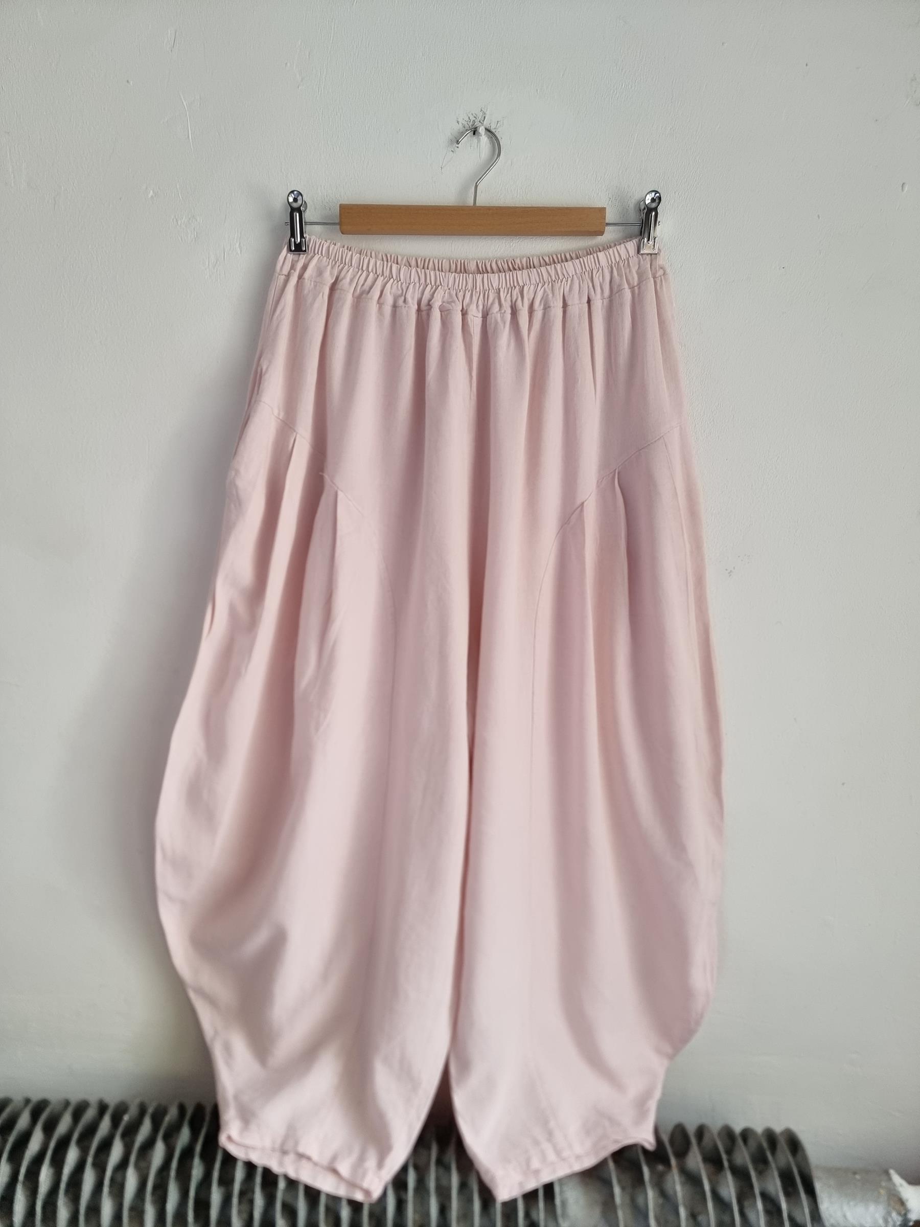 Spodnie baggy pudrowy róż lniane włoskie niski krok M / L