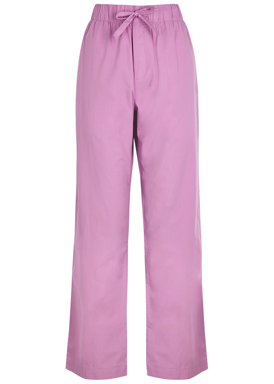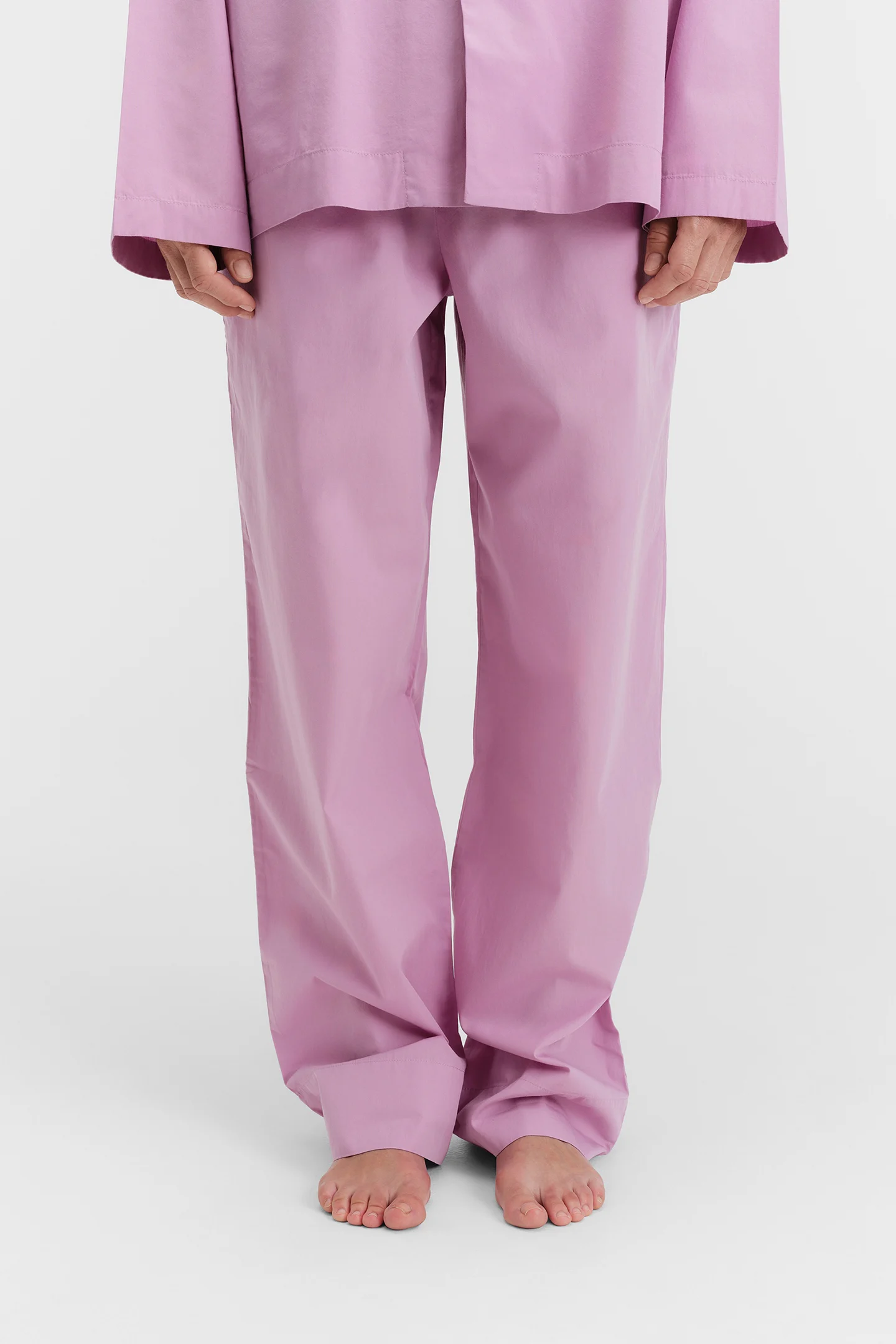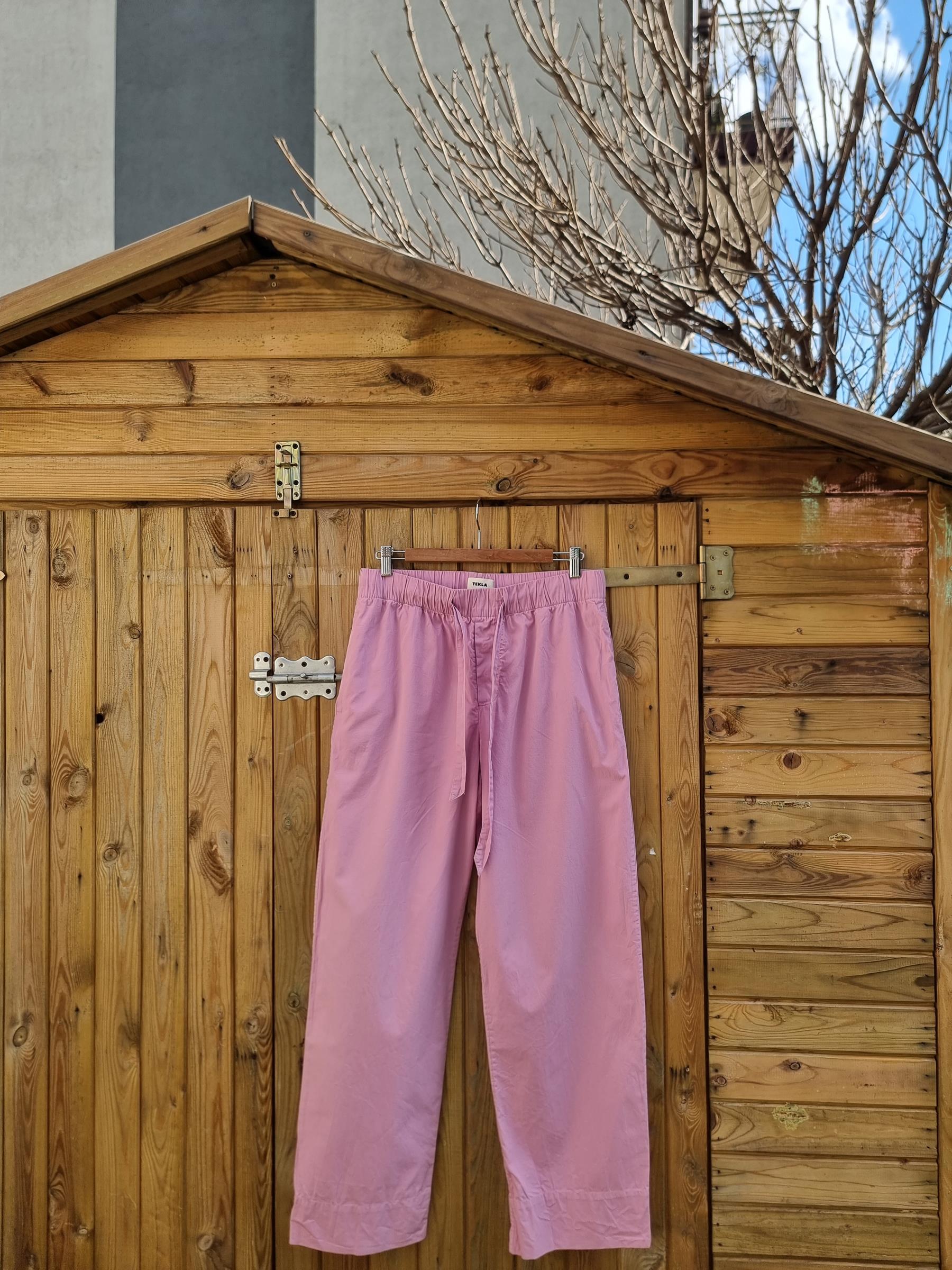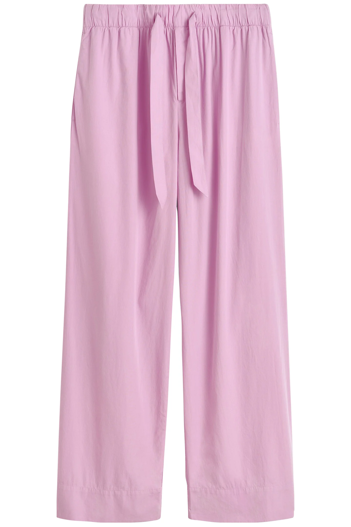 Spodnie piżamowe marki TEKLA. Model: unisex poplin pyjamas pants. Kolor: purple pink. Wykonane z delikatnej świetnej jakości bawełny organicznej. W pasie gumka i pasek. Oeko-Tex® Certified