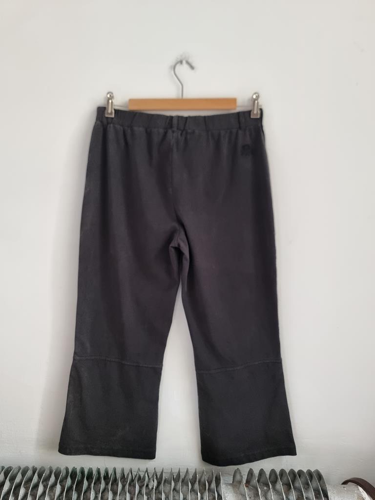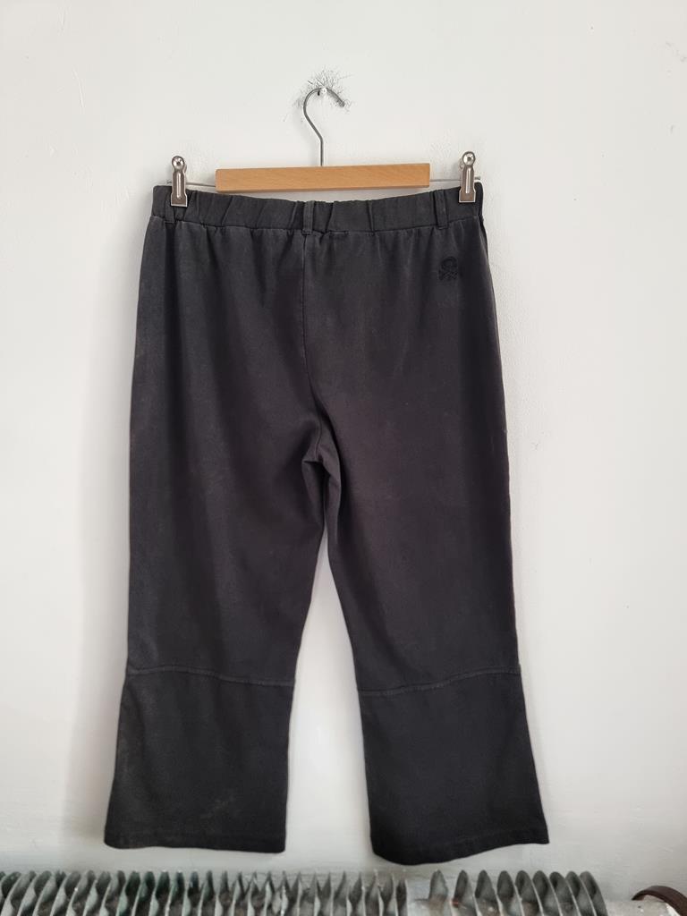 Czarne spodnie dresowe z bawełny W pasie gumka. Szerokie nogawki z tyłu przeszycia.