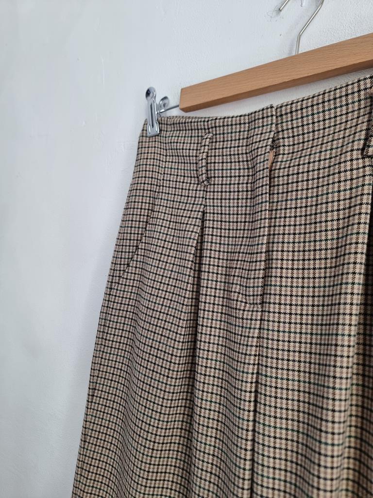 Klasyczne spodnie w kratkę w odcieniach brązu.