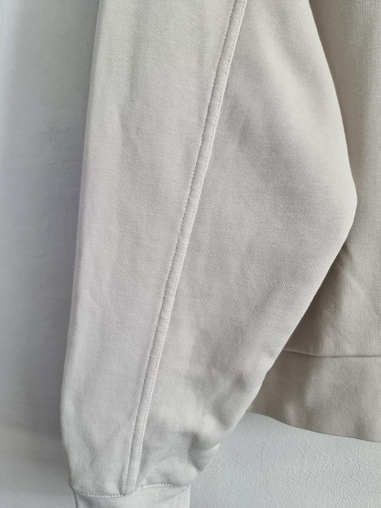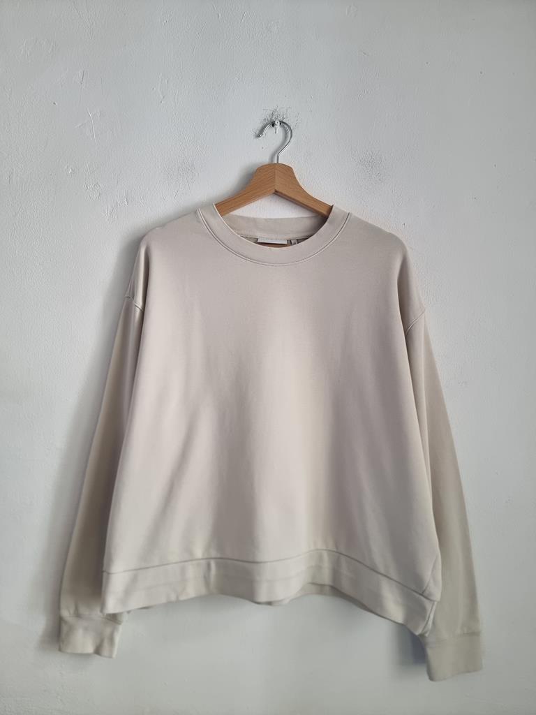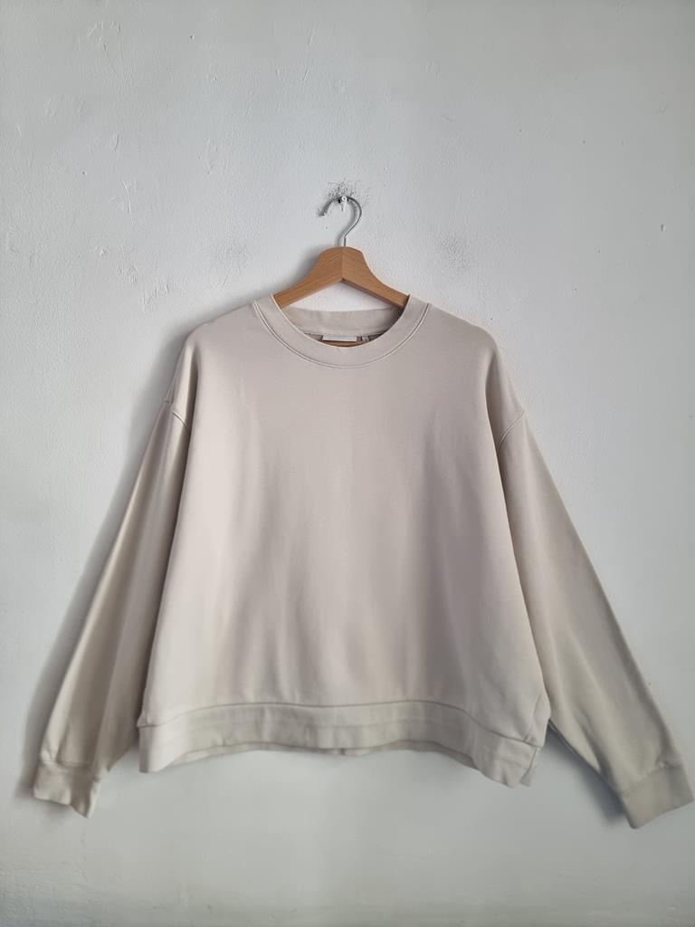 Kremowa bluza o luźnym kroju zakładana przez głowę.