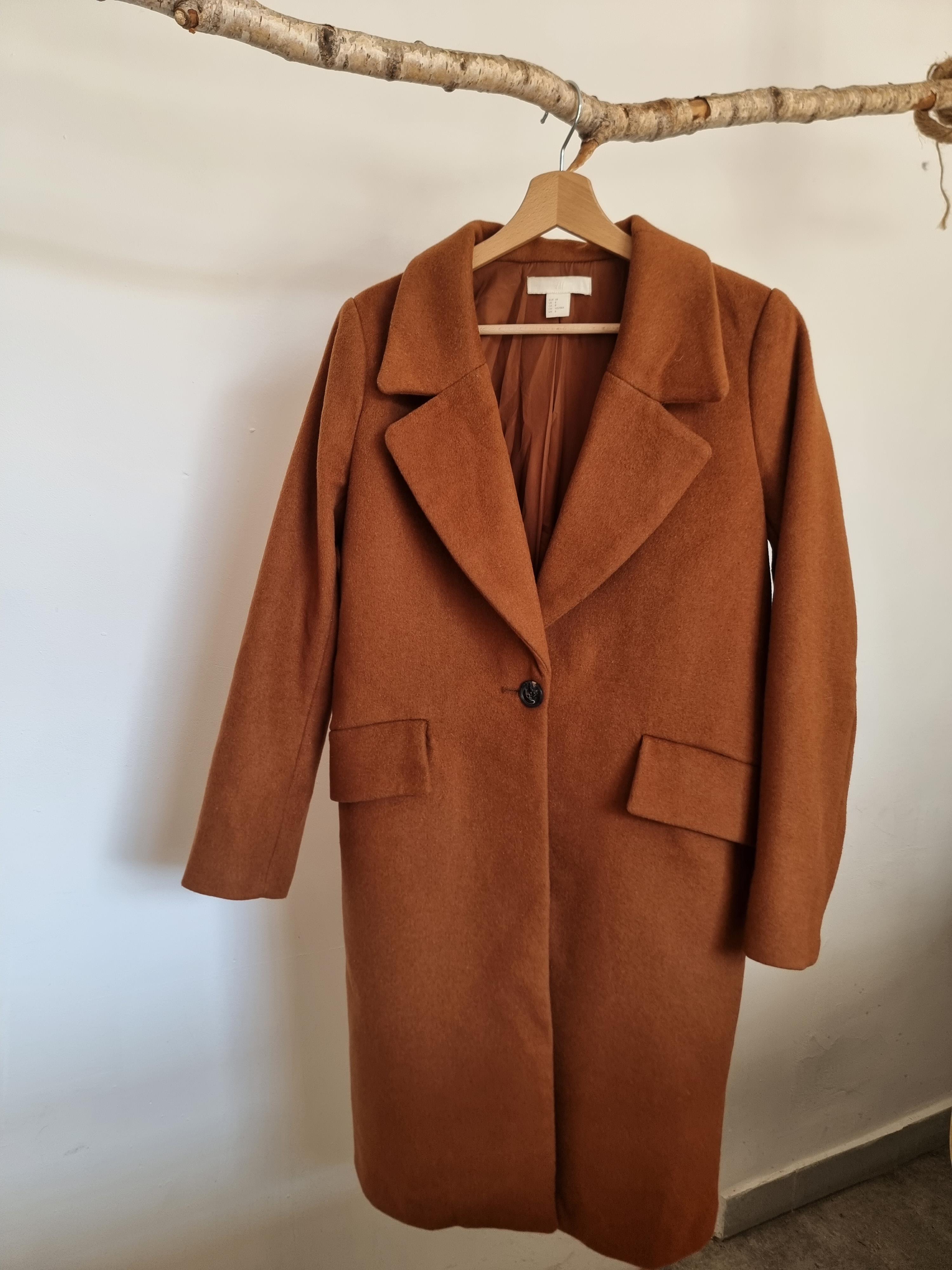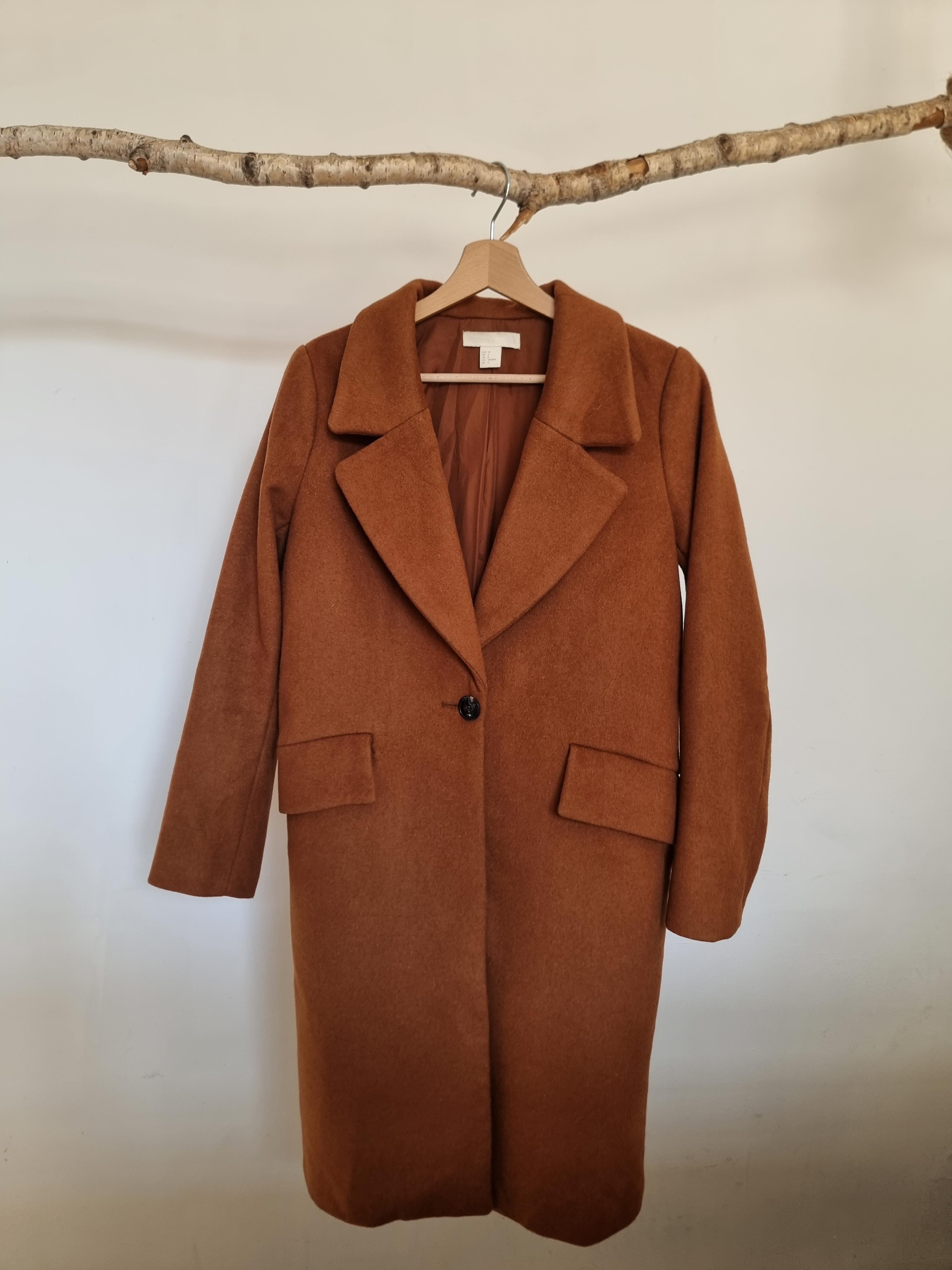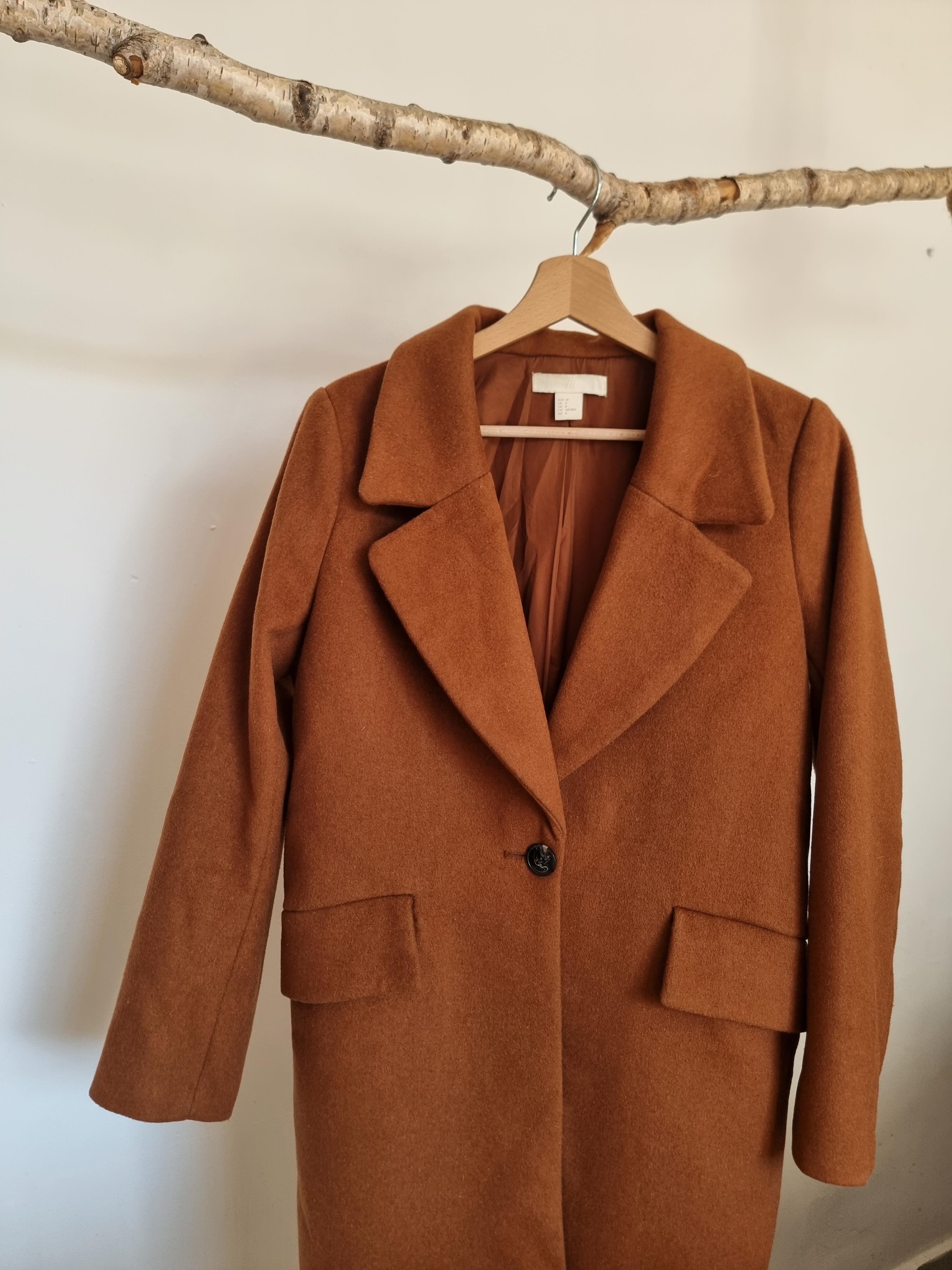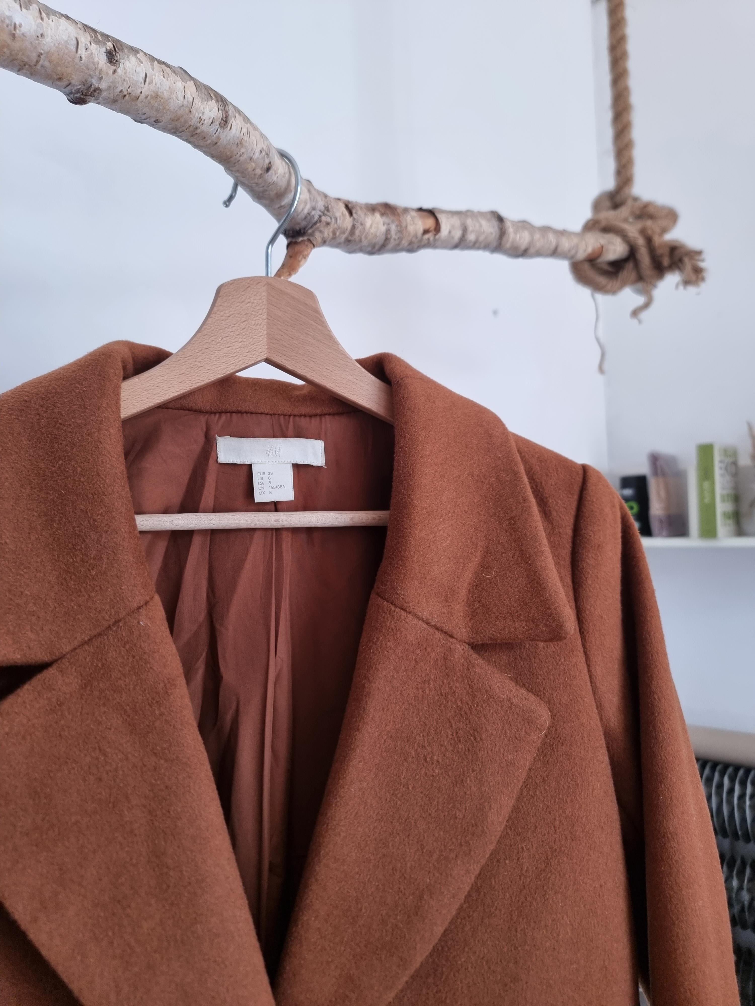 Wełniany płaszcz H&M 38 M brązowy jasny brąz