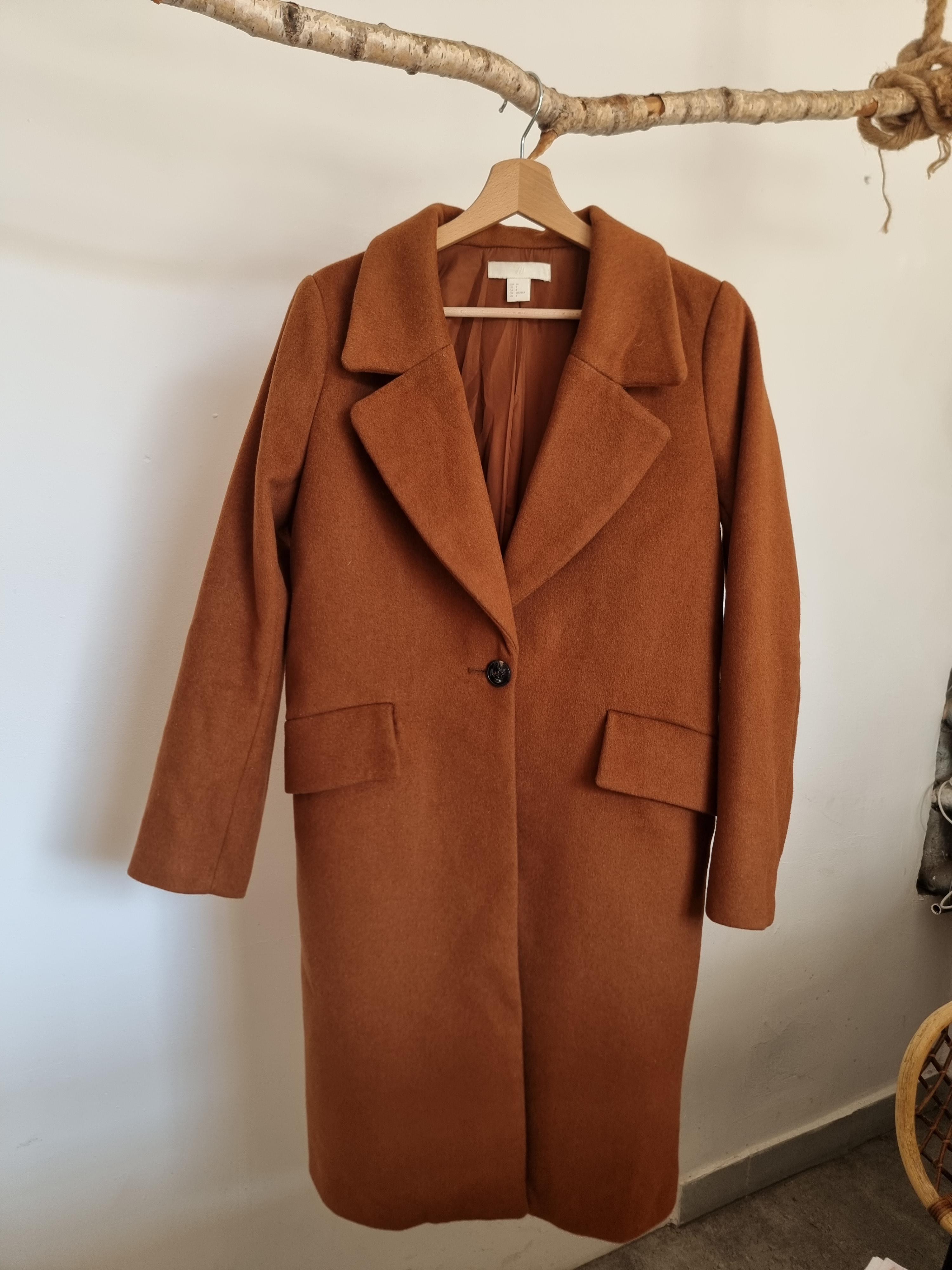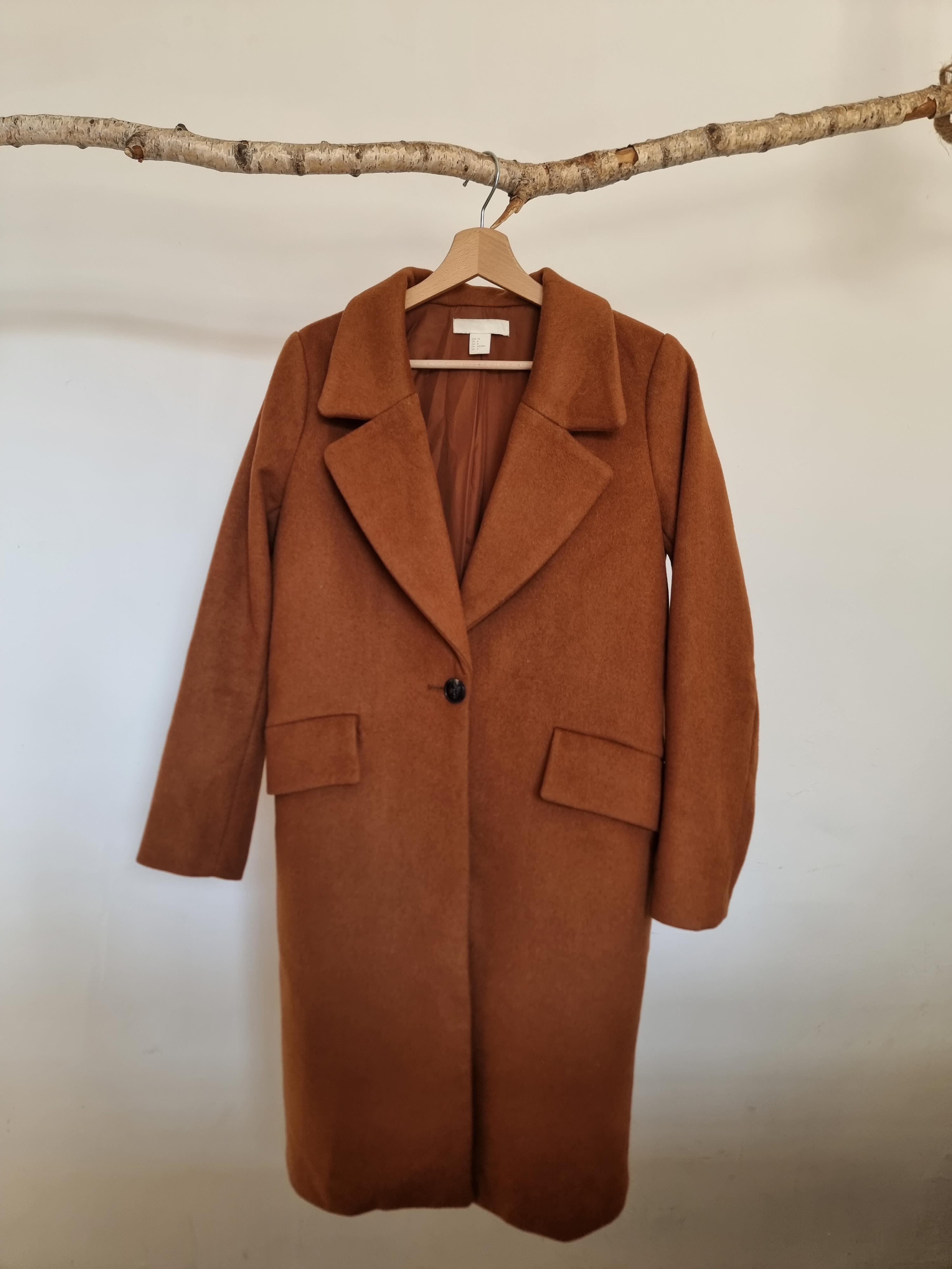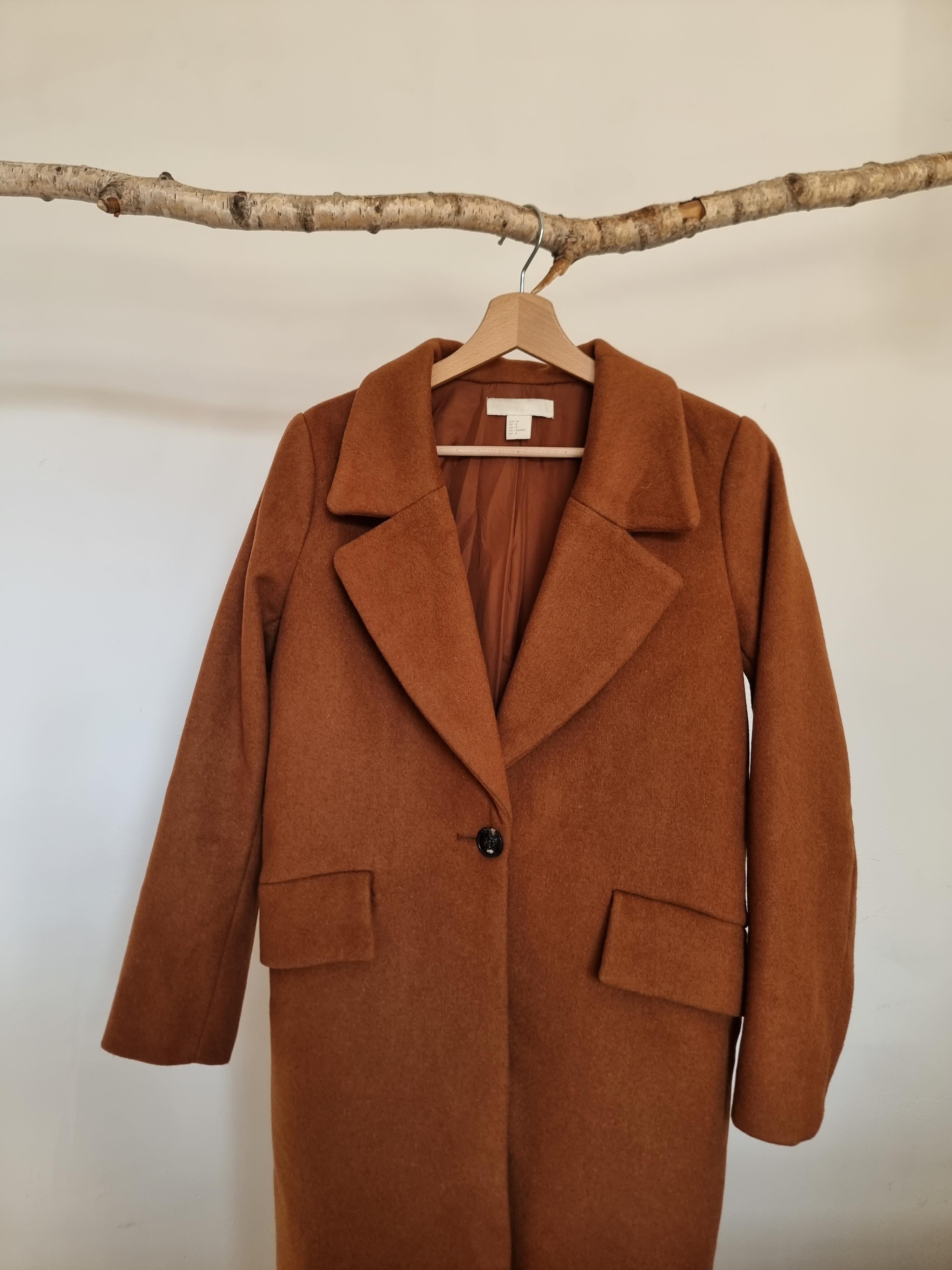 Wełniany płaszcz H&M 38 M brązowy jasny brąz