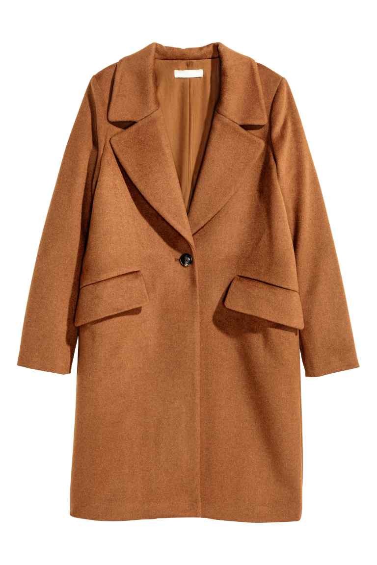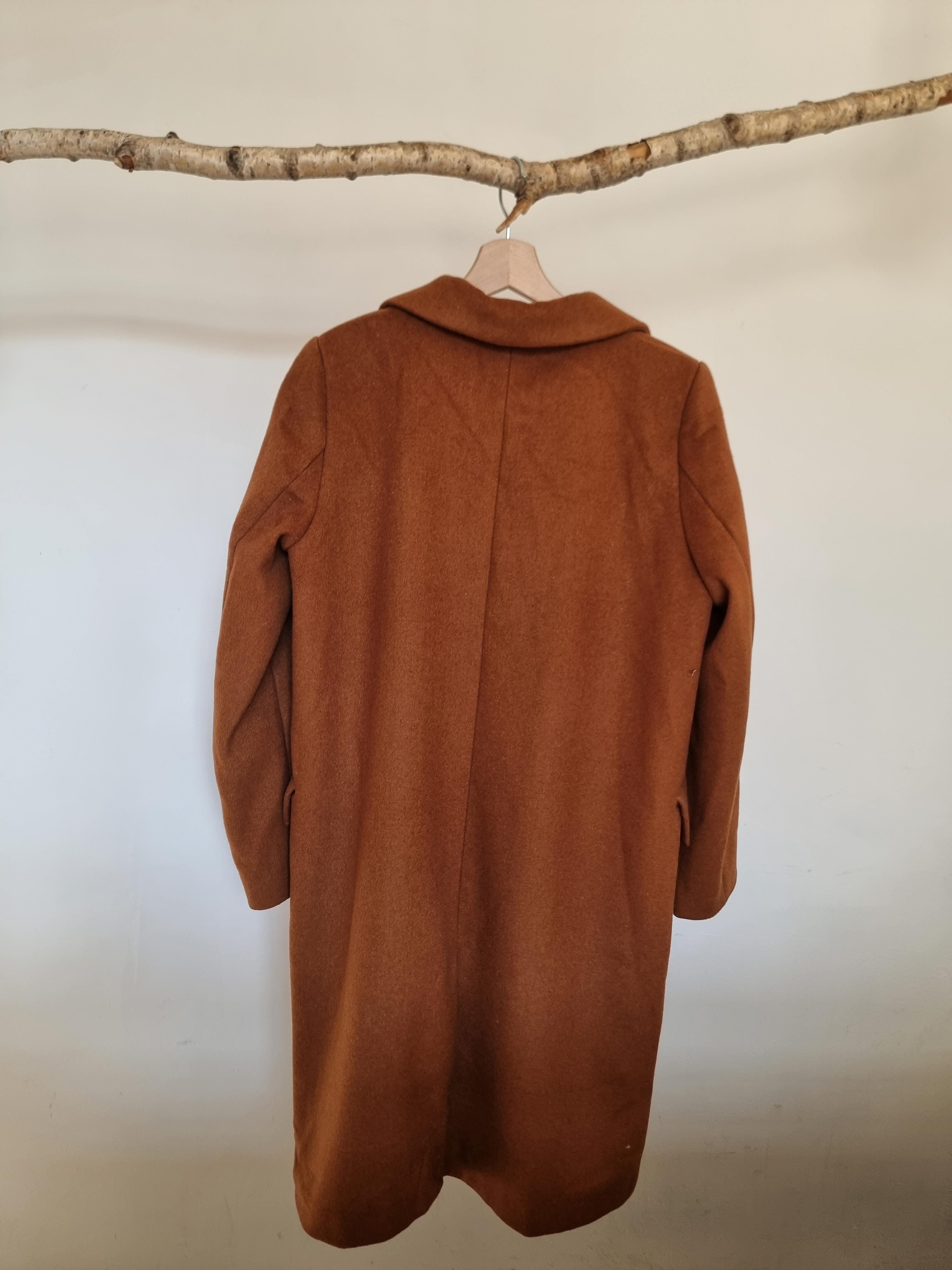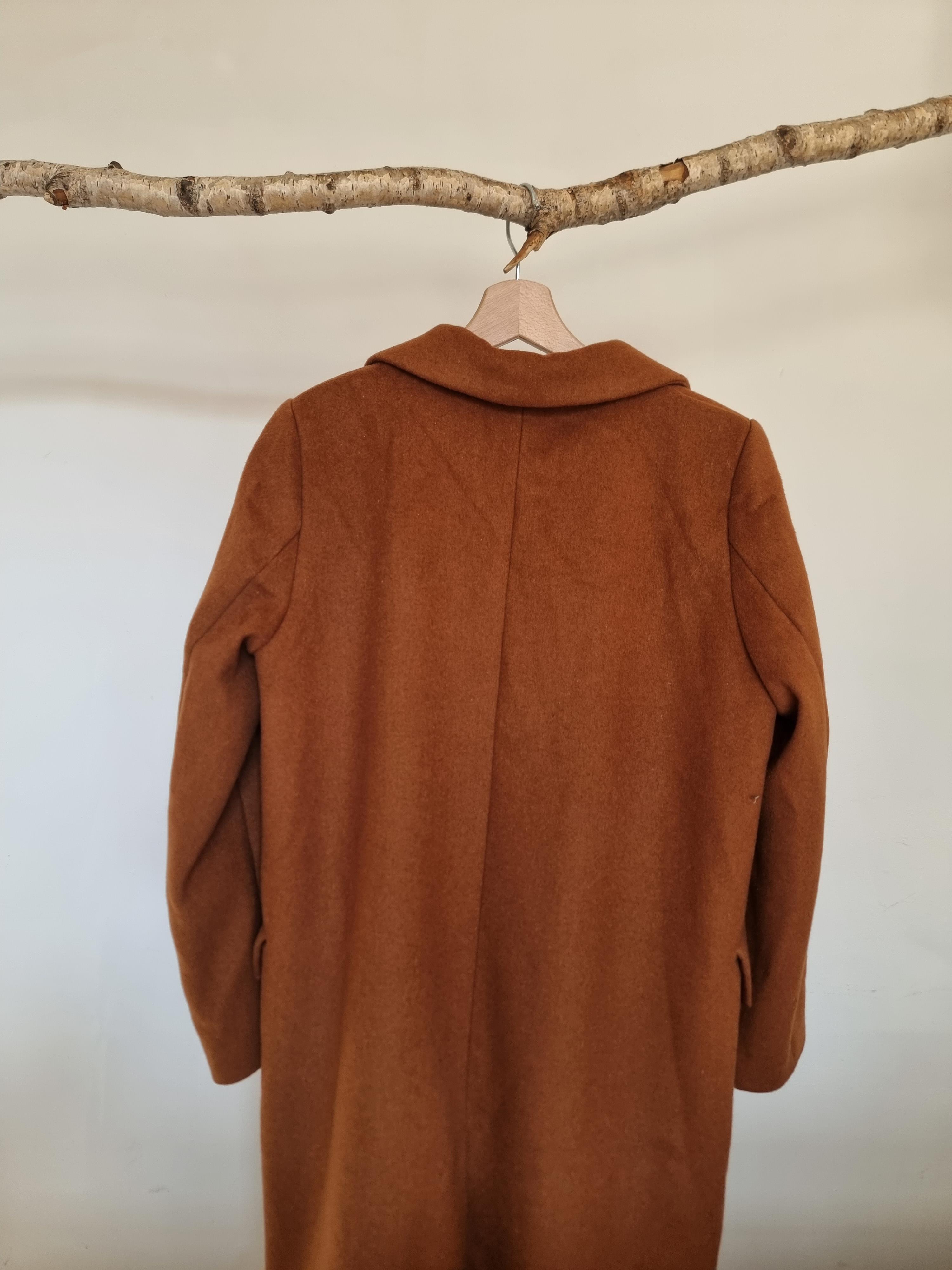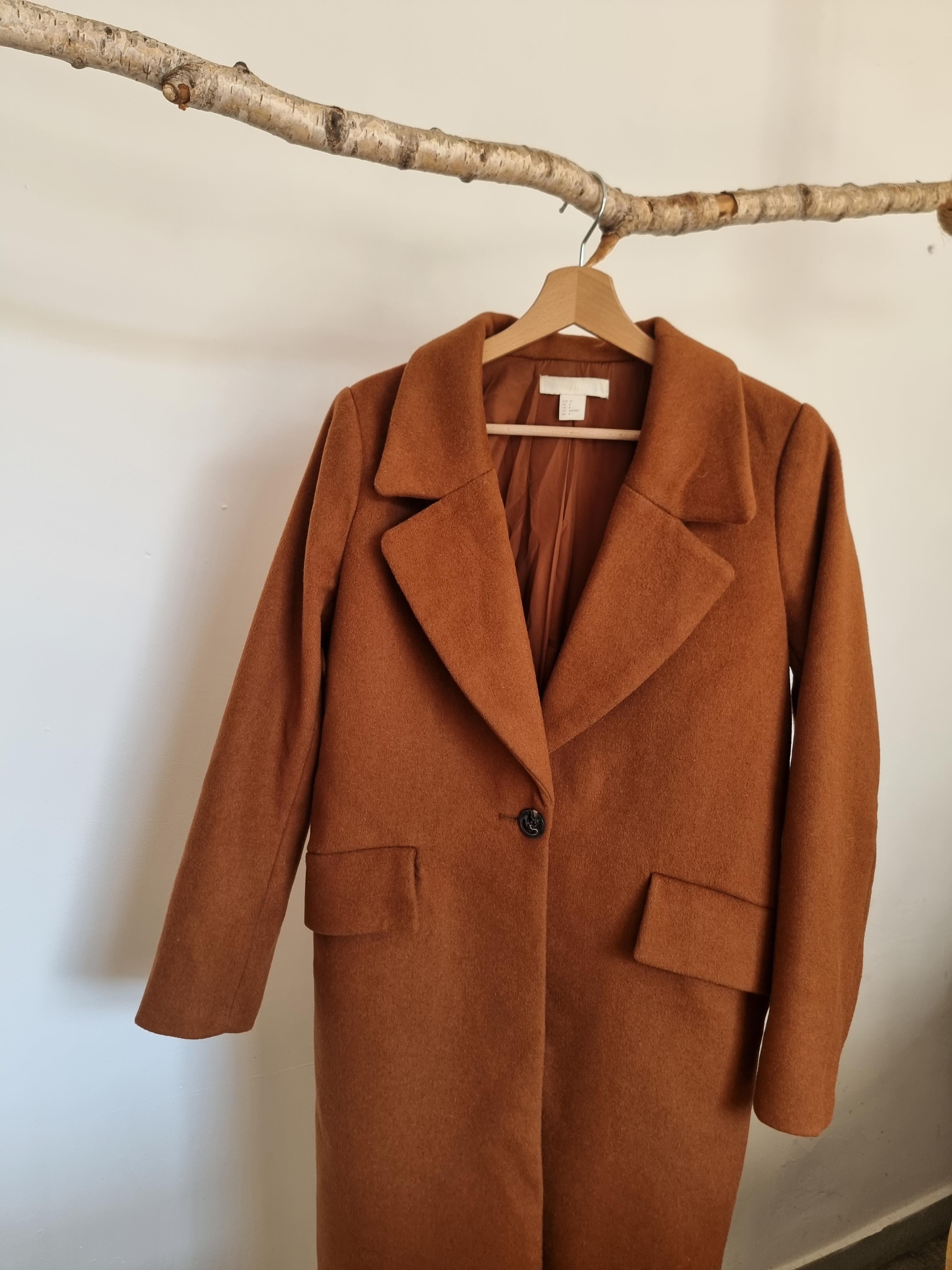 Wełniany płaszcz H&M 38 M brązowy jasny brąz