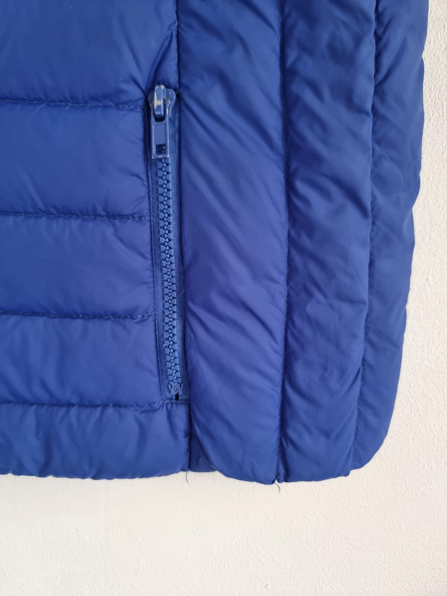 Kobaltowa kamizelka zapinana na zamek z wypełnieniem naturalnym ( puchowa).