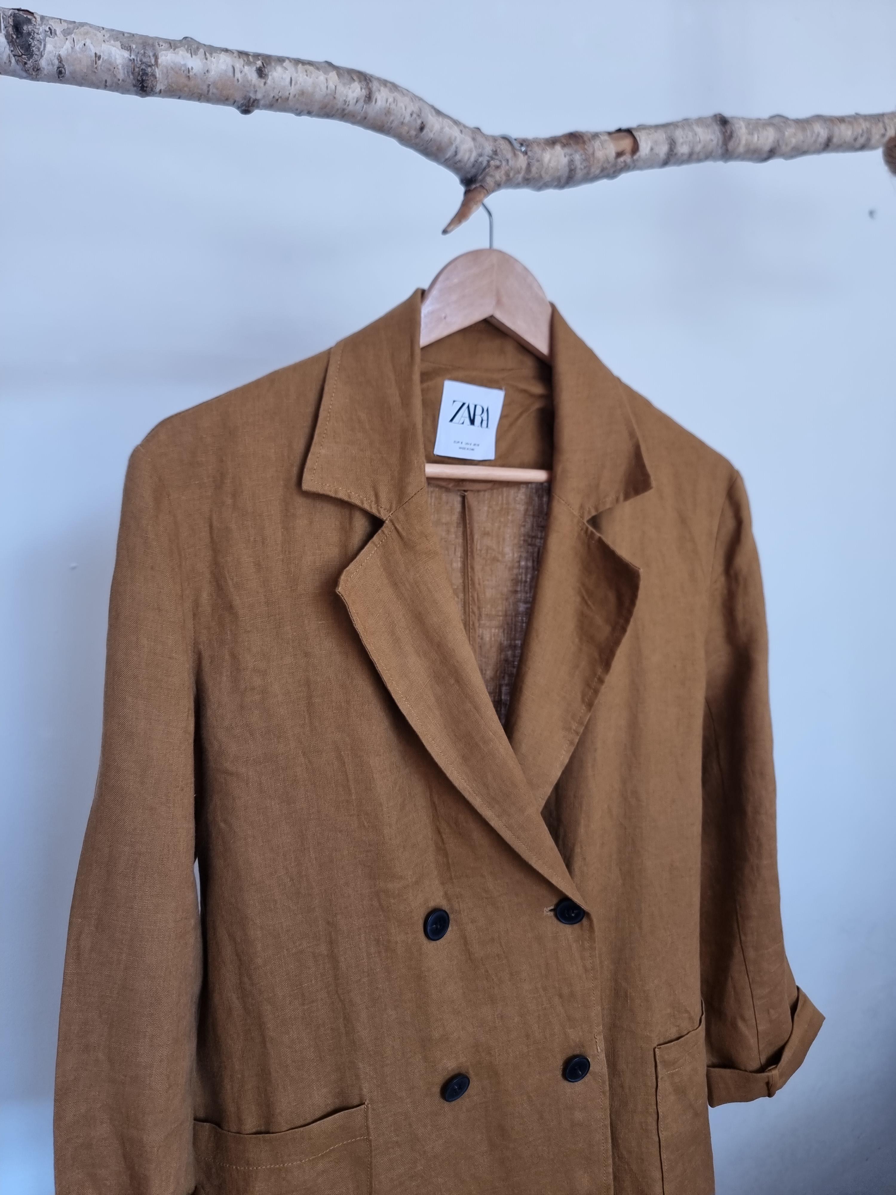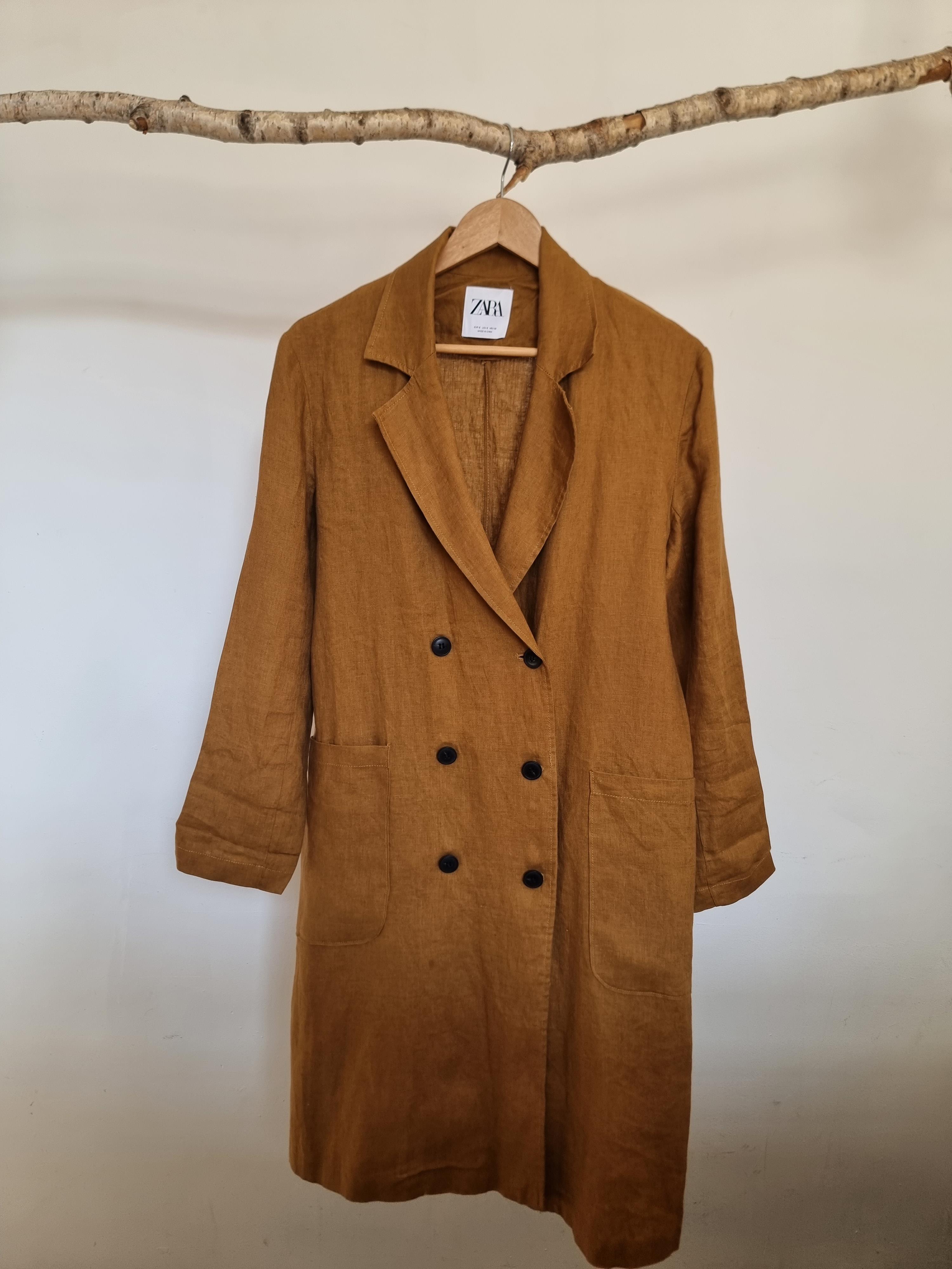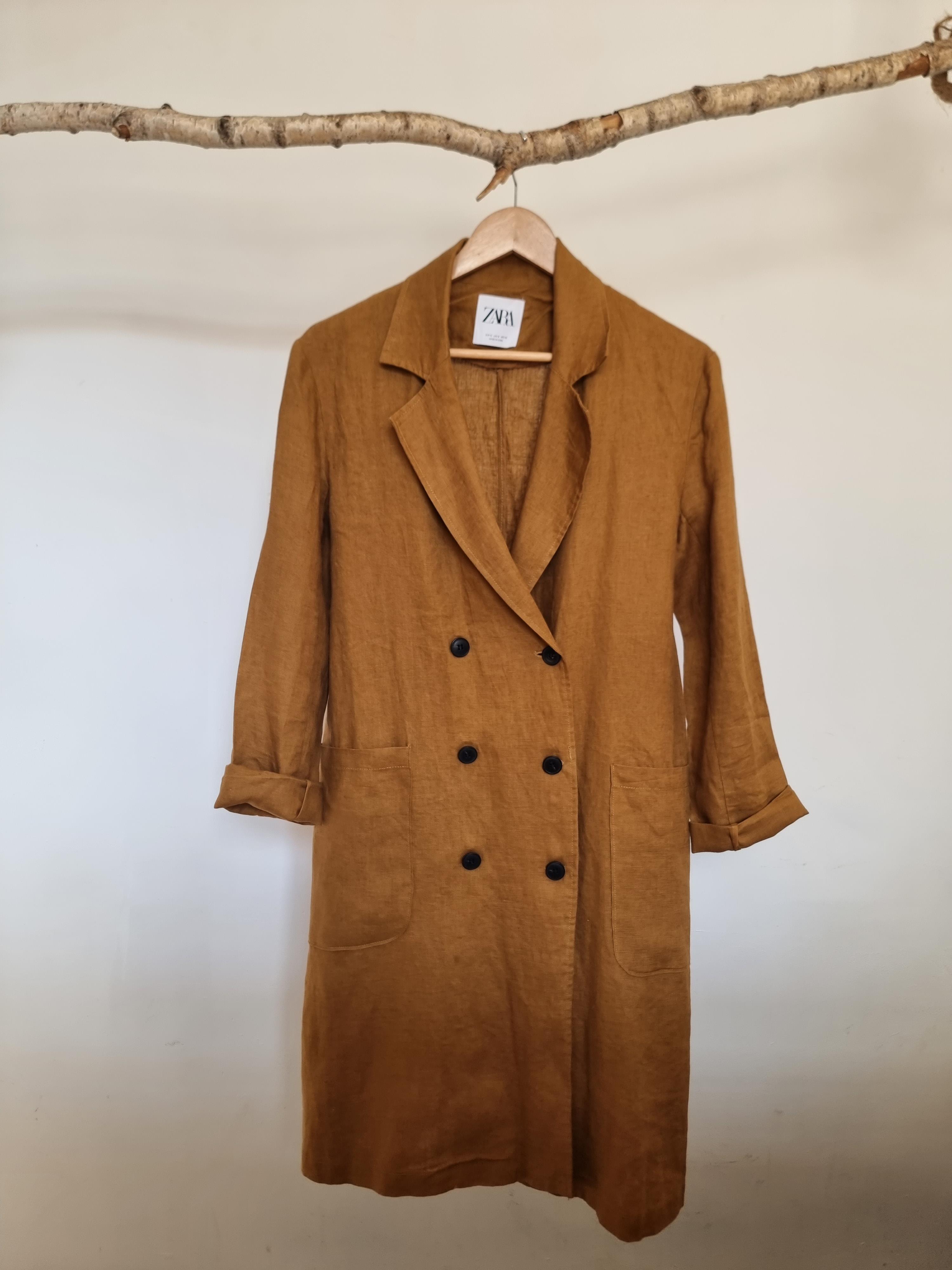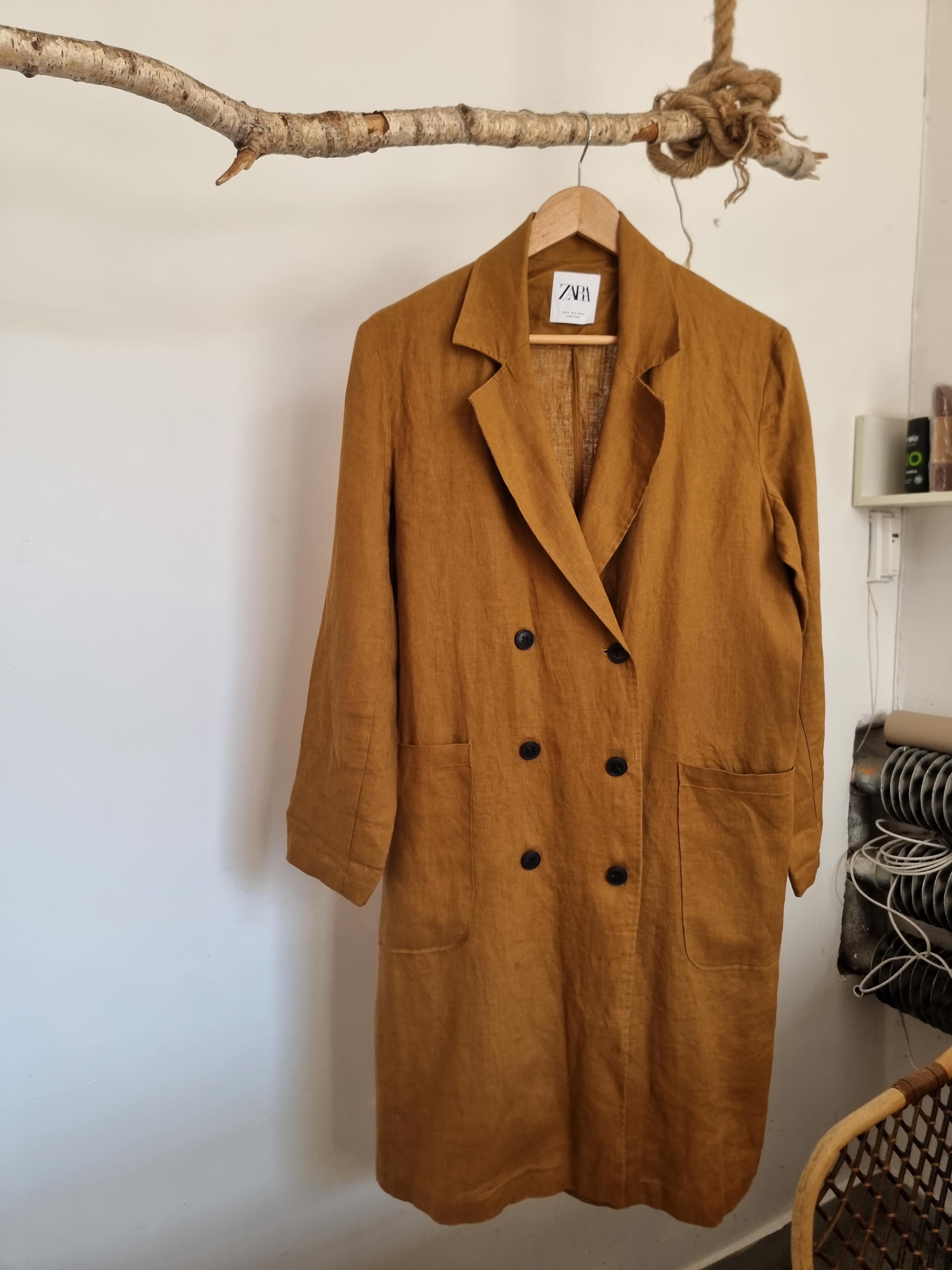 ZARA płaszcz lniany miodowy len S 36