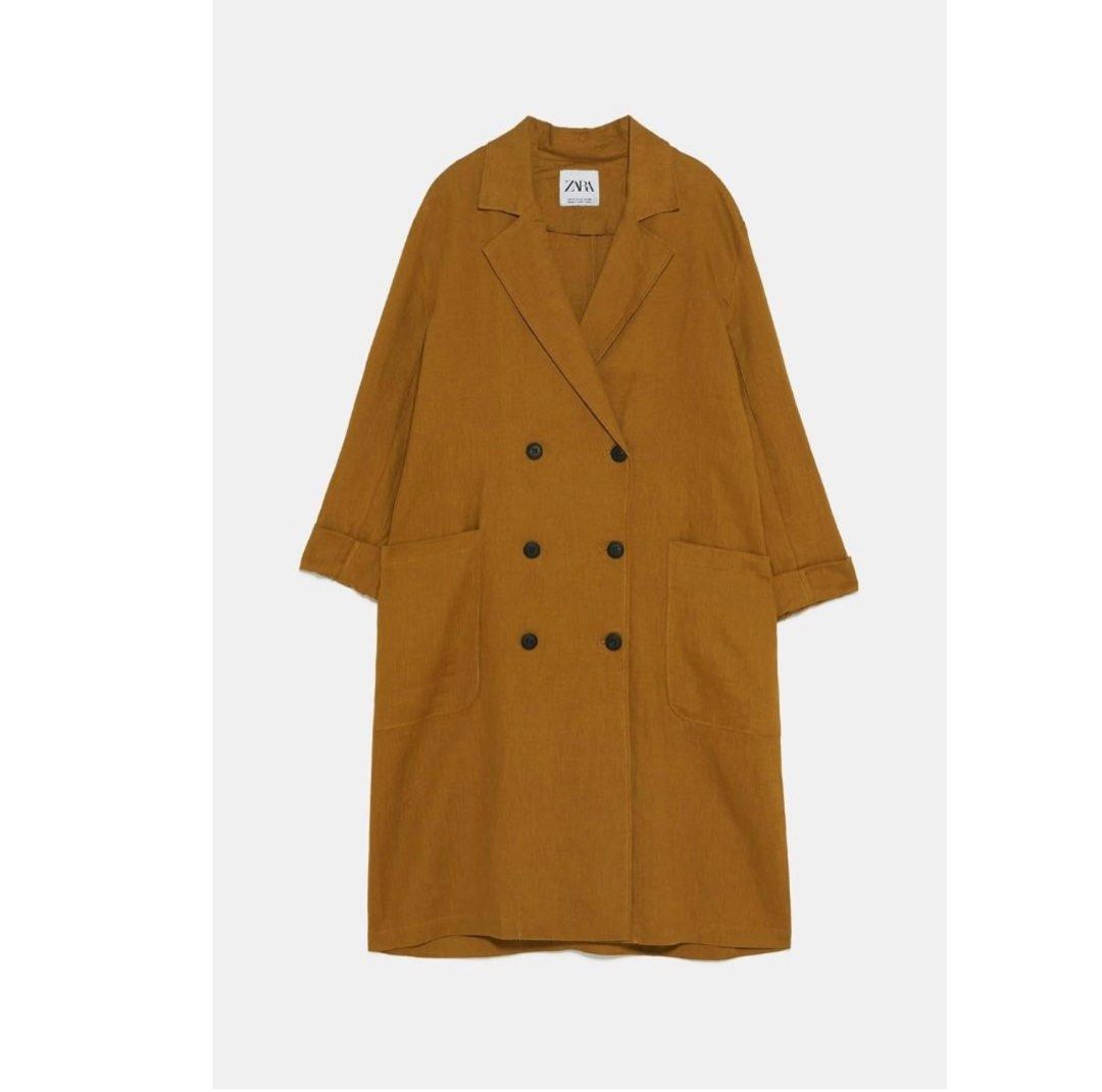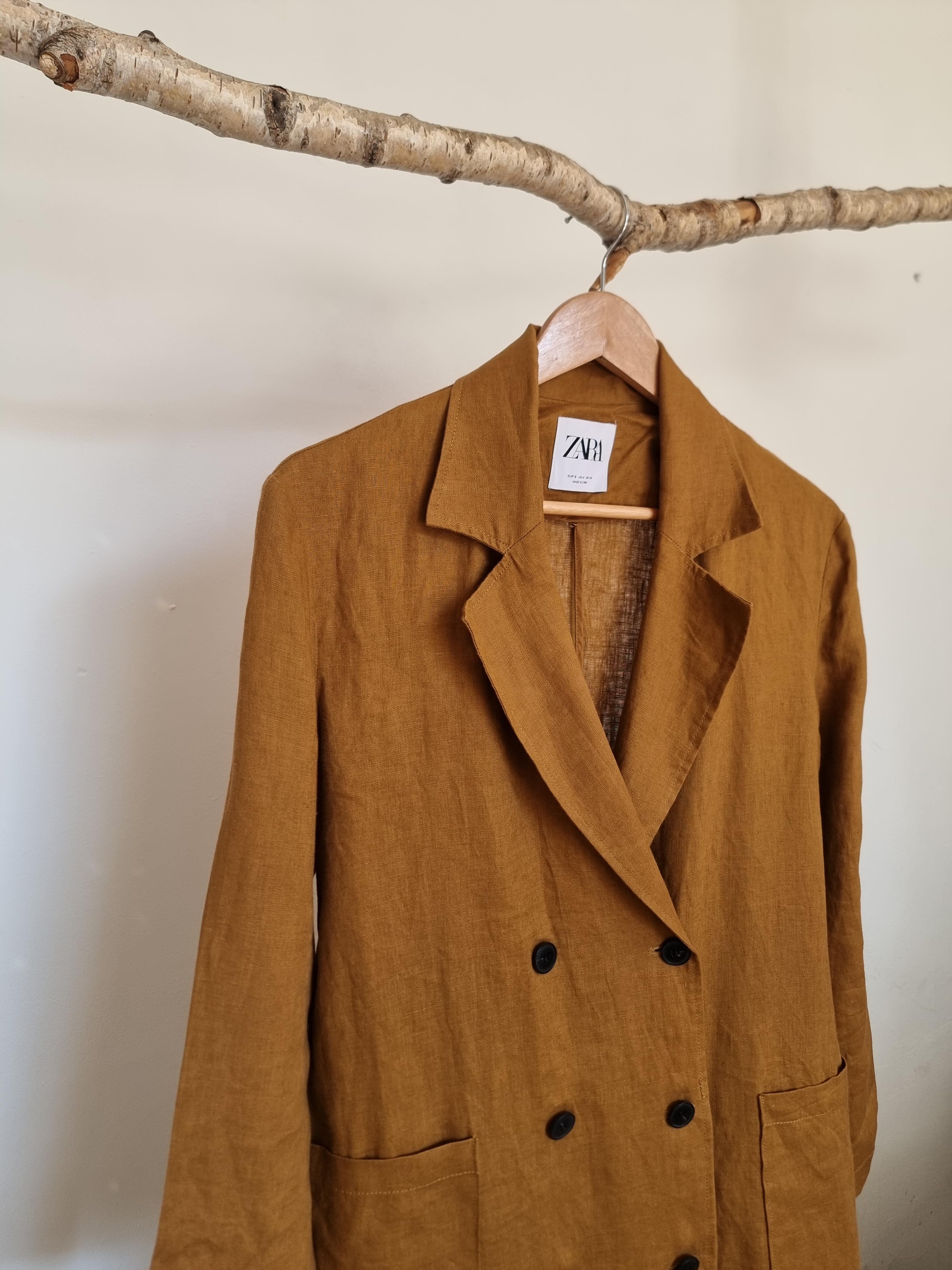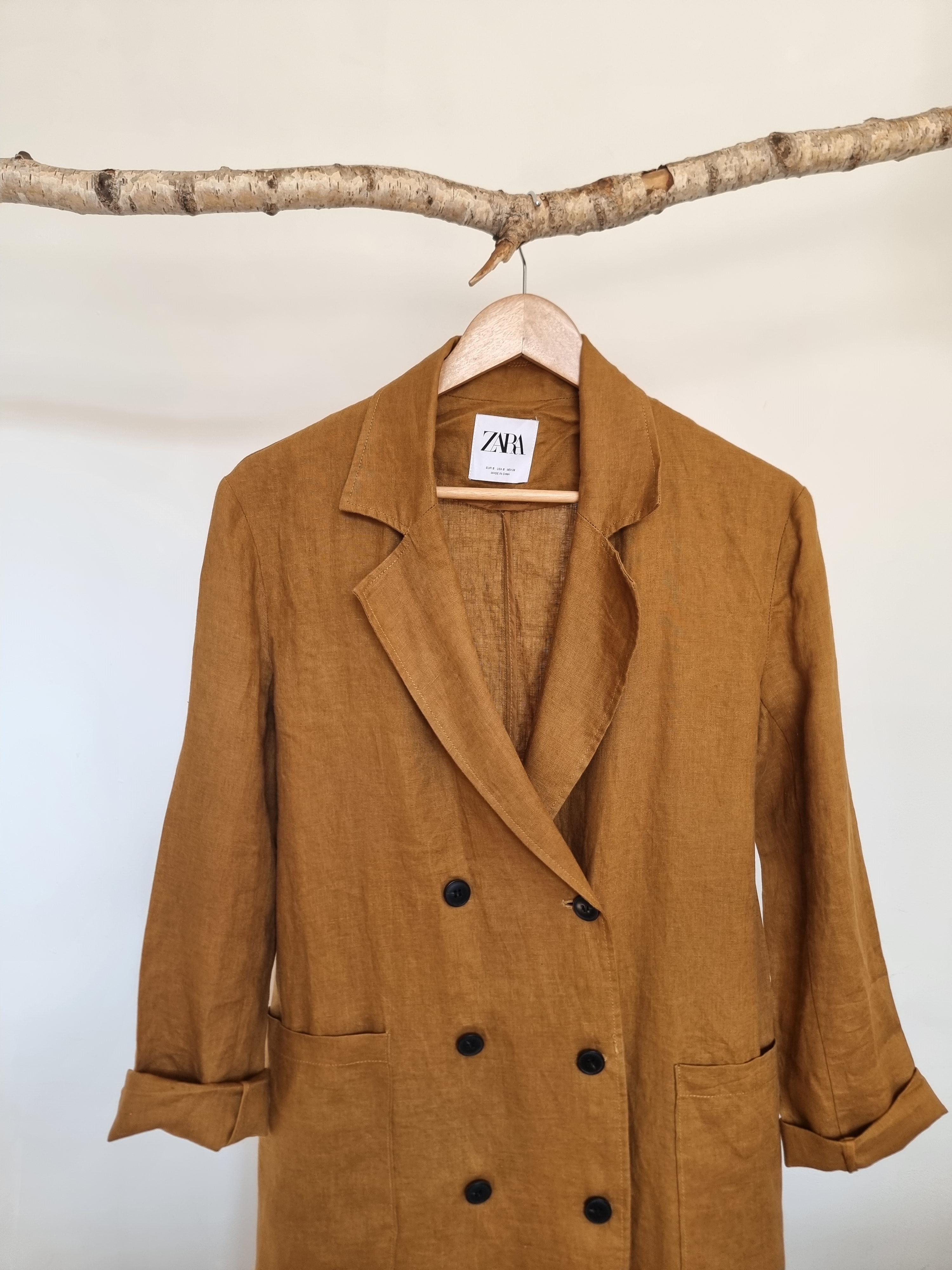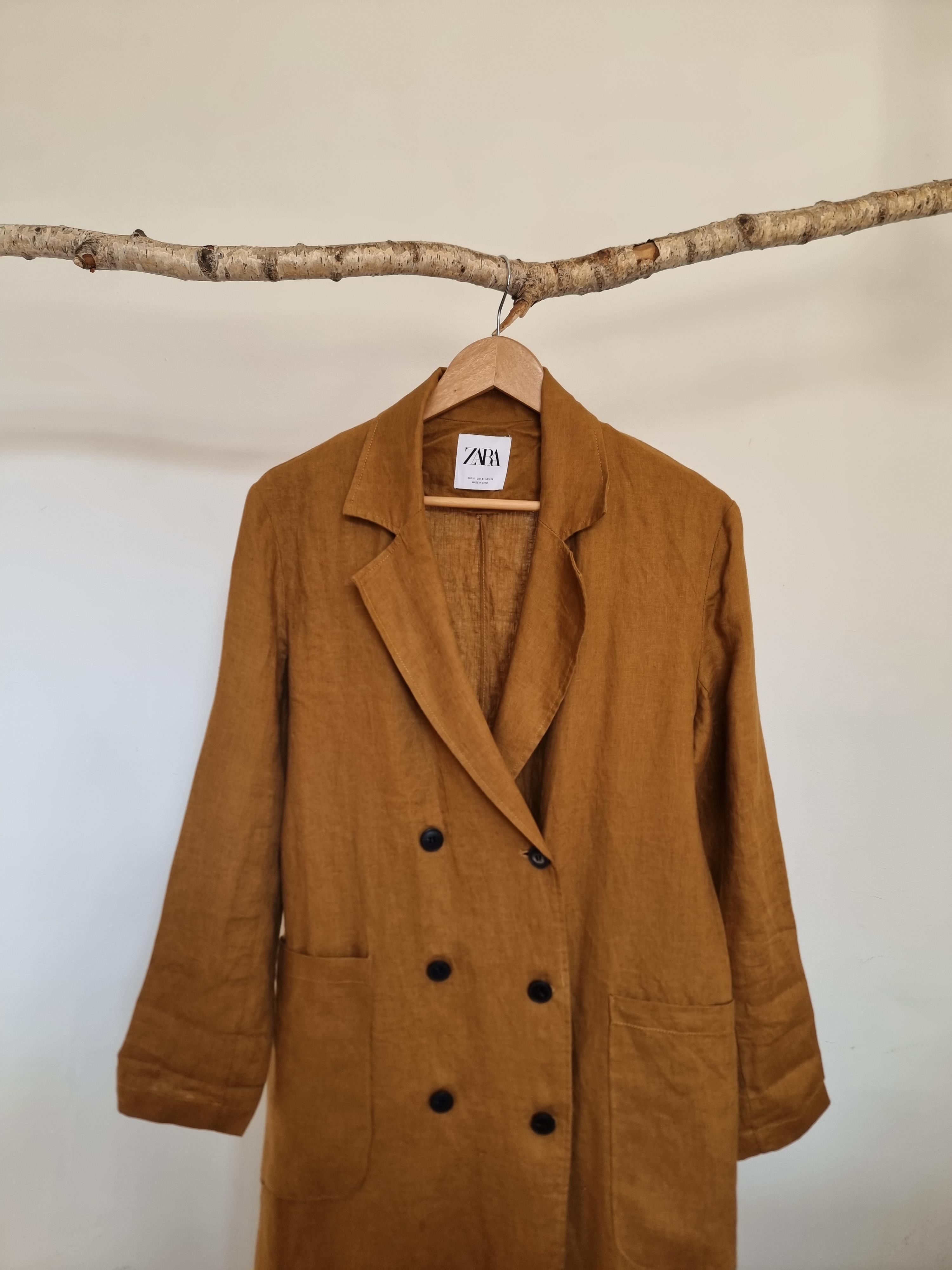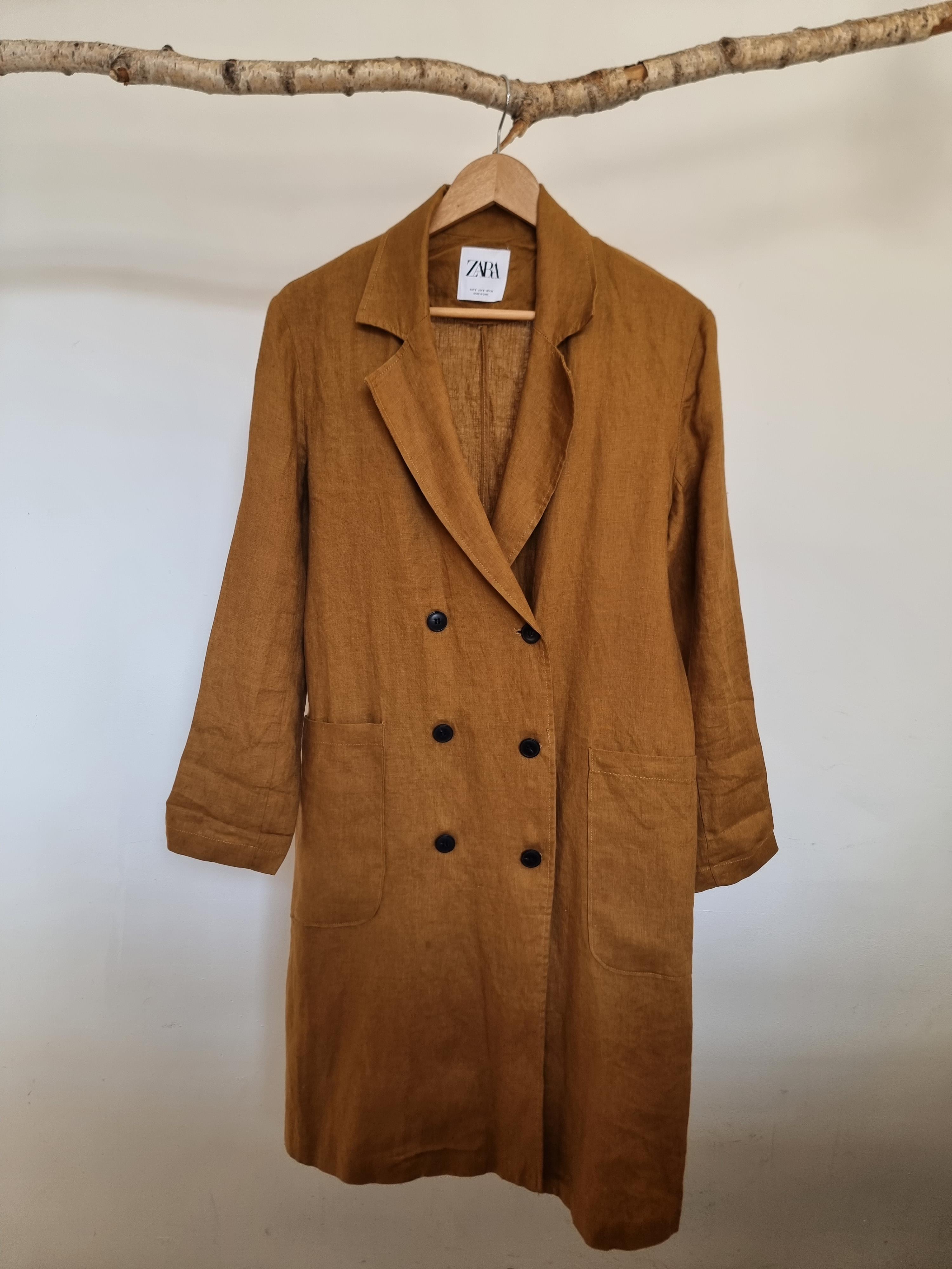 ZARA płaszcz lniany miodowy len S 36
