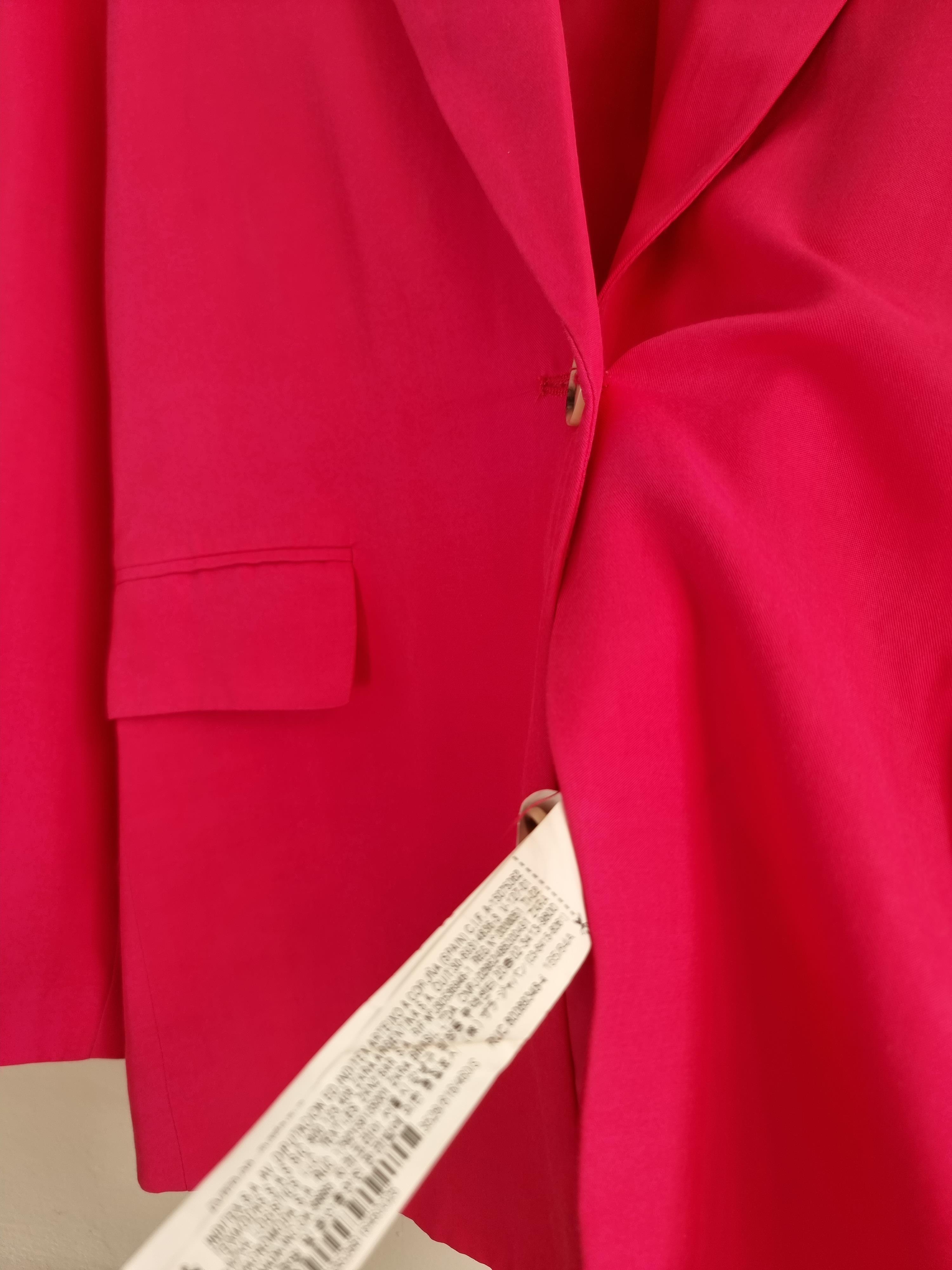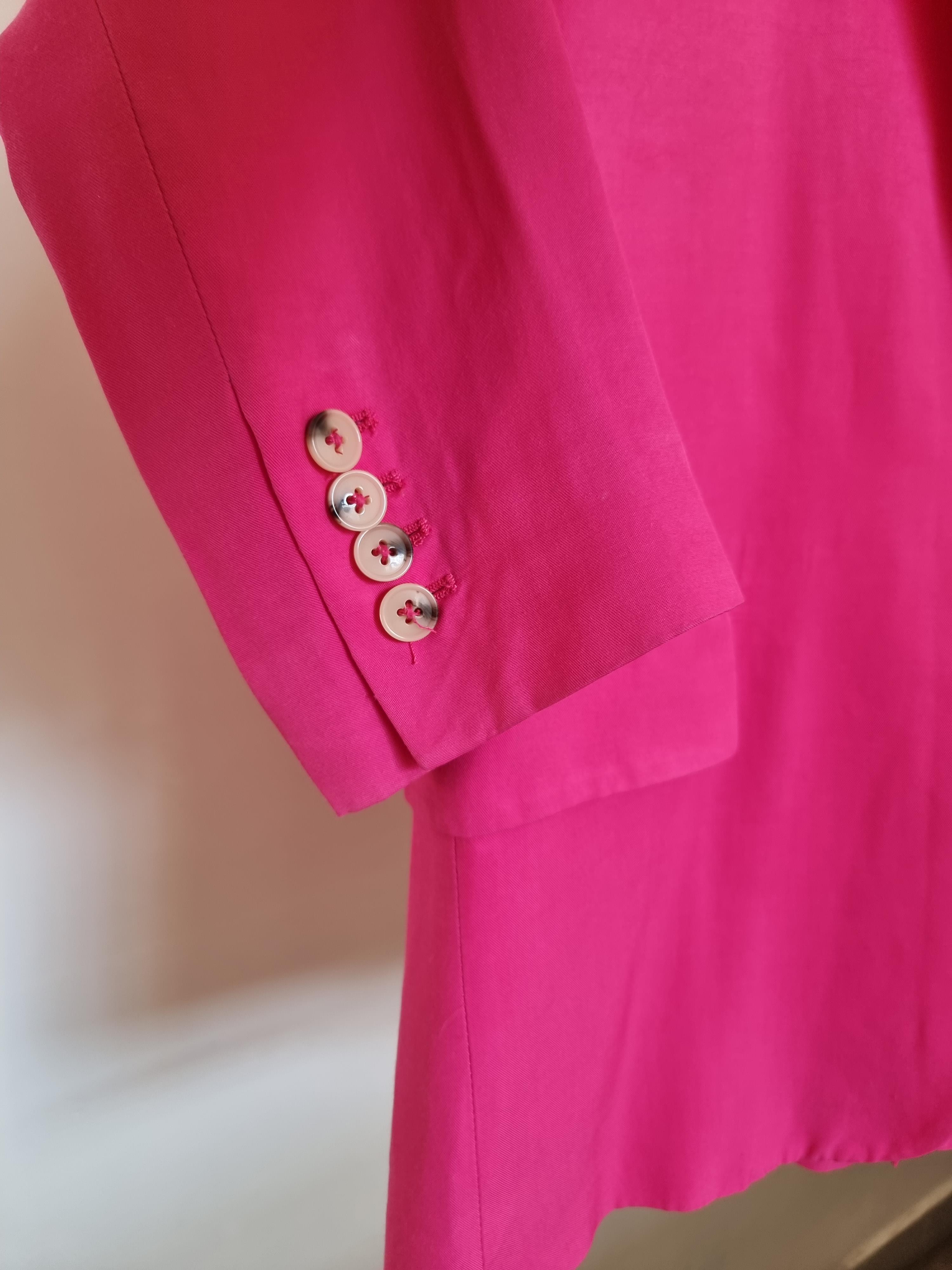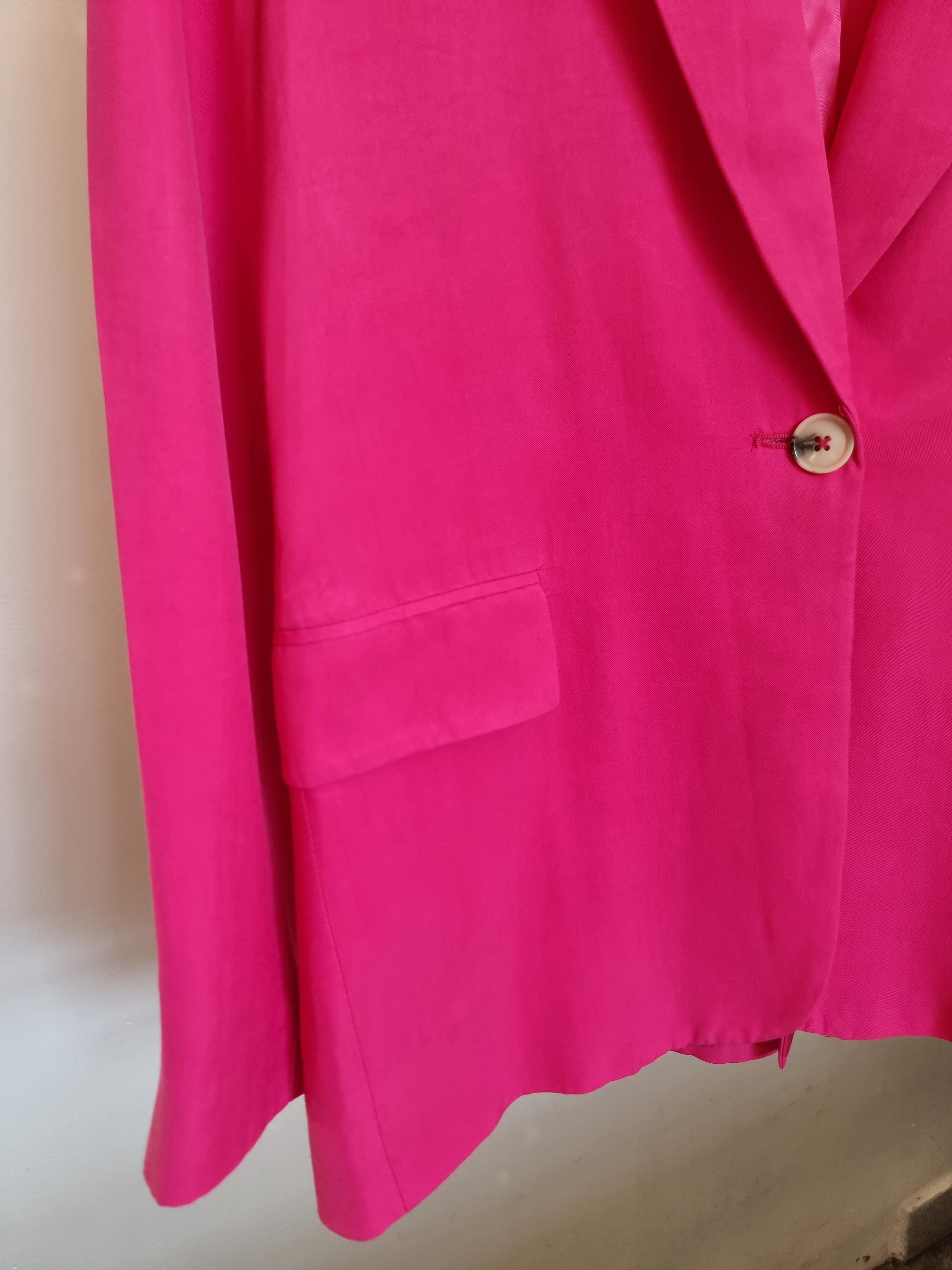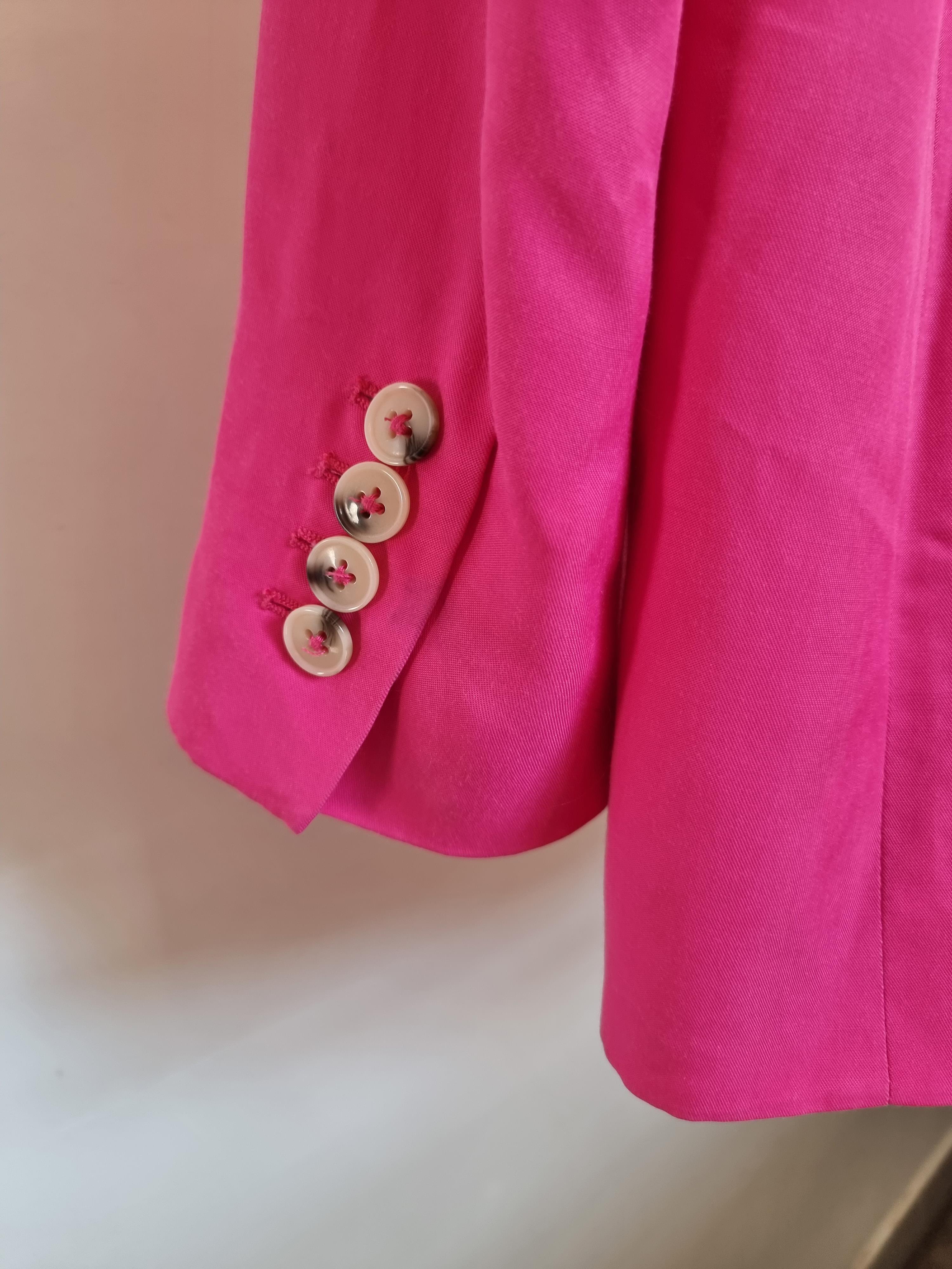 Różowa marynarka wykonana z wiskozy z domieszką modalu. Zapinana na guzik. Posiada kieszenie.