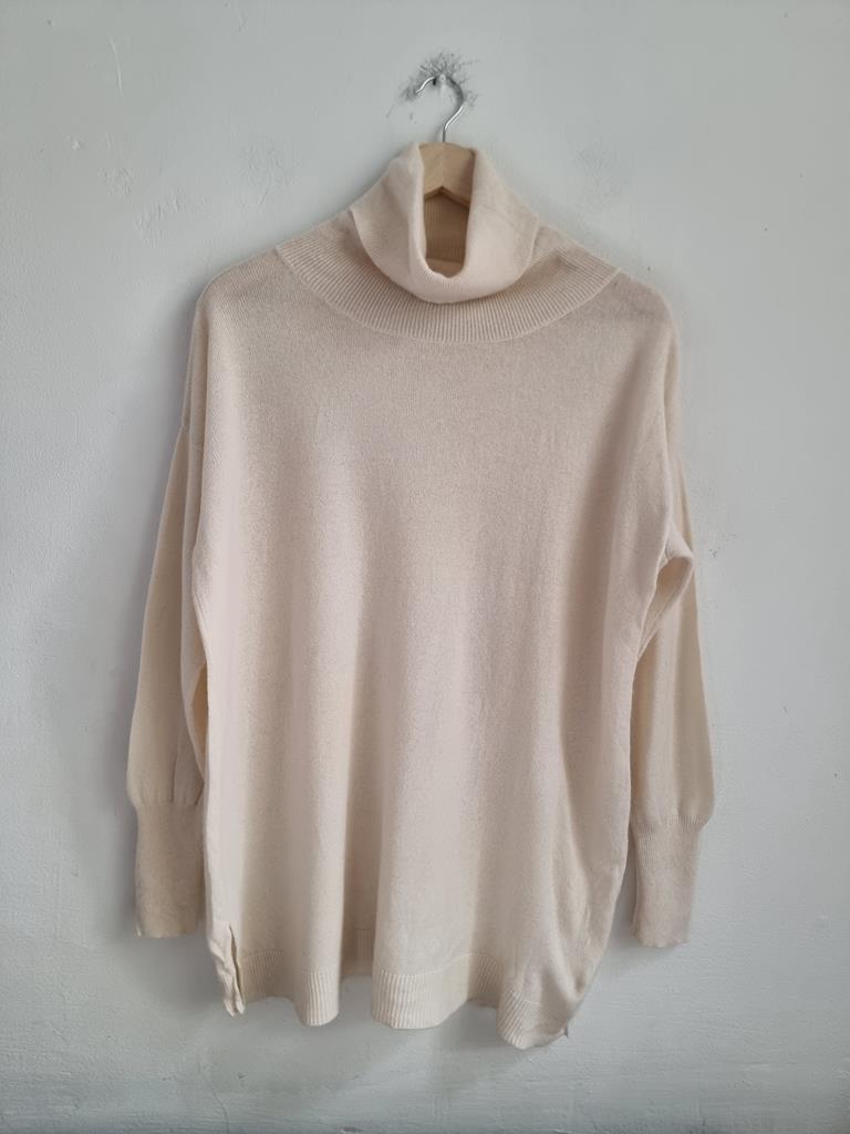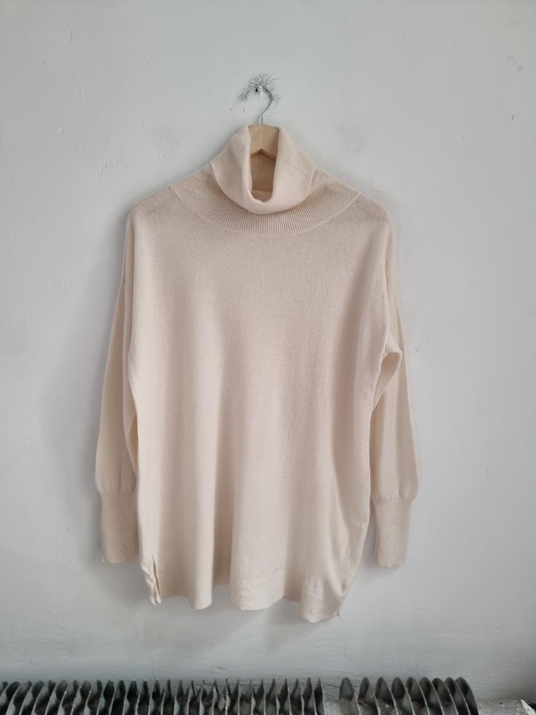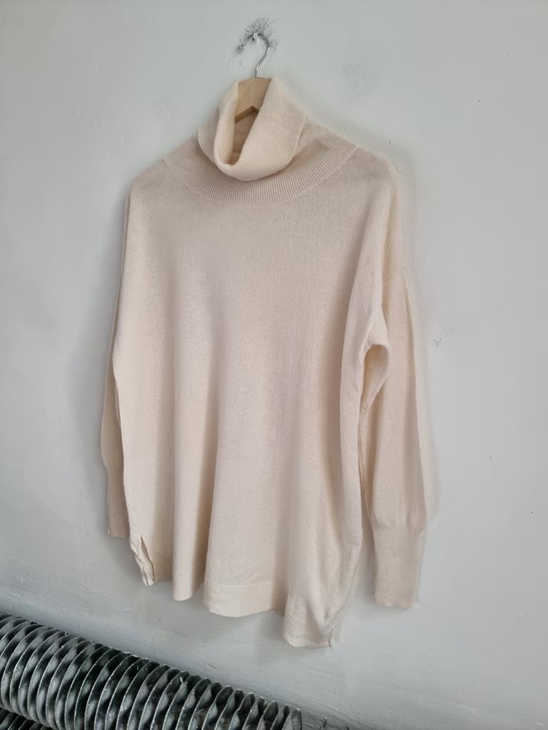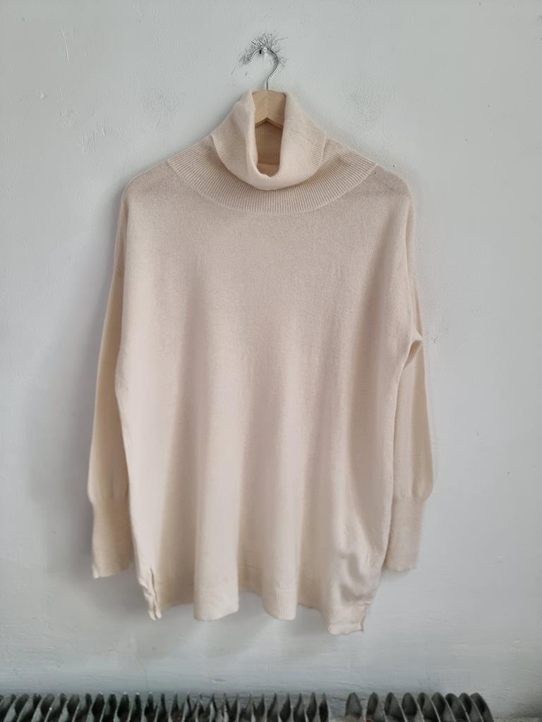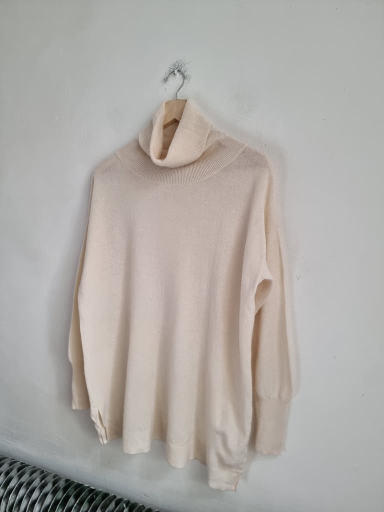 Kremowy kaszmirowy golf marki wild wool cashmere o oversize'owym kroju.