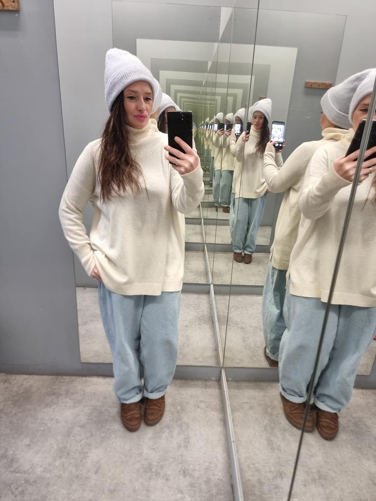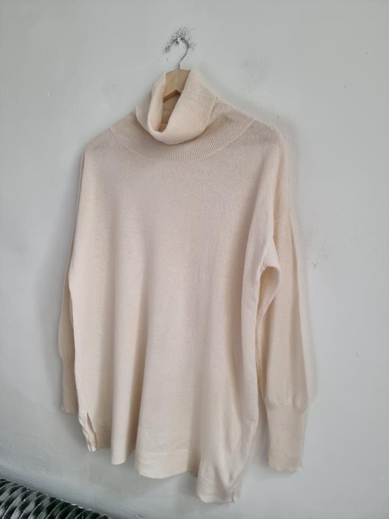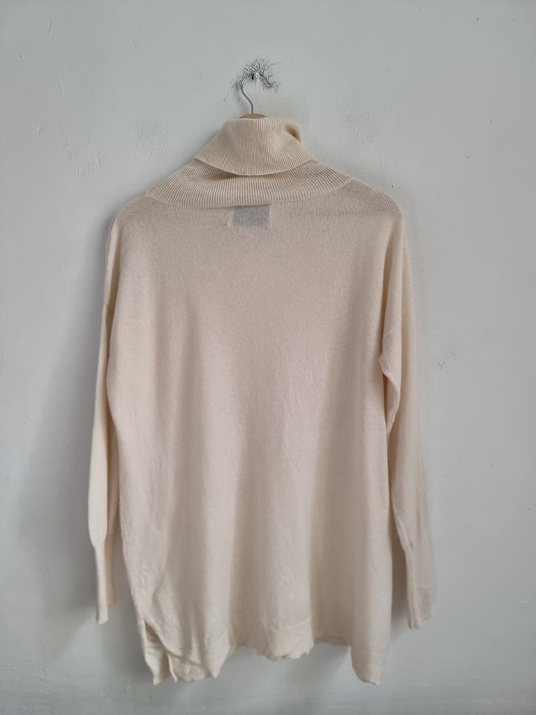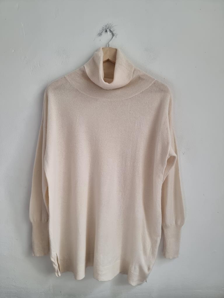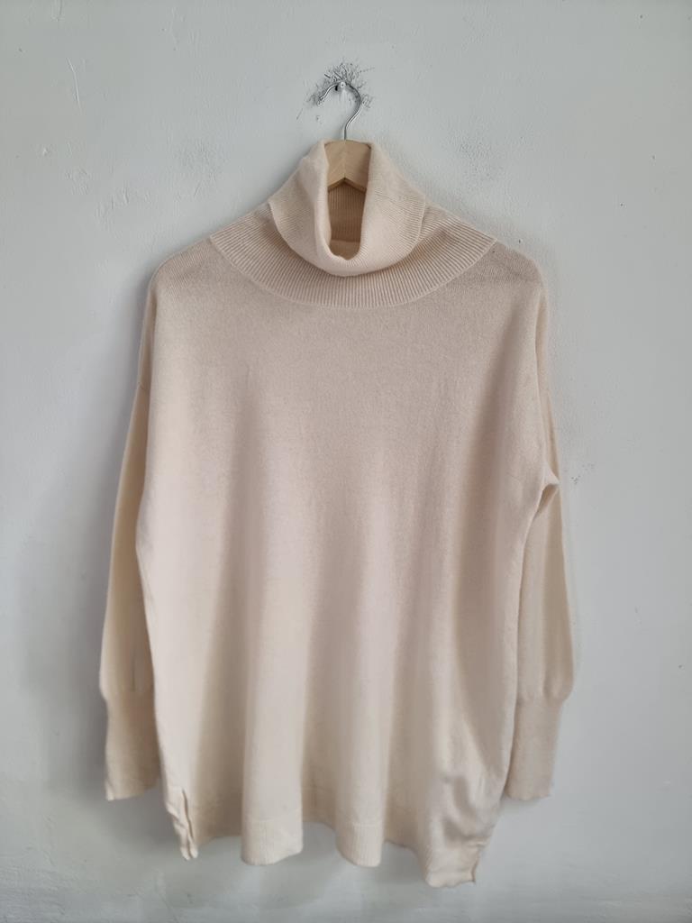 Kremowy kaszmirowy golf marki wild wool cashmere o oversize'owym kroju.